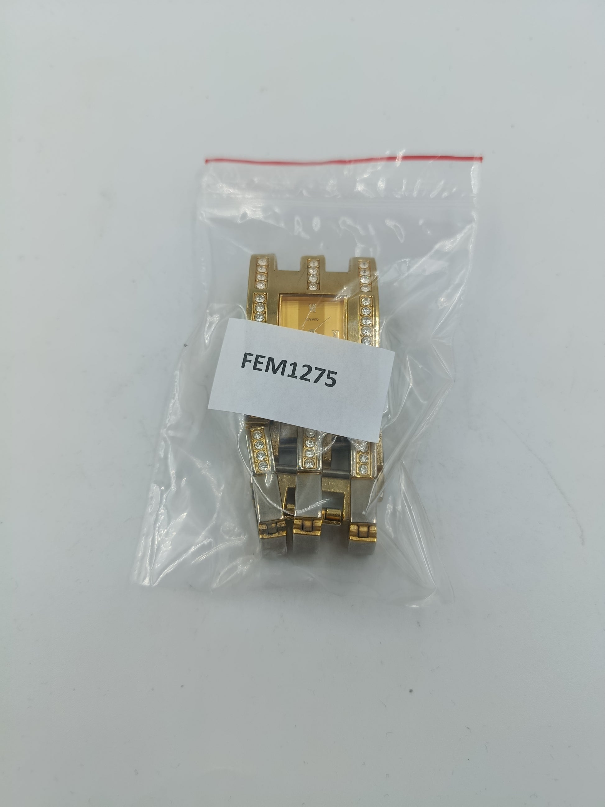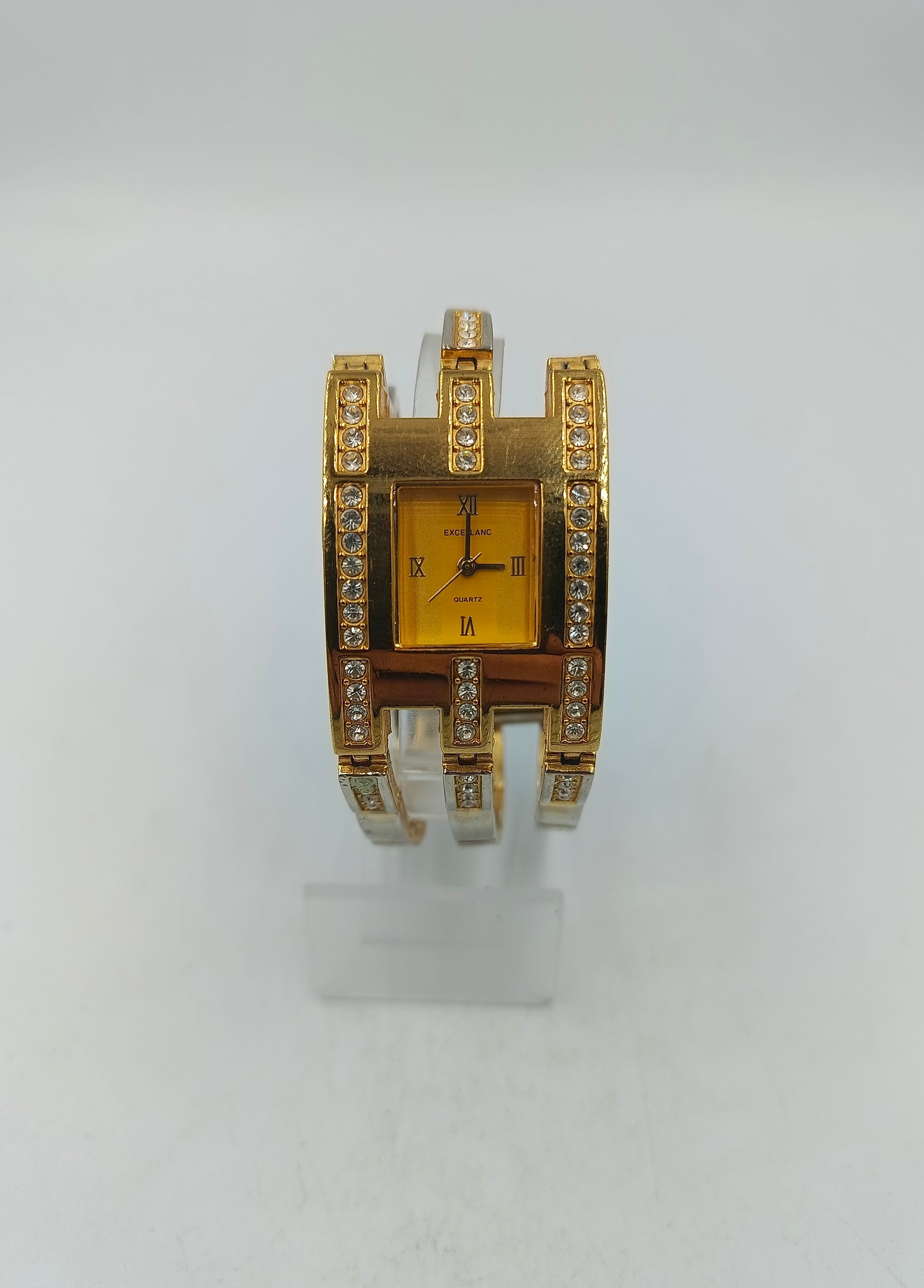 Diese elegante Armbanduhr überzeugt durch ihr auffälliges Design mit goldfarbenem Gehäuse und dekorativen Steinen. Das quadratische Zifferblatt mit römischen Zahlen verleiht der Uhr einen luxuriösen Charakter. Das massive Metallarmband sorgt für einen sicheren Halt und macht dieses Modell zu einem stilvollen Schmuckstück für besondere Anlässe oder den Alltag. Die Uhr wirkt hochwertig und präsent am Handgelenk und ergänzt elegante sowie klassische Outfits perfekt.