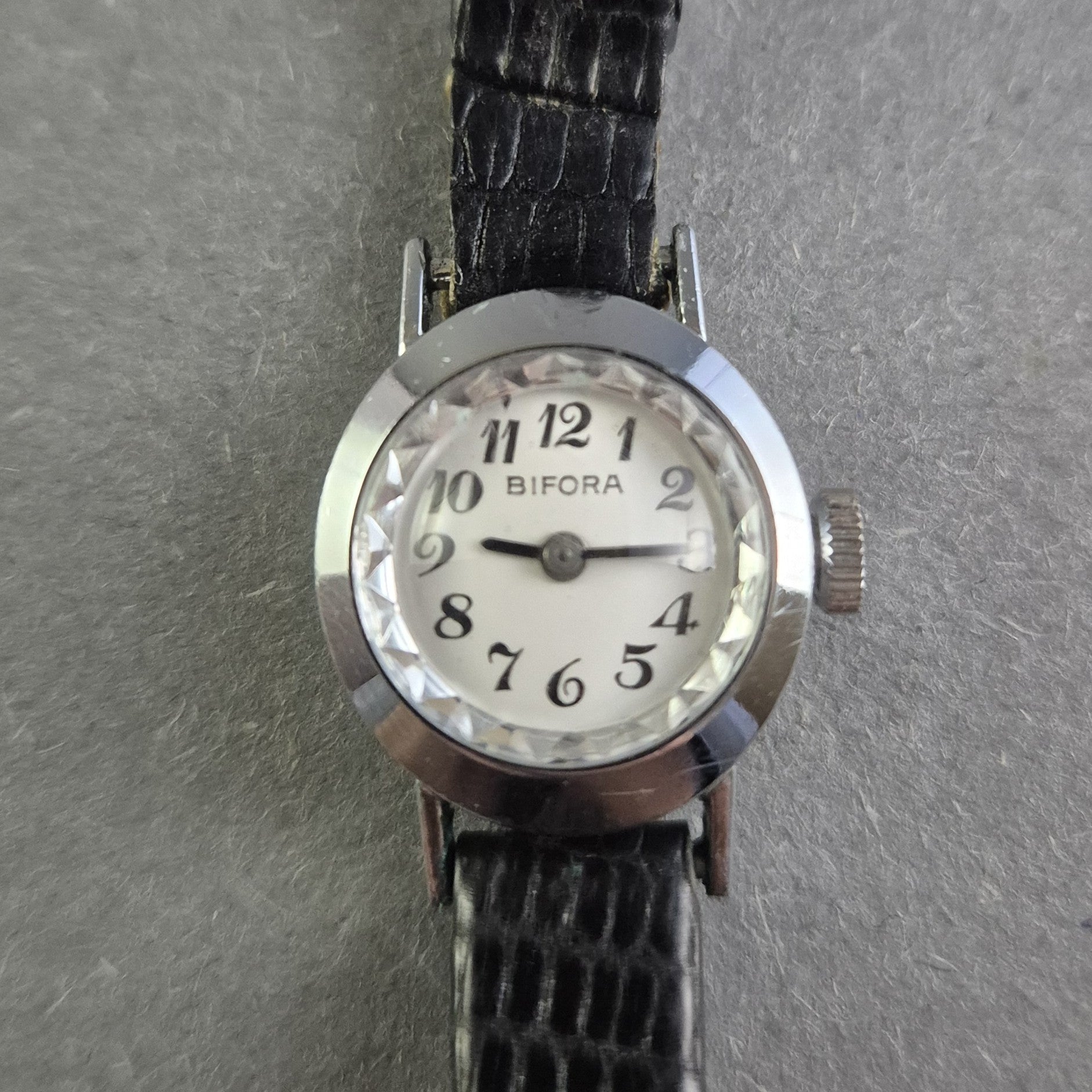 Elegante Bifora Damenarmbanduhr – Klassischer Retro-Look mit Lederarmband