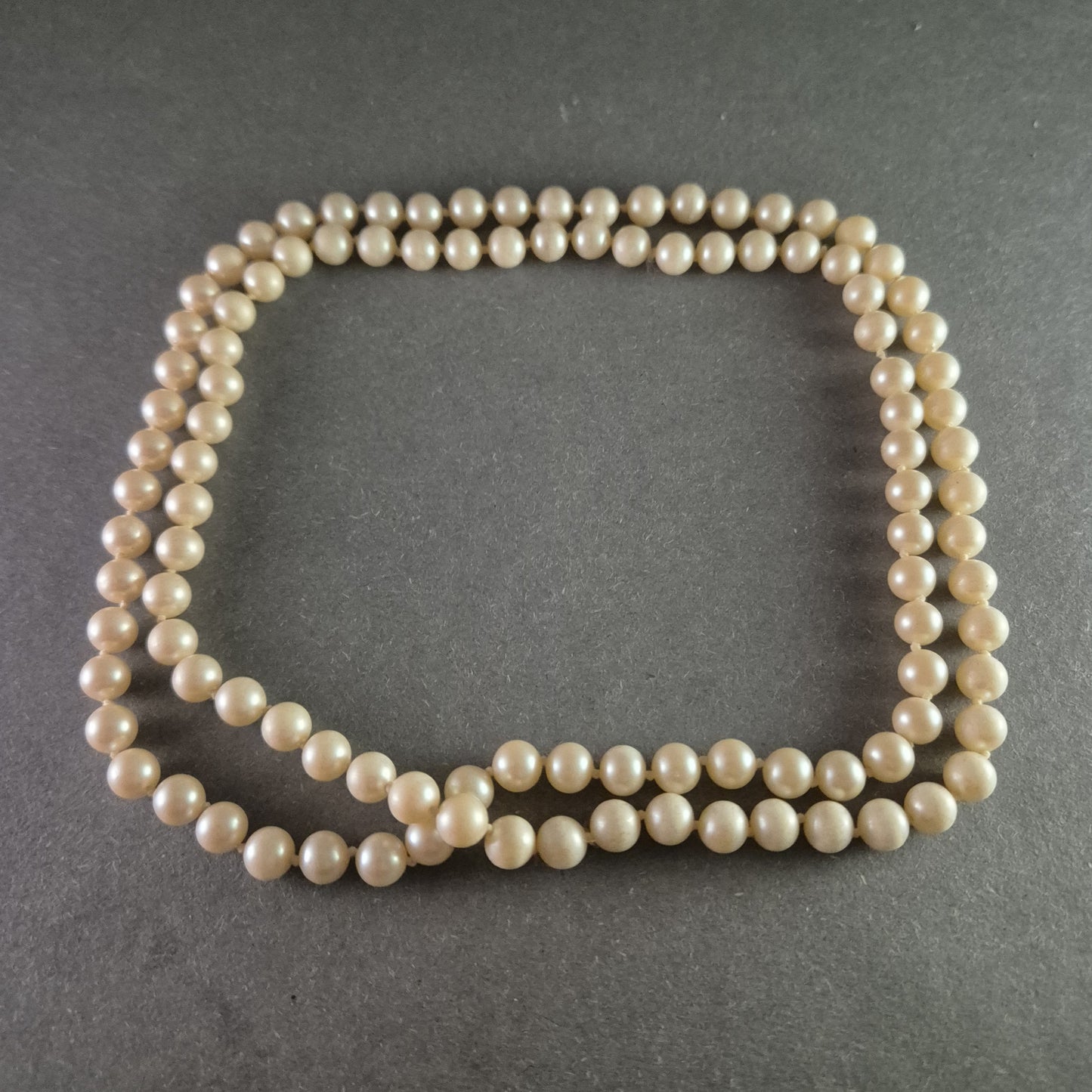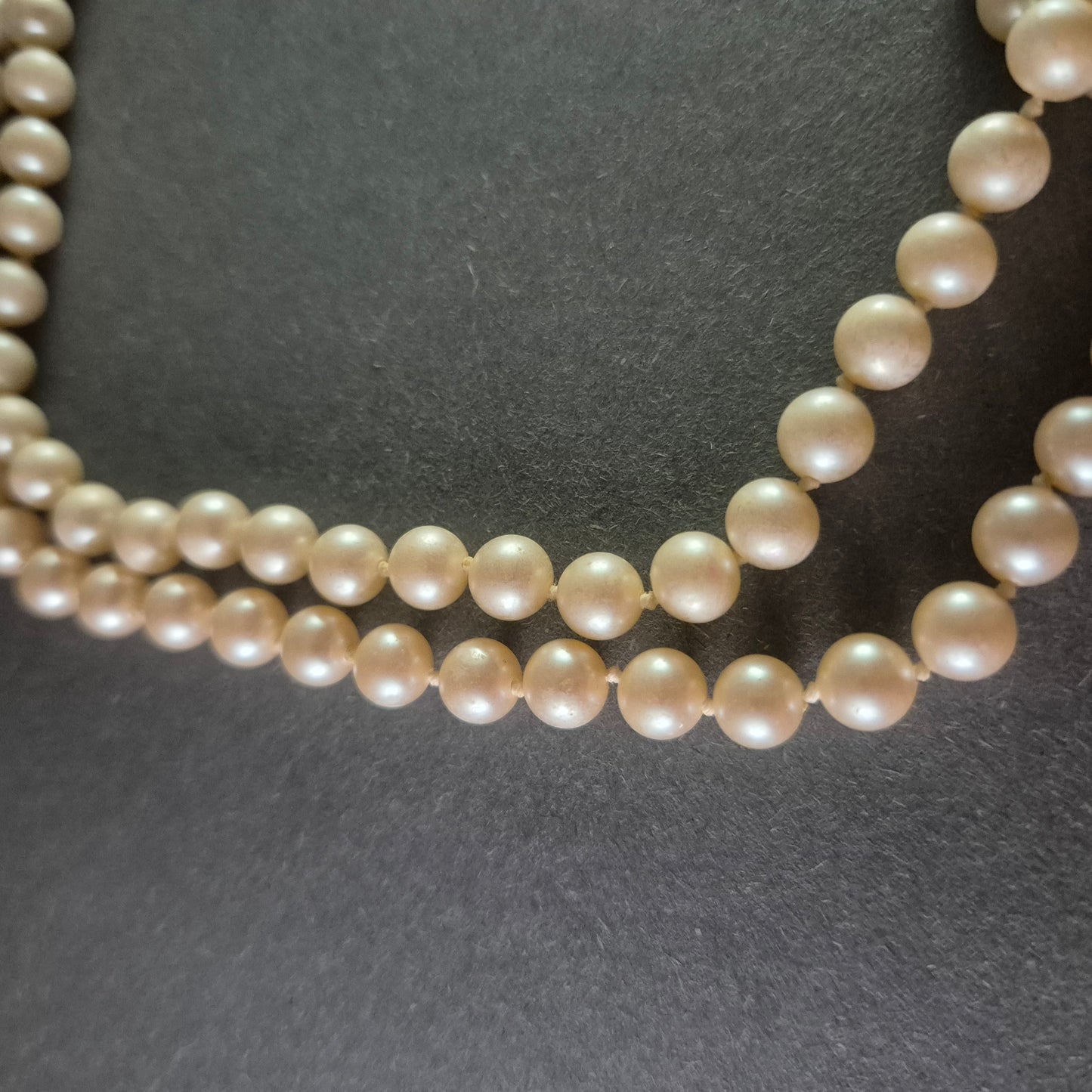 Diese cremefarbene Perlenkette strahlt klassische Eleganz und zeitlosen Stil aus. Mit zwei Reihen fein gearbeiteter Perlen eignet sich diese Kette perfekt für besondere Anlässe oder um jedem Outfit eine edle Note zu verleihen. Die harmonische Farbgebung verleiht diesem Schmuckstück eine dezente und luxuriöse Ausstrahlung.