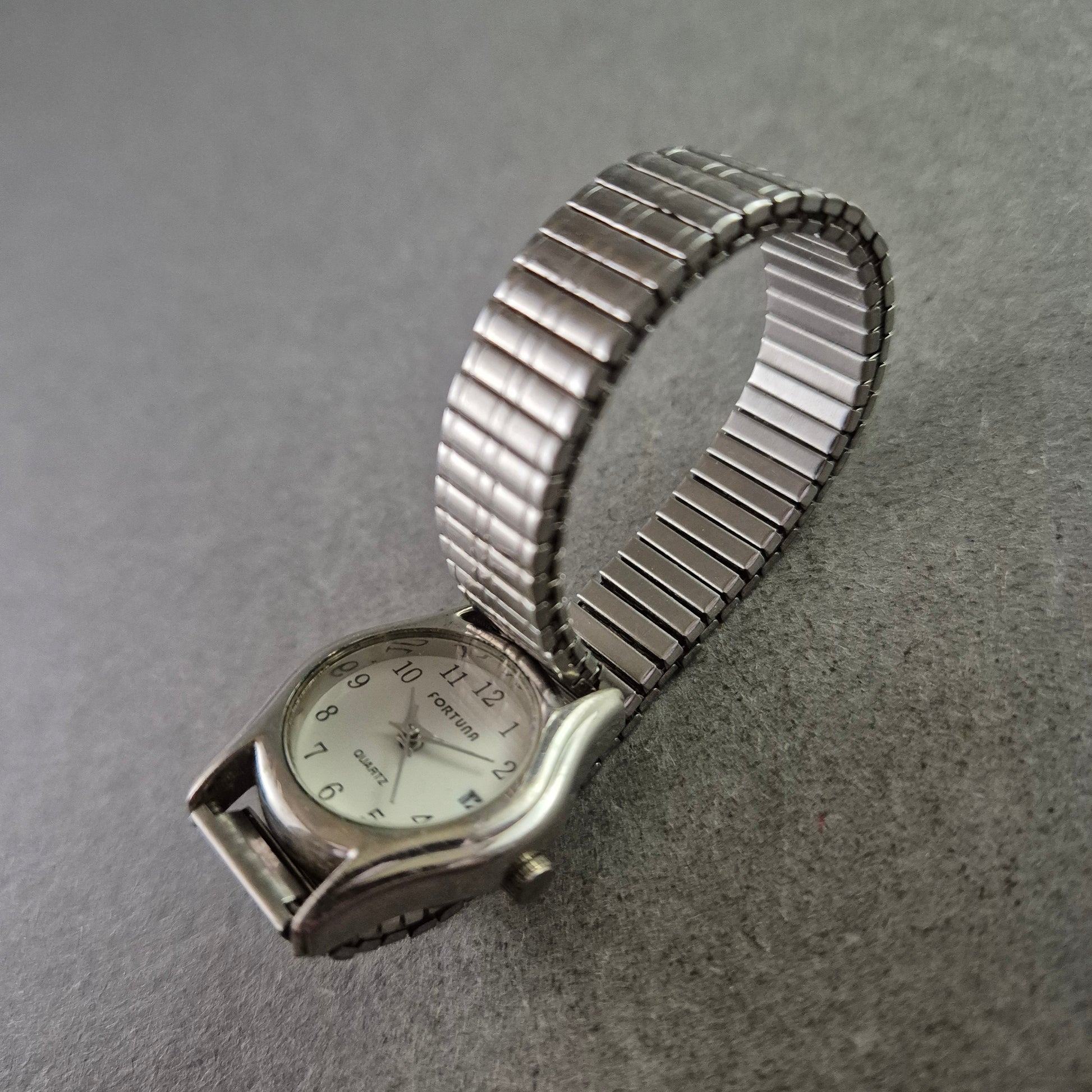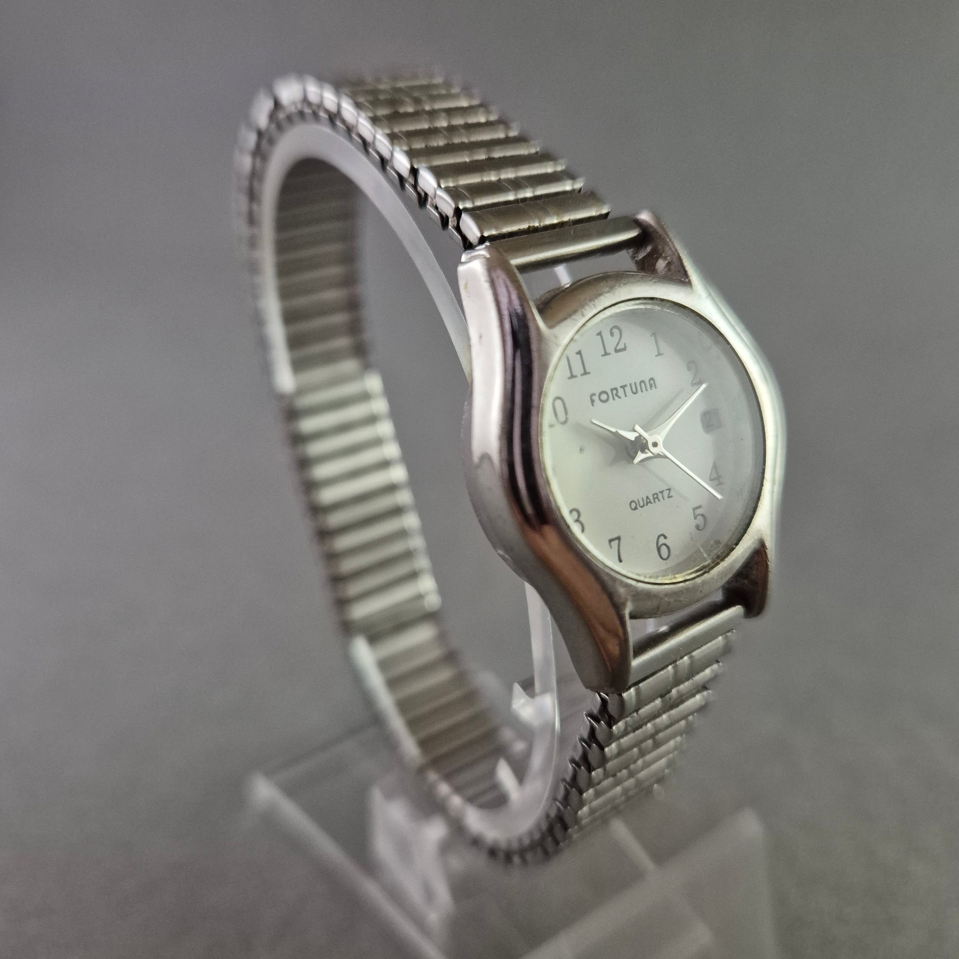 Diese stilvolle Damen Uhr der Marke Fortuna besticht durch ihr geschwungenes, silberfarbenes Gehäuse, das dem Design eine besondere Note verleiht. Das klare weiße Zifferblatt mit gut lesbaren schwarzen arabischen Ziffern und einem praktischen Datumsfenster bei 3 Uhr sorgt für eine optimale Ablesbarkeit und eine zeitlose Ästhetik. Das flexible Gliederarmband in Silber passt sich angenehm jedem Handgelenk an und macht diese Uhr zu einem idealen und komfortablen Begleiter für den Alltag.