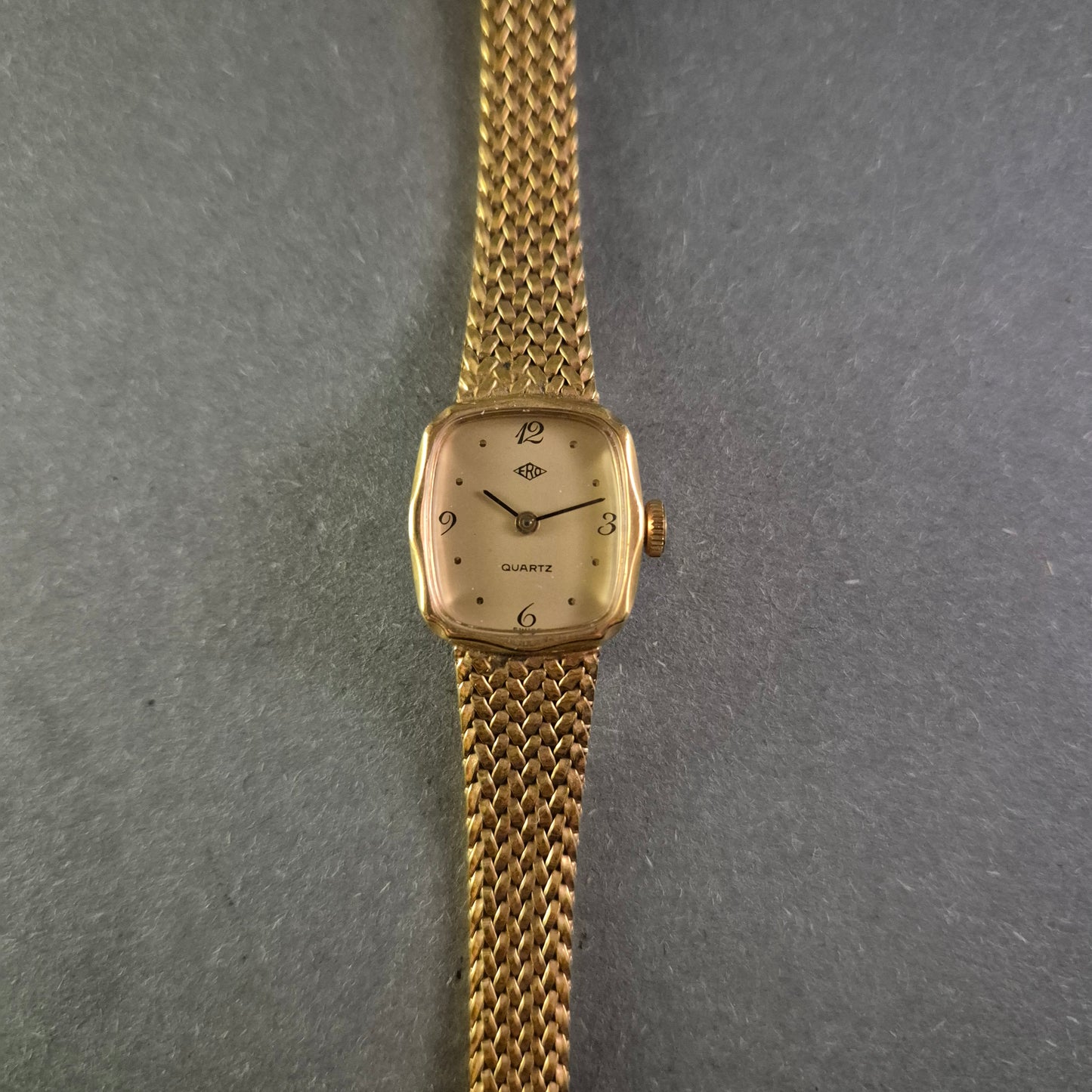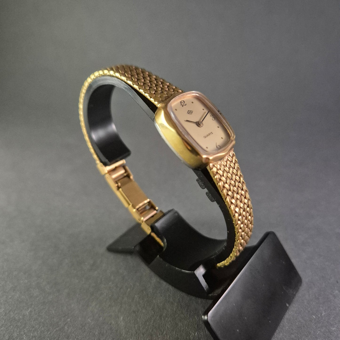 • Material: Gehäuse und Armband aus Metall mit Goldton-Finish
