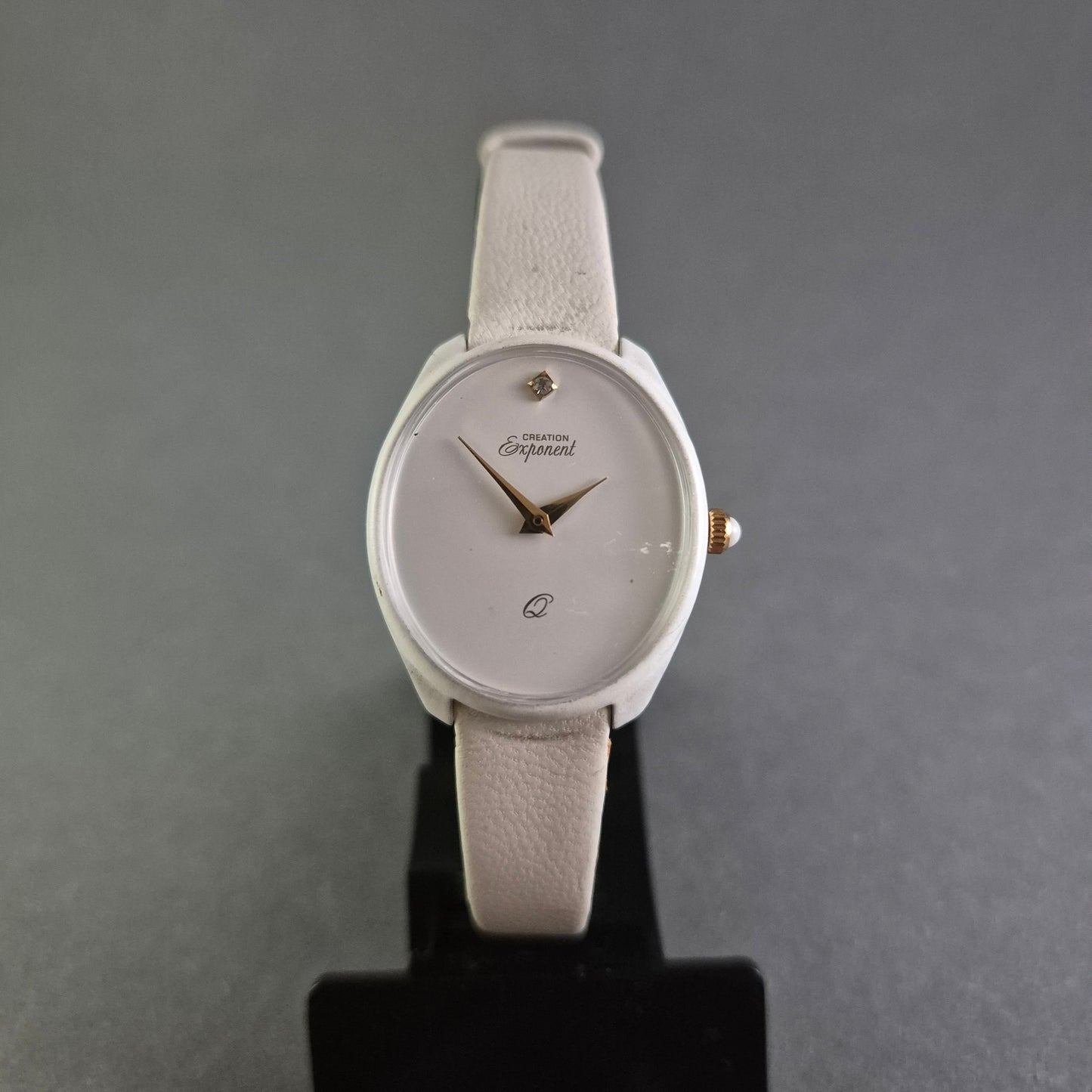 Diese stilvolle Exponent Damenarmbanduhr kombiniert minimalistisches Design mit einer eleganten Farbgebung. Das weiße Gehäuse und das passende Lederarmband verleihen der Uhr eine dezente und moderne Ästhetik. Ein dezenter, eingelassener Stein auf dem Zifferblatt setzt einen besonderen Akzent, während das Quarzwerk für zuverlässige Funktionalität sorgt. Ideal für Frauen, die schlichte Eleganz schätzen.