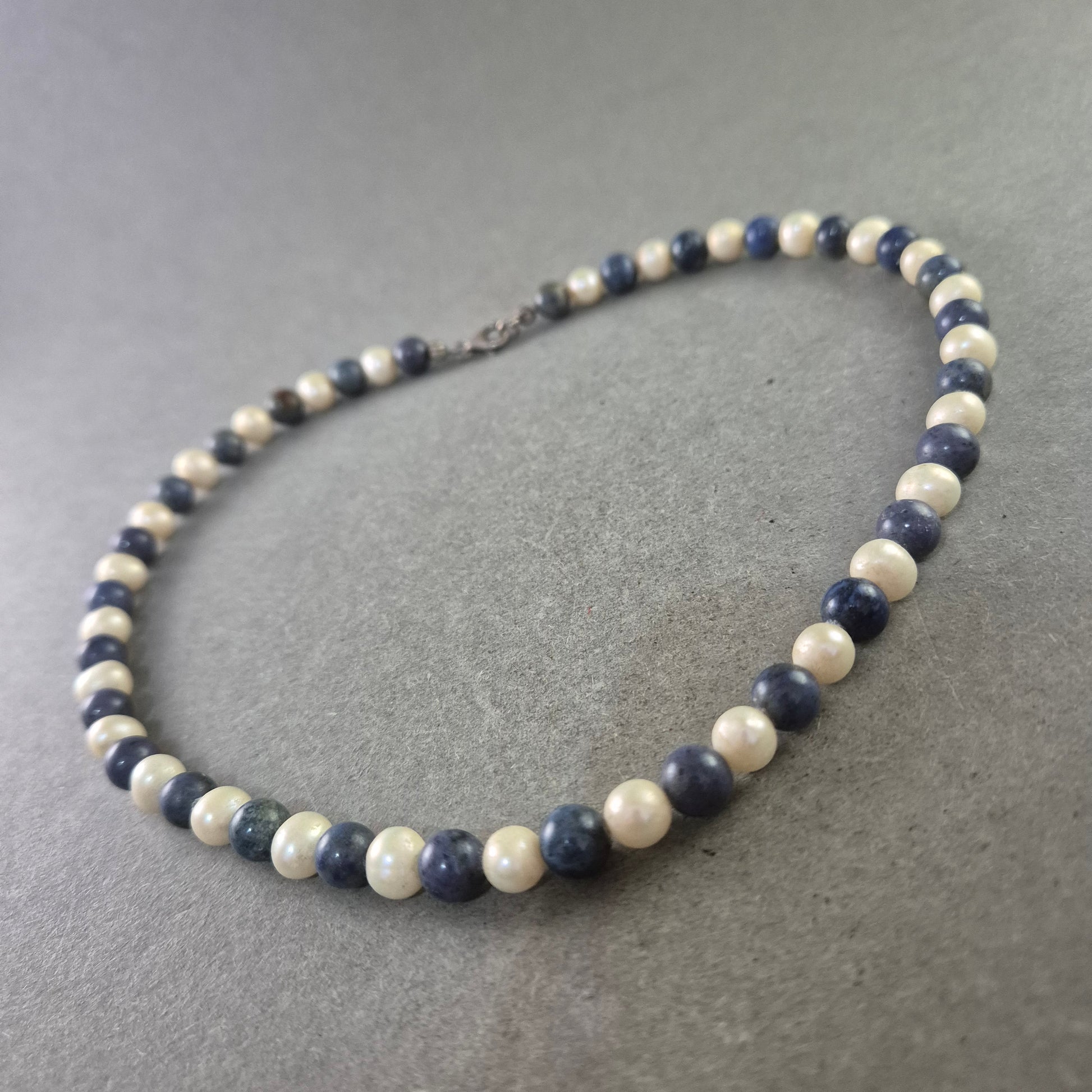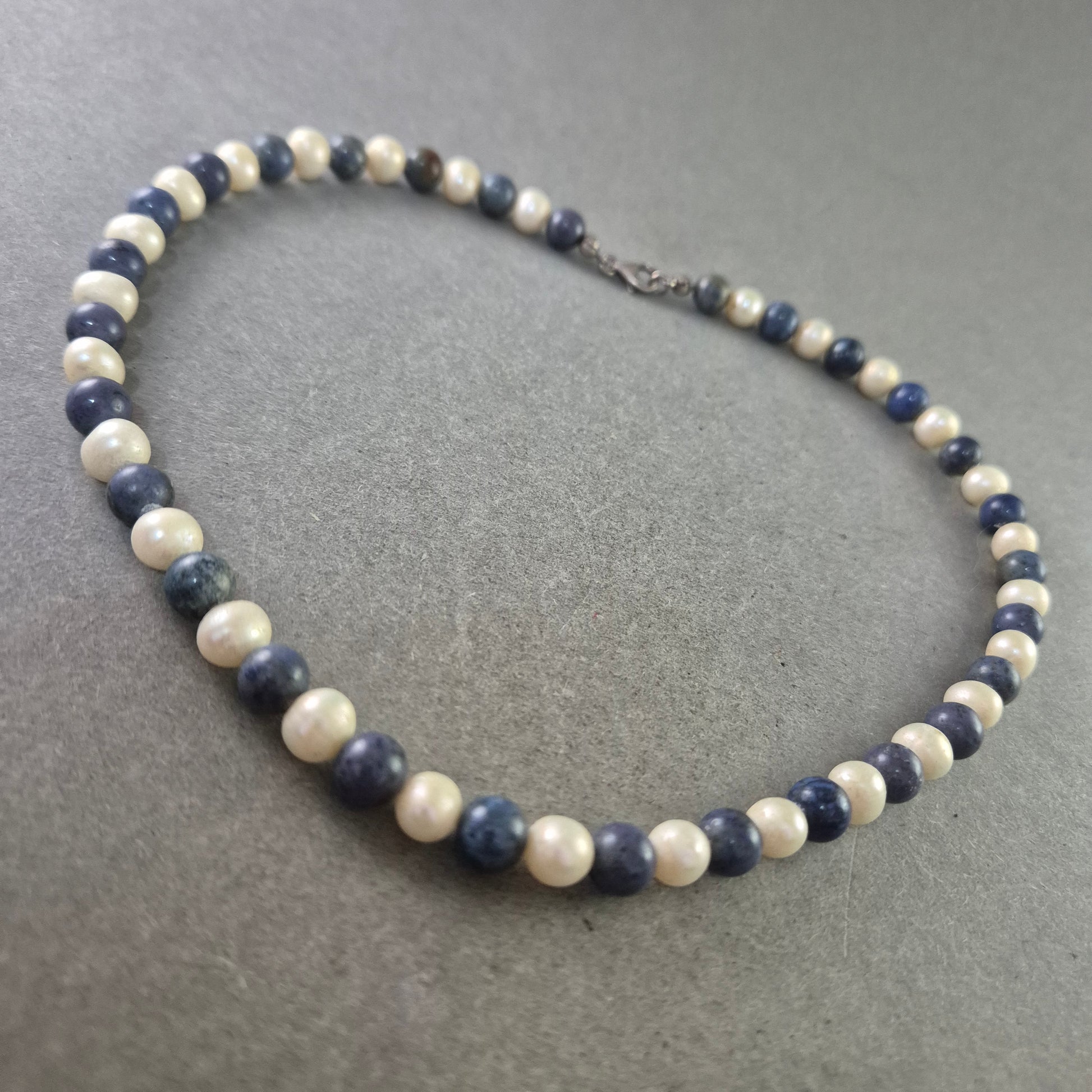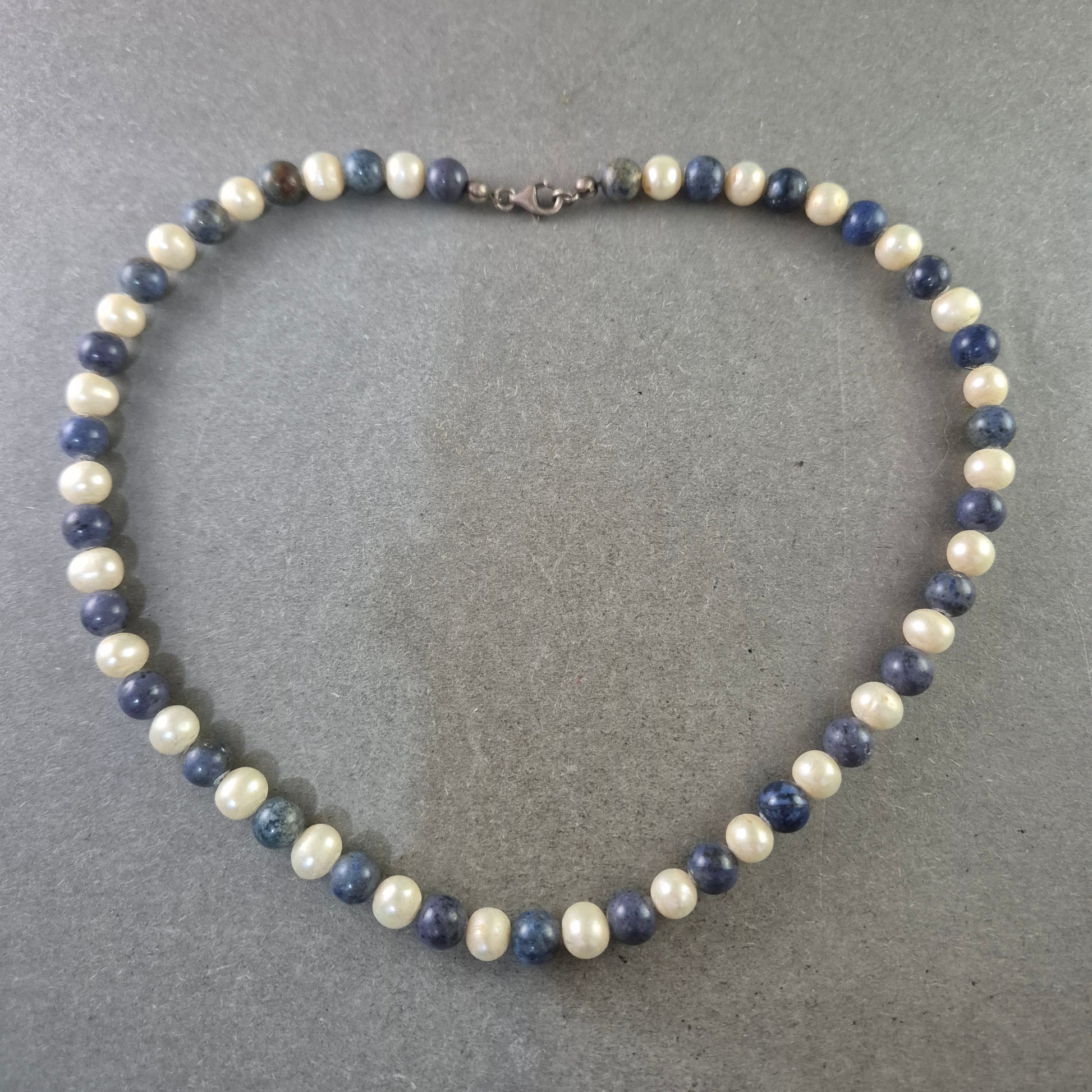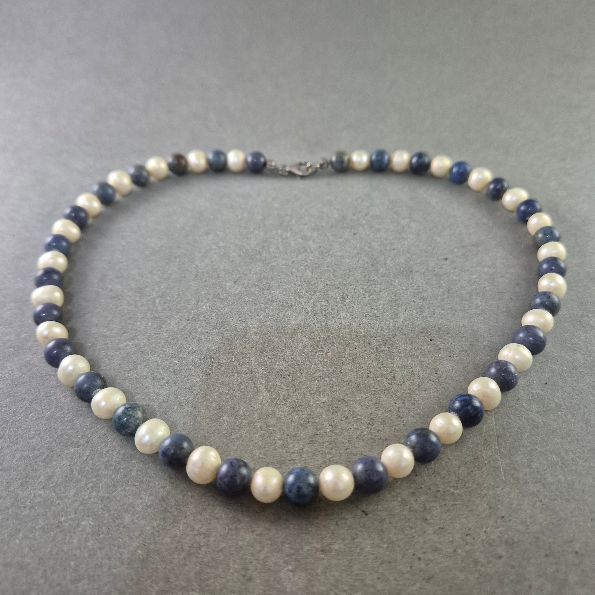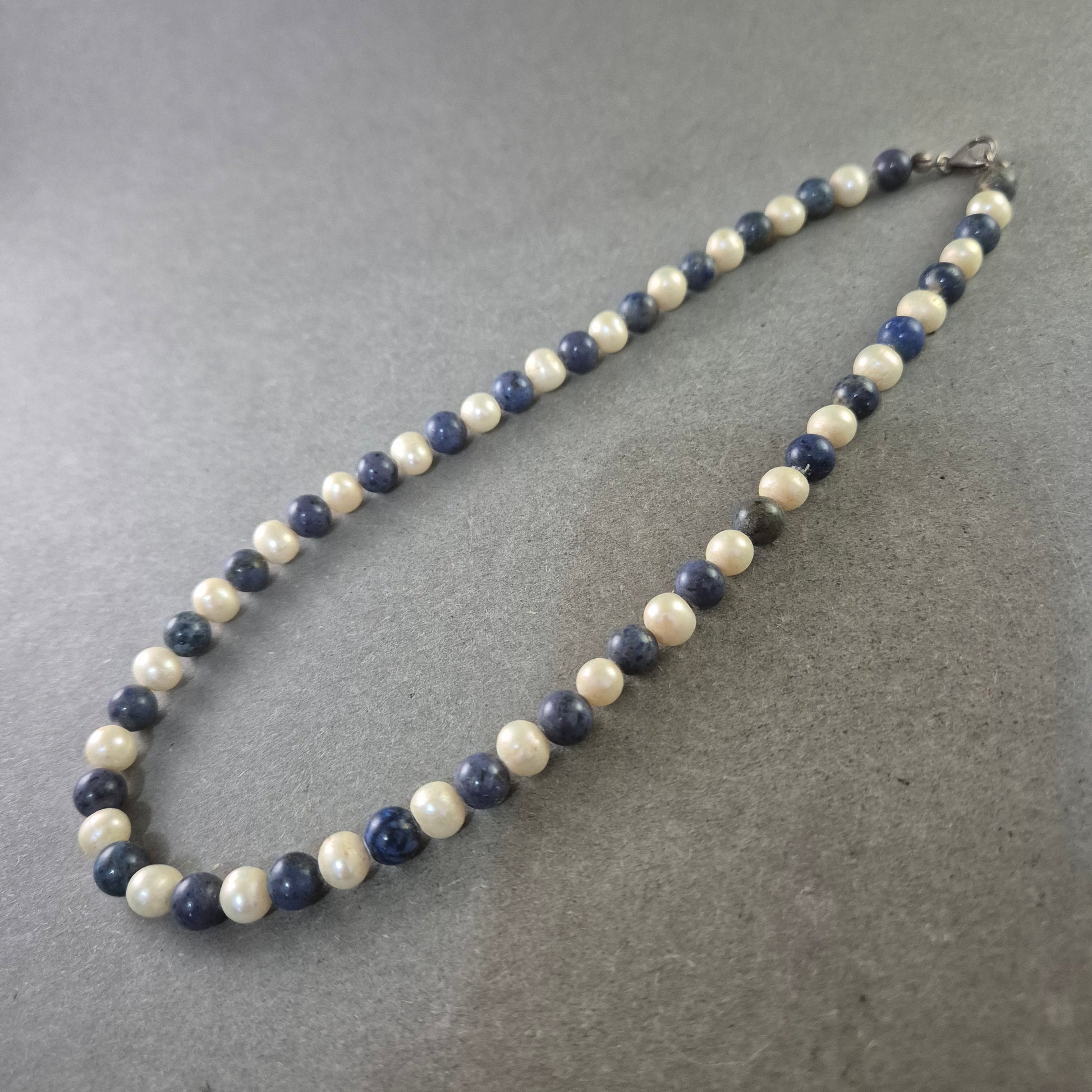 Elegante Halskette aus Sodalith und Perlen – Harmonisches Farbspiel