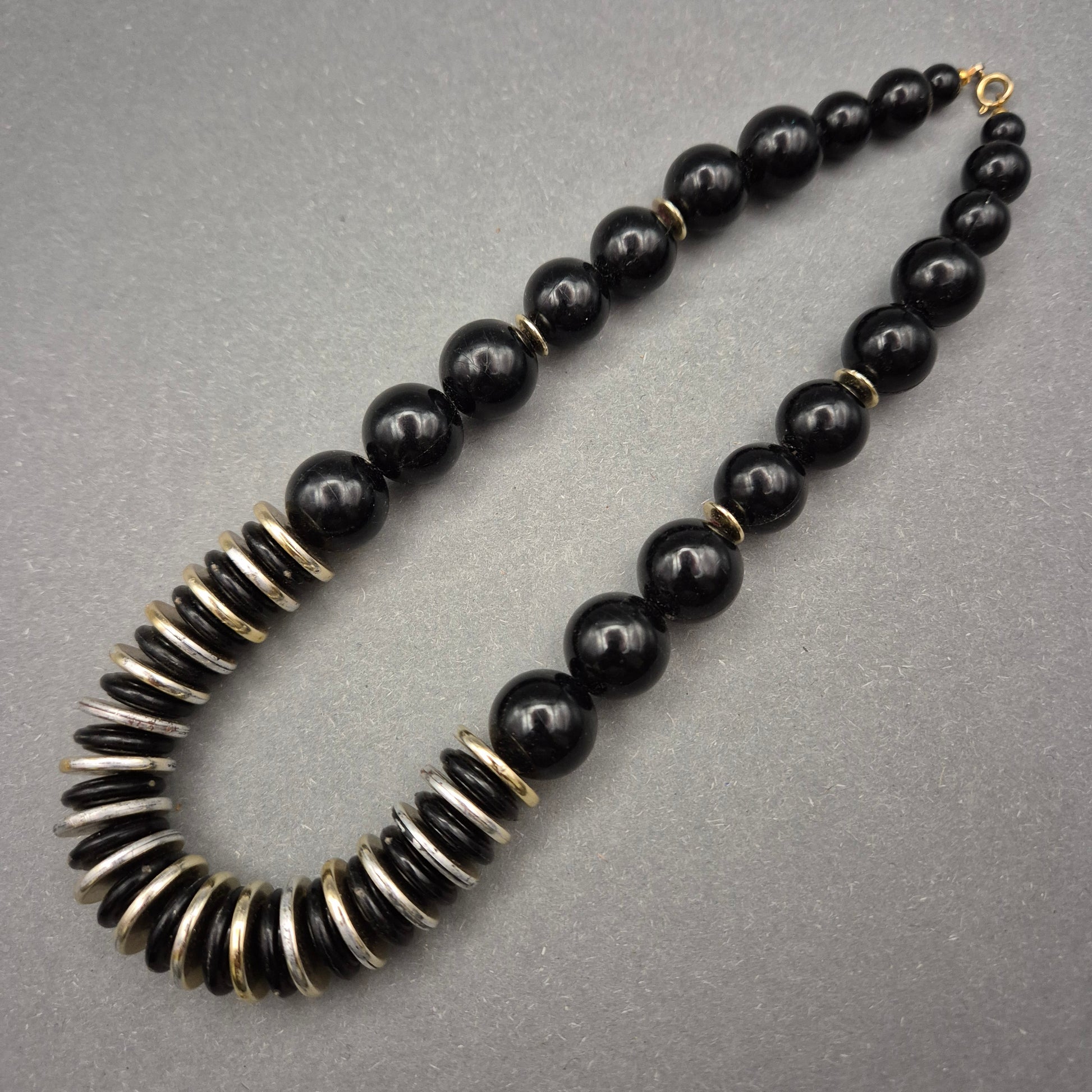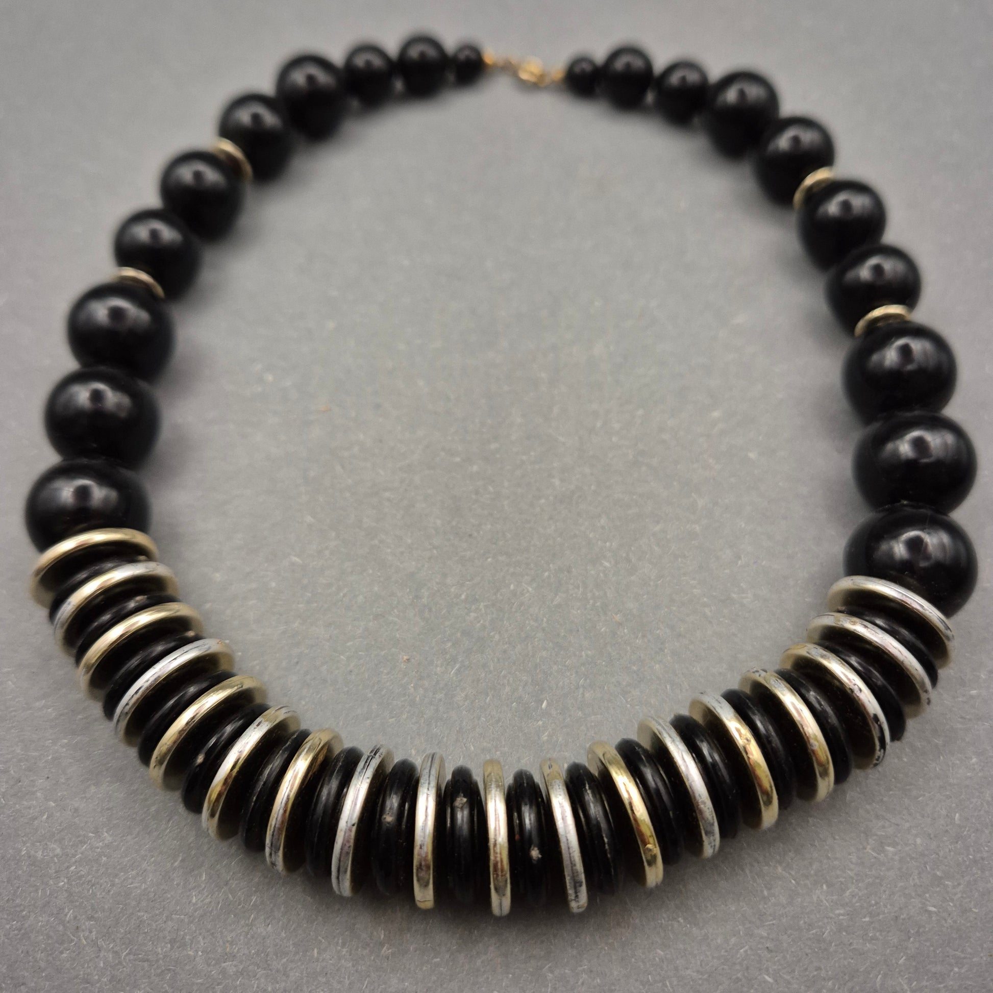 Elegante Halskette mit schwarzen Perlen und Metallscheiben