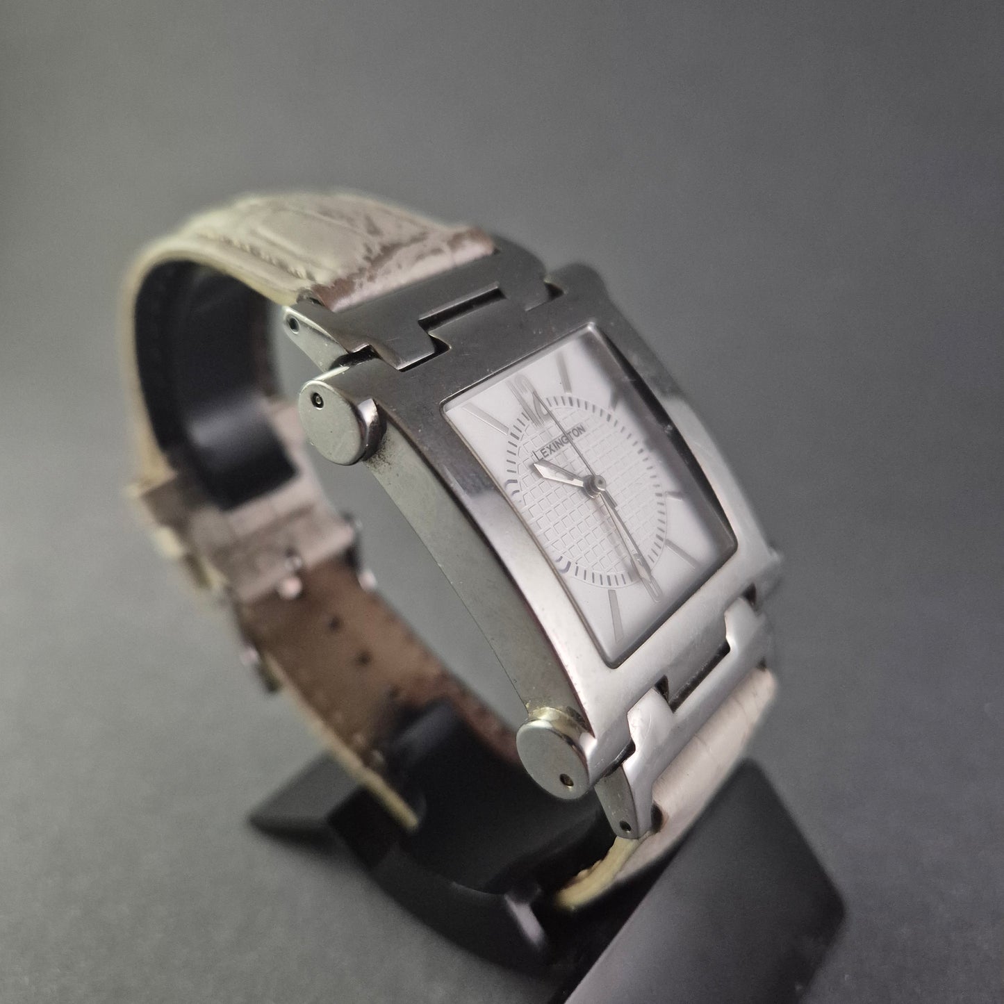 Diese Lexington Armbanduhr überzeugt mit ihrem modernen und dennoch klassischen Design. Das quadratische Edelstahlgehäuse und das fein strukturierte Zifferblatt mit minimalistischen Markierungen verleihen der Uhr einen zeitlosen Look. Das weiße Lederarmband in Kroko-Optik rundet den stilvollen Eindruck ab. Perfekt für besondere Anlässe oder als edles Accessoire im Alltag.