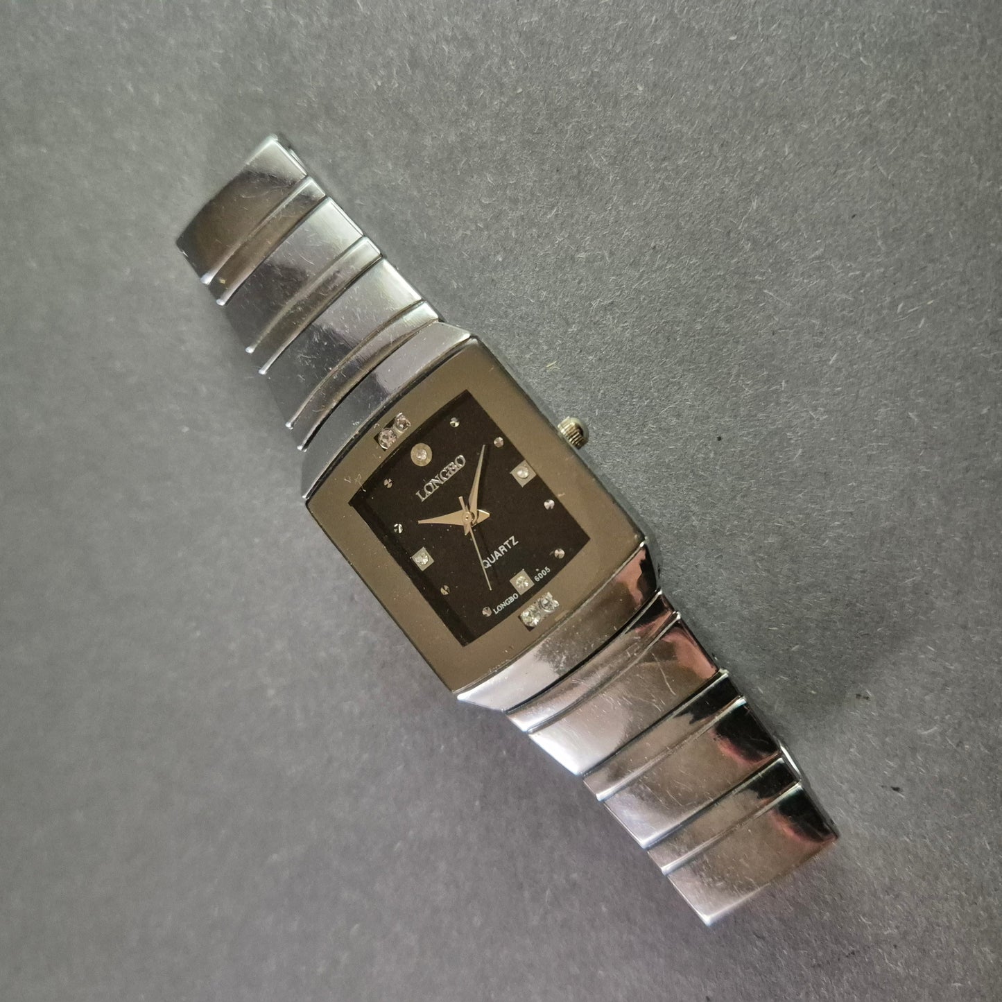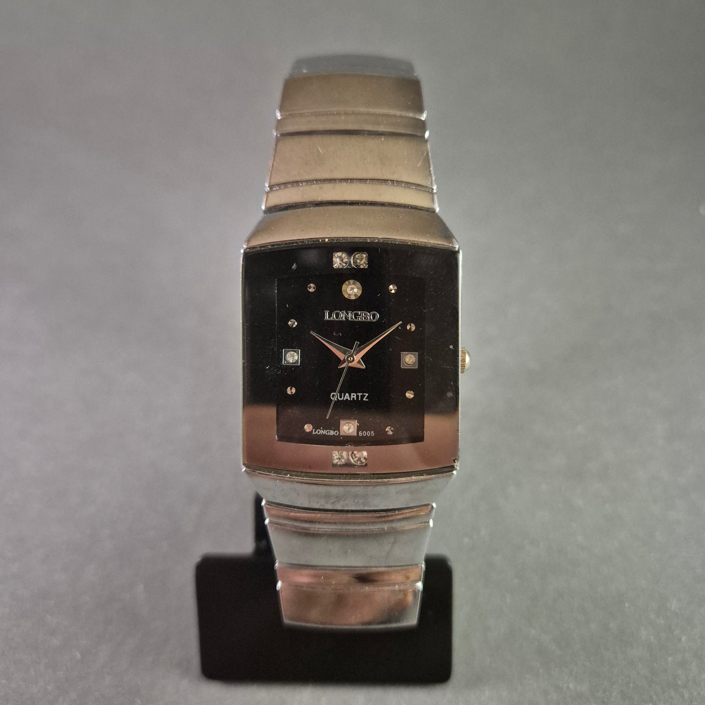 Diese stilvolle Longbo Herrenarmbanduhr beeindruckt durch ihr modernes quadratisches Gehäuse und ein elegantes schwarzes Zifferblatt mit funkelnden Steindetails. Das polierte Edelstahlarmband unterstreicht den luxuriösen Look, während das Quarzwerk präzise Zeitmessung garantiert. Perfekt für Herren, die sich mit zeitloser Eleganz präsentieren möchten.