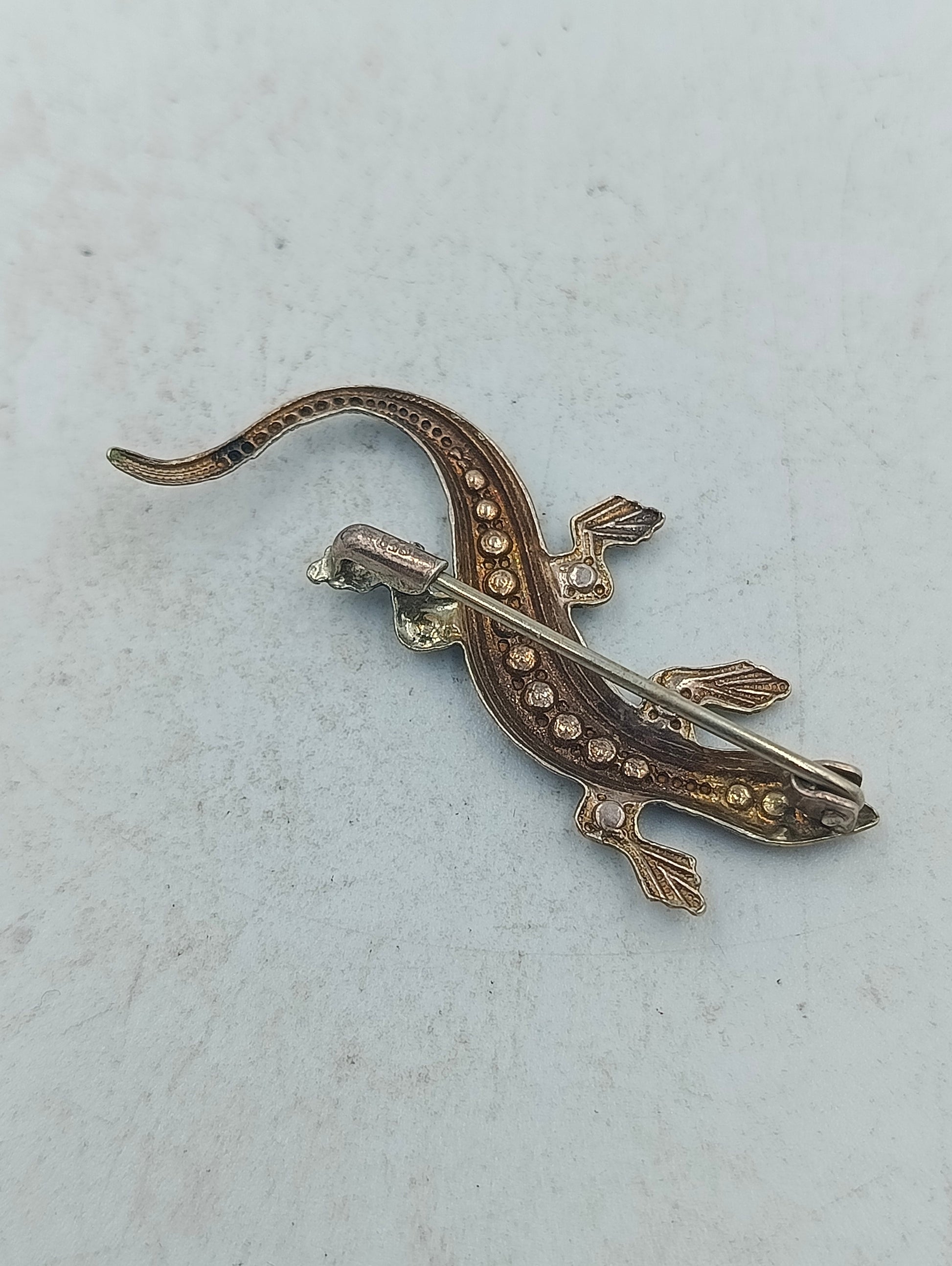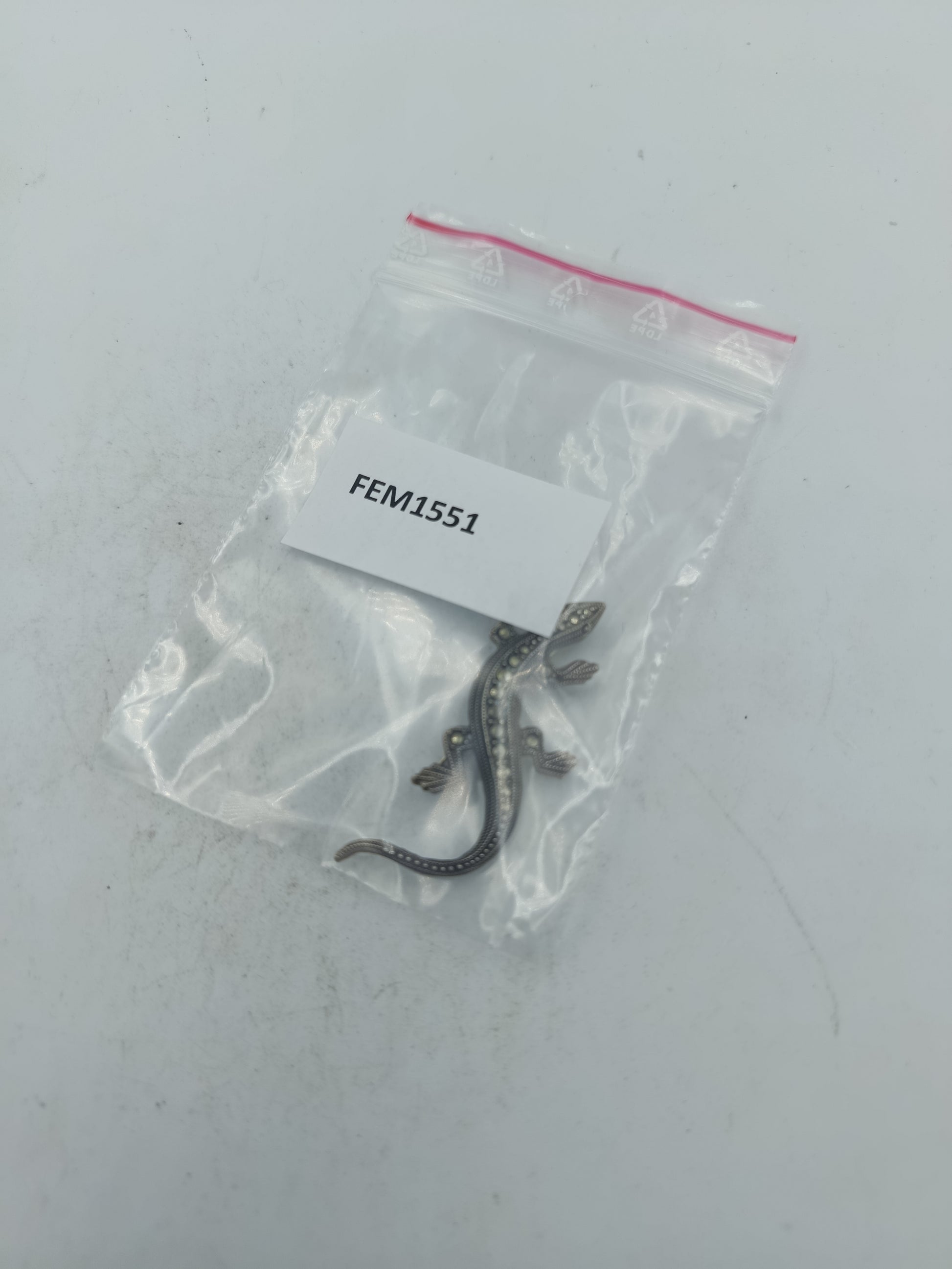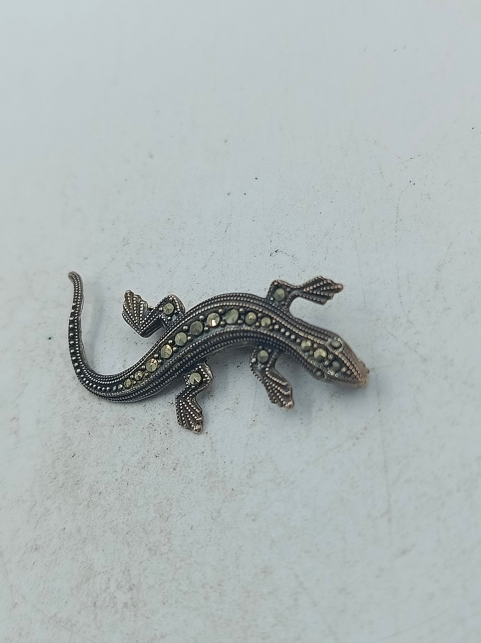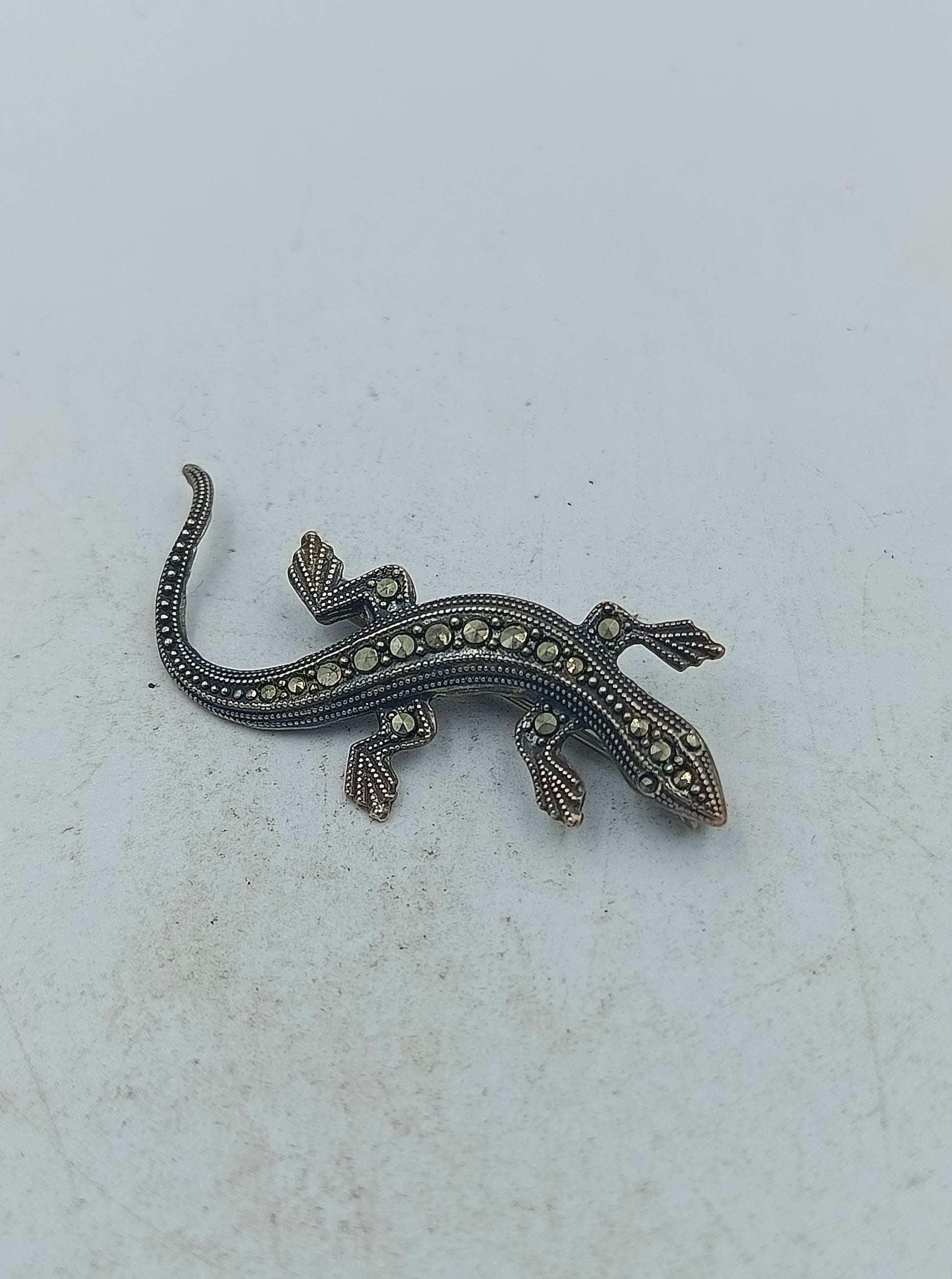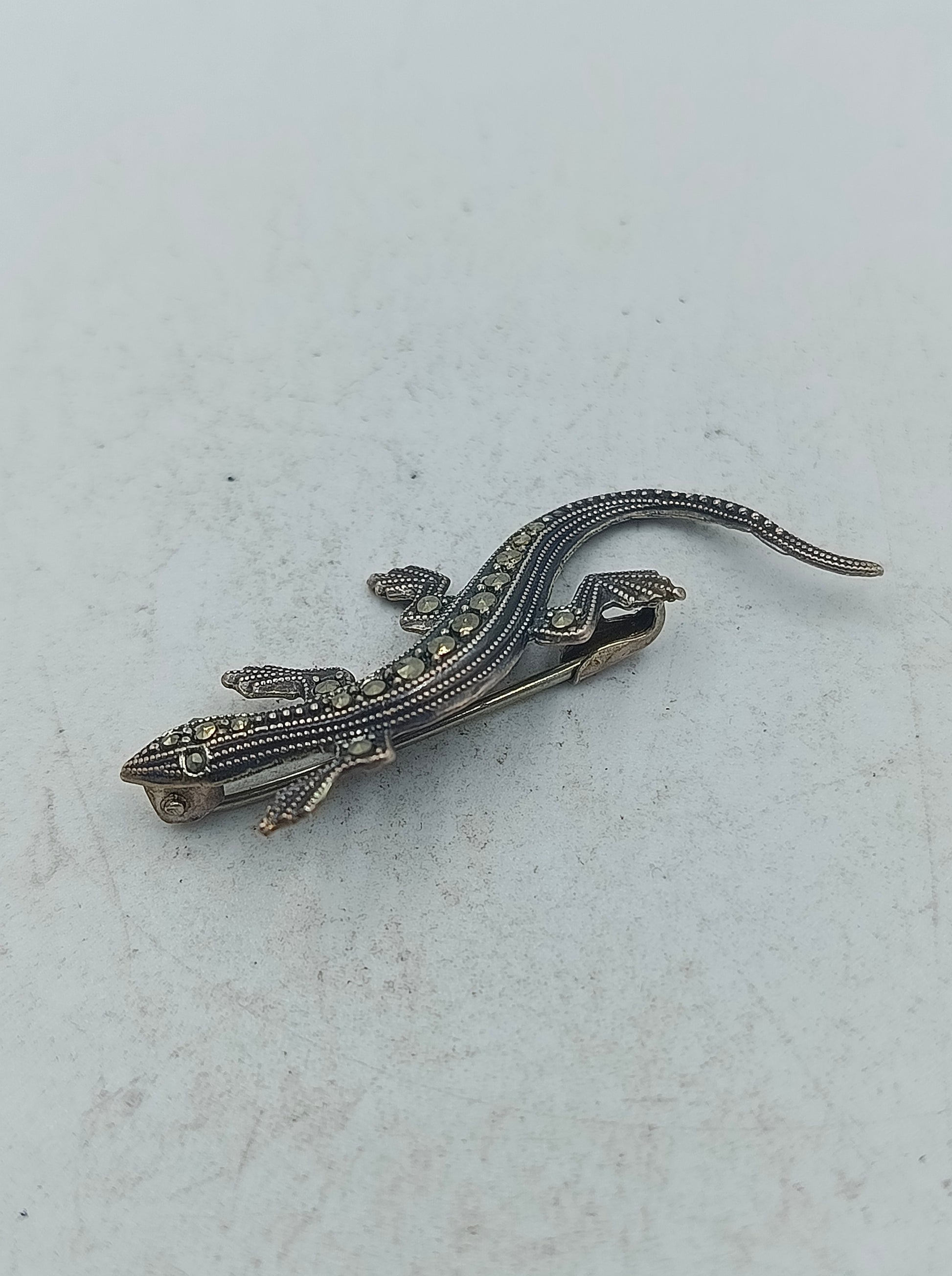 Elegante Silberbrosche in Echsenform mit funkelnden Markasitsteinen