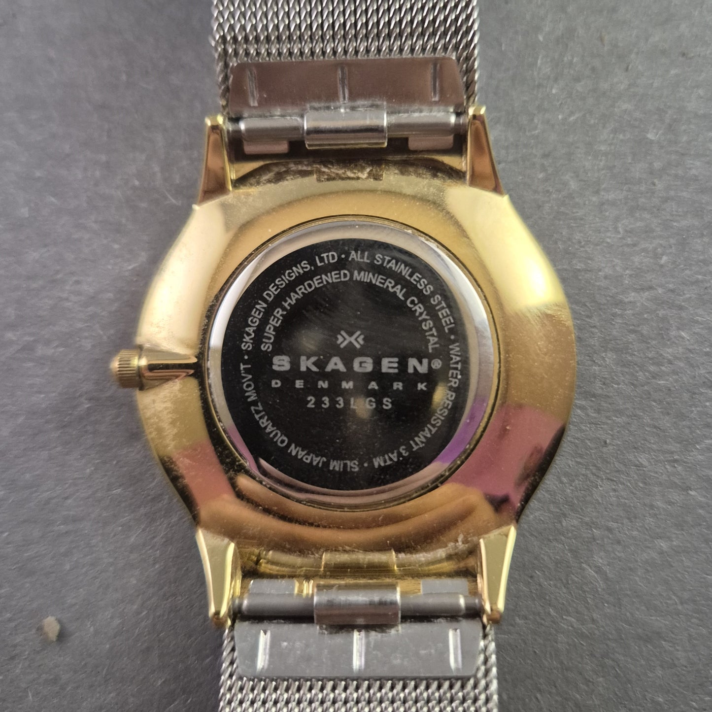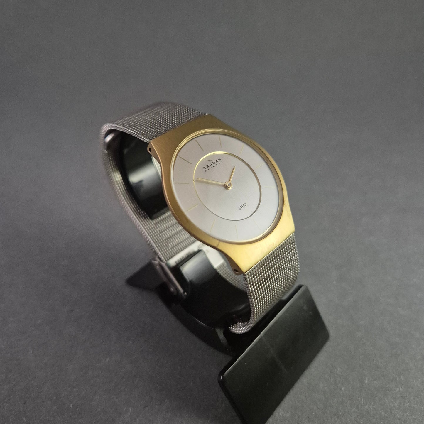 Elegante Skagen Herrenuhr – Minimalistisches Design in Gold und Silber
