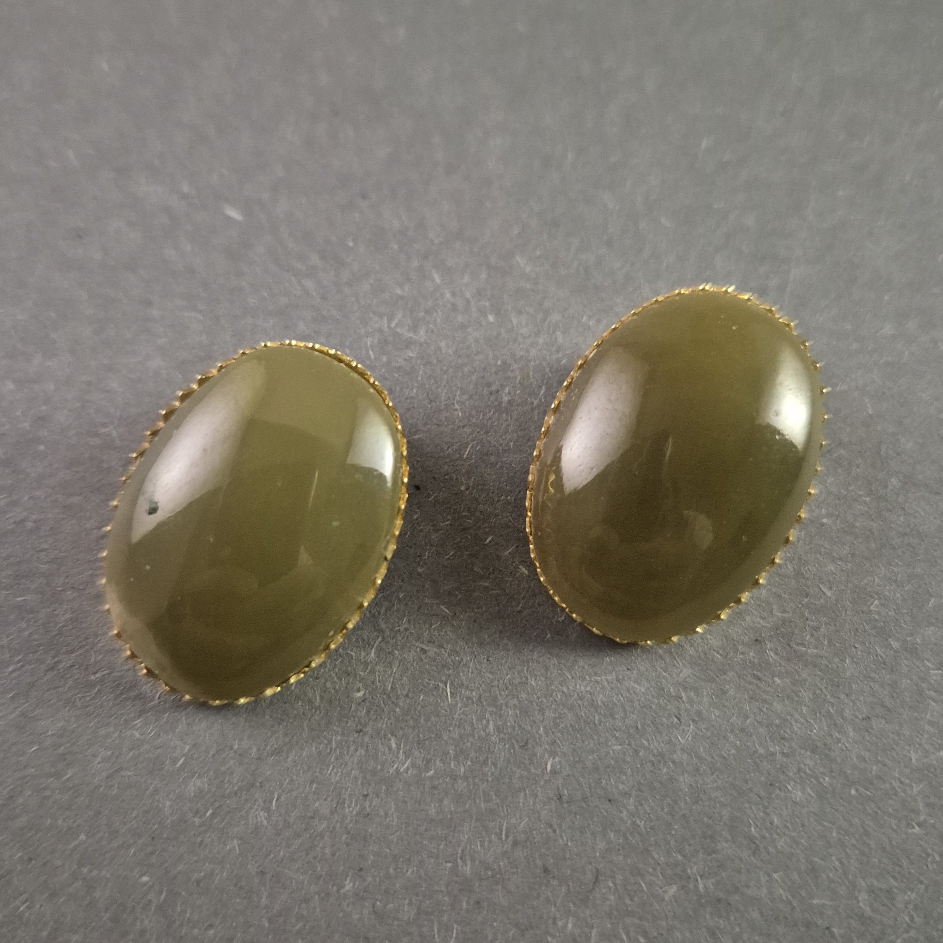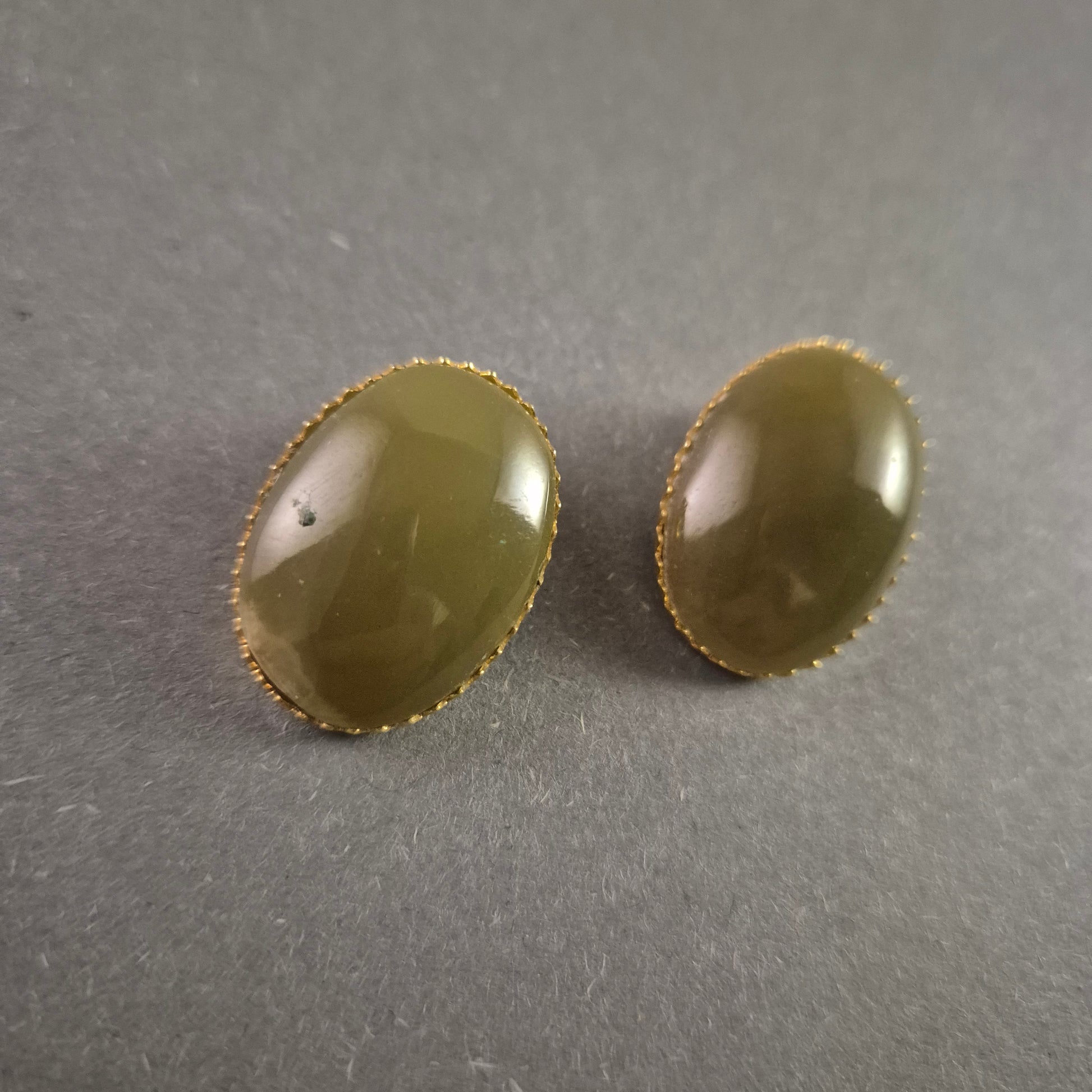 Elegante Vintage-Clip-Ohrringe mit grünen Cabochon-Steinen