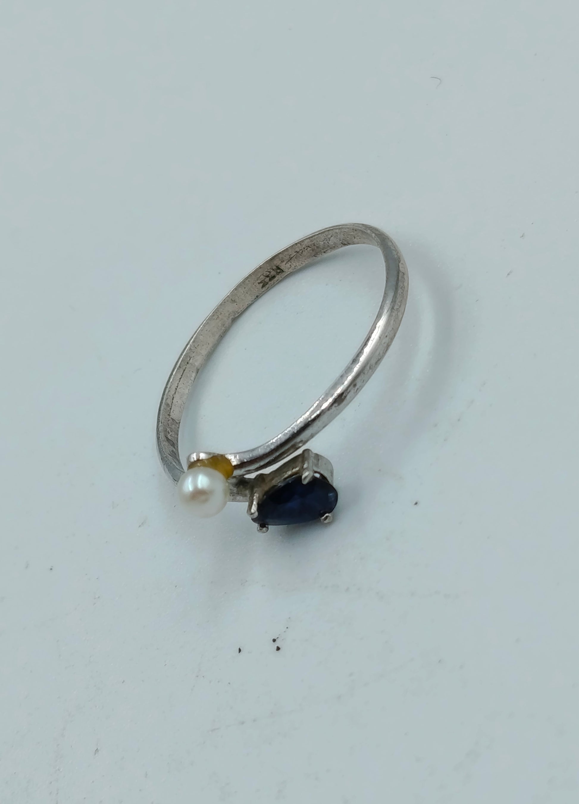 Eleganter 835 Silberring mit Perle und Saphirblauem Stein
