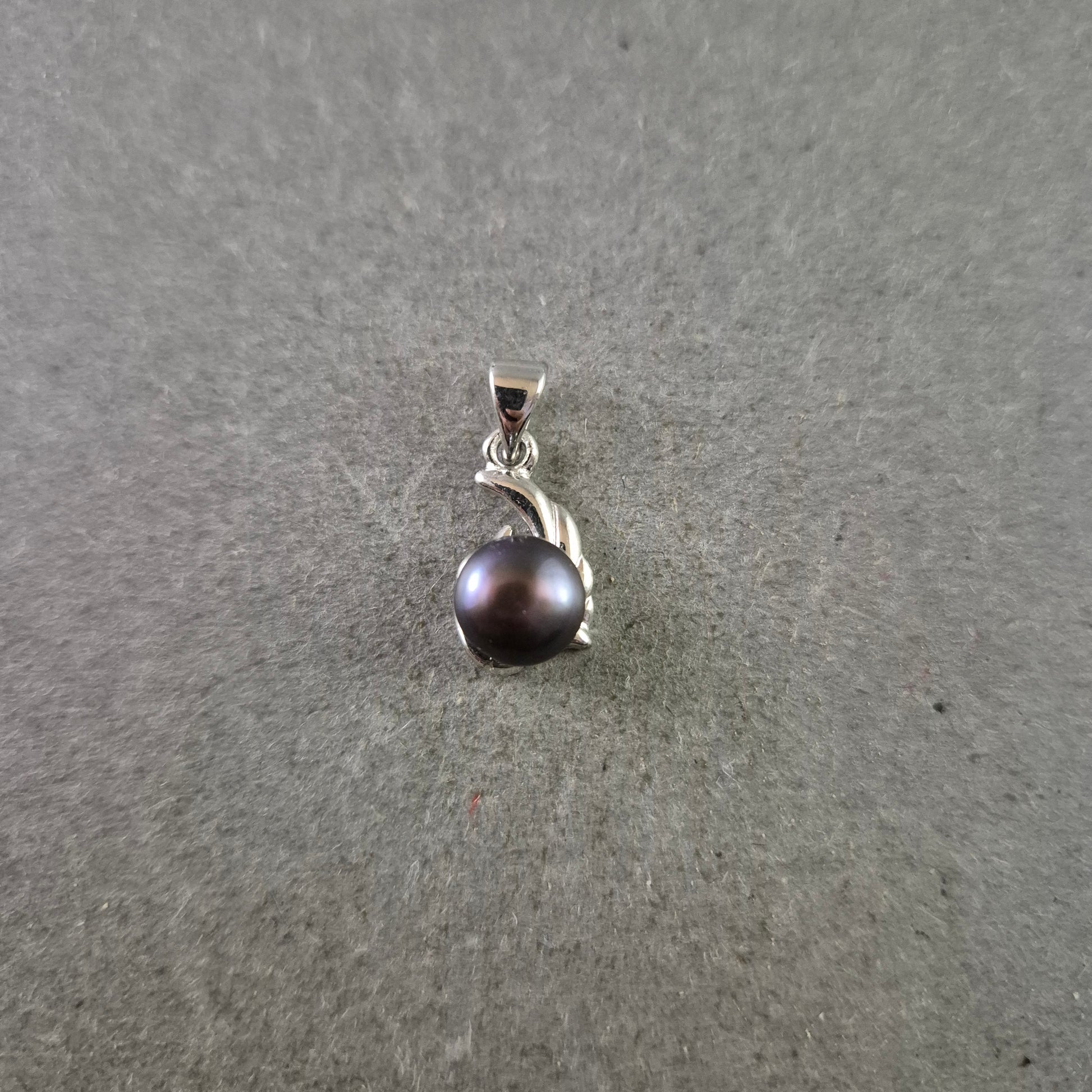 Eleganter Anhänger mit schwarzer Perle – Silberfassung