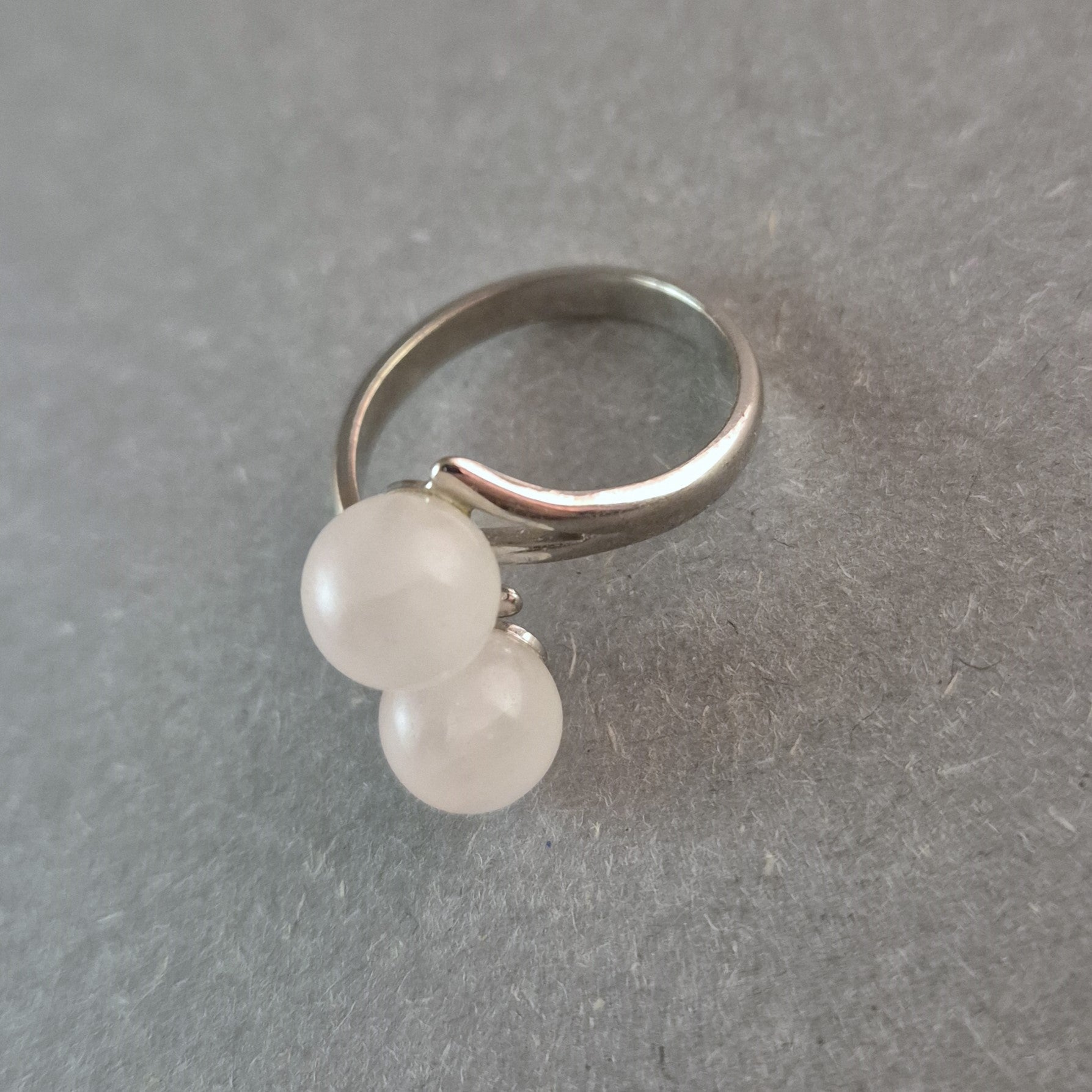 Eleganter Silberring mit zwei weißen Edelstein-Perlen