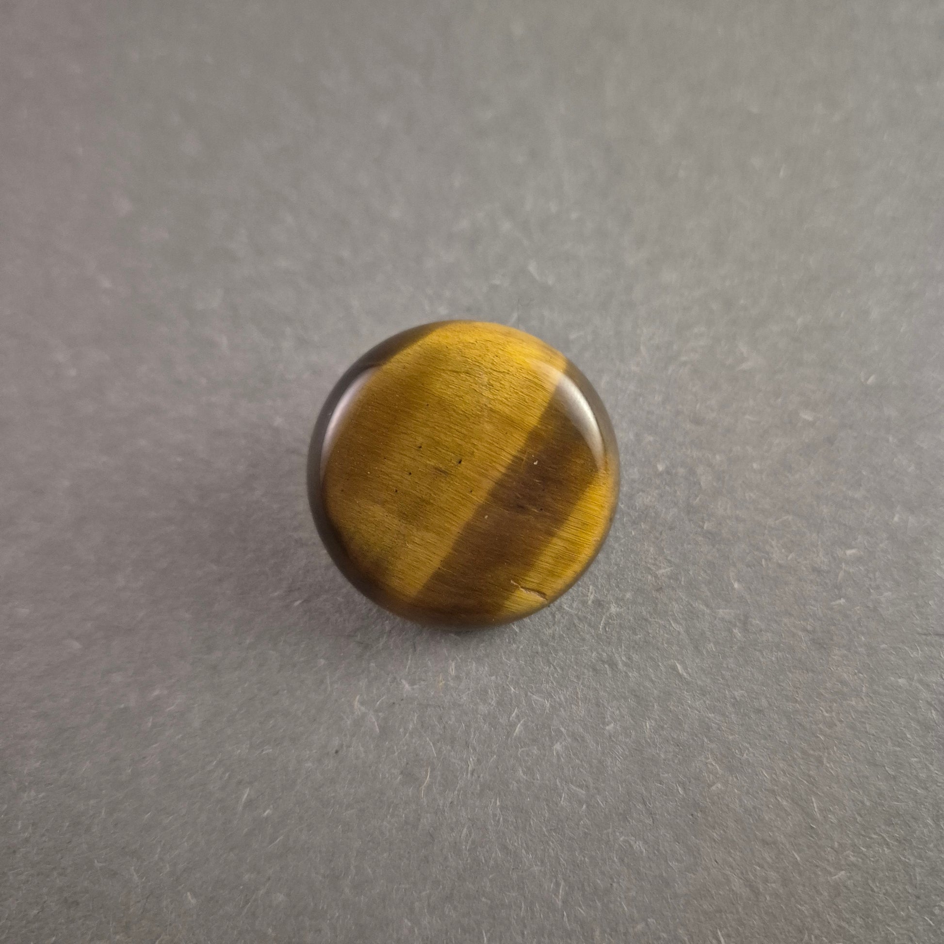 Dieser wunderschöne Anhänger aus echtem Tigerauge besticht durch seine warmen Gold- und Brauntöne mit charakteristischer Lichtreflexion. Die runde Form verleiht dem Stein eine schlichte Eleganz, während die silberfarbene Metallöse für eine einfache Befestigung an Ketten sorgt. Ein klassisches Schmuckstück für Naturliebhaber und Edelsteinfreunde.