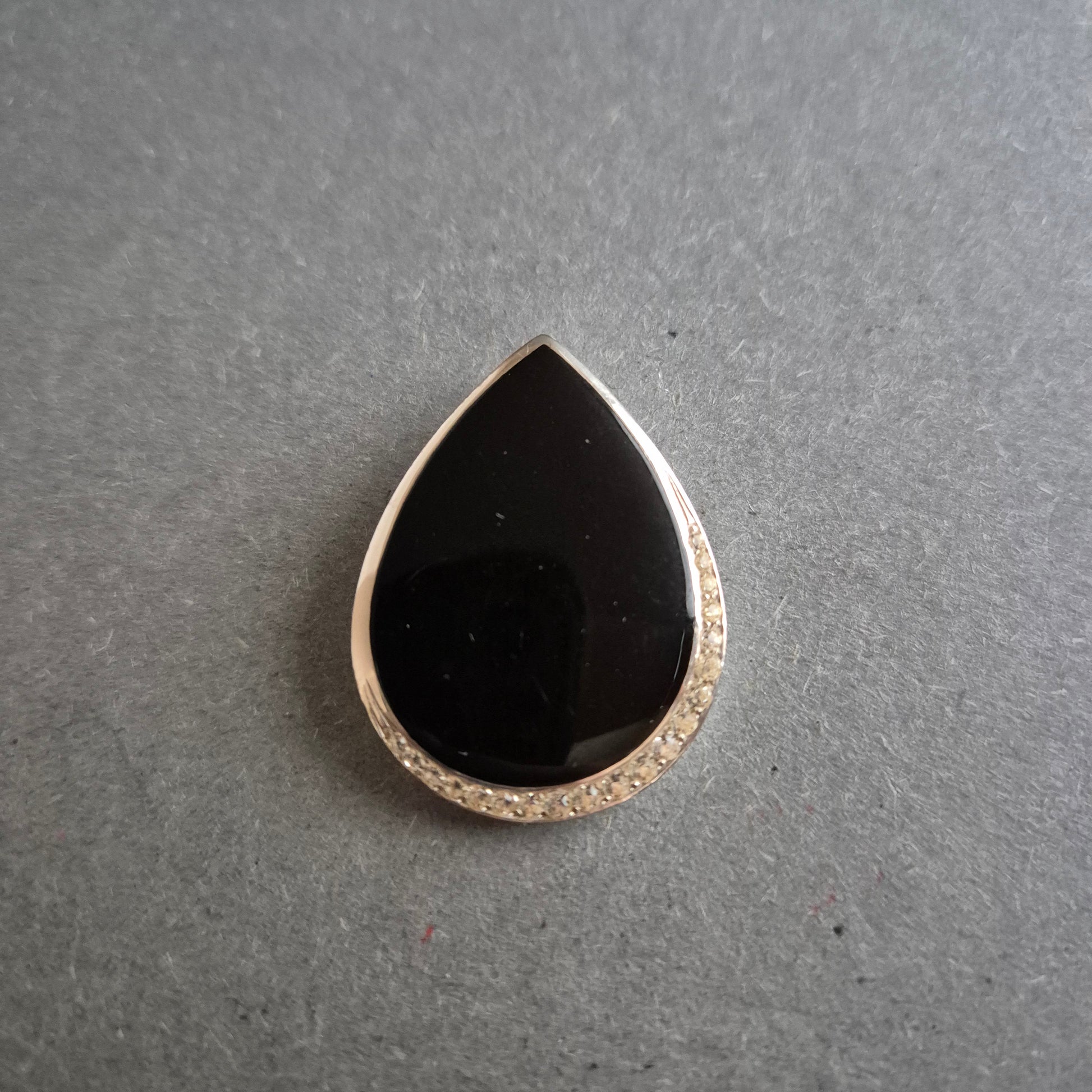 Eleganter Tropfenanhänger mit schwarzem Stein und Zirkonia-Akzent