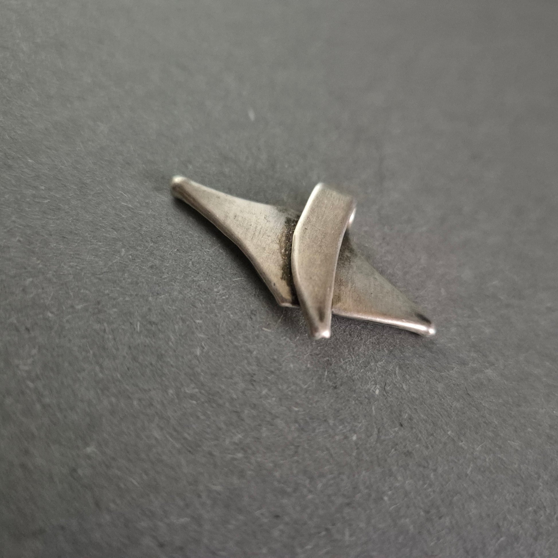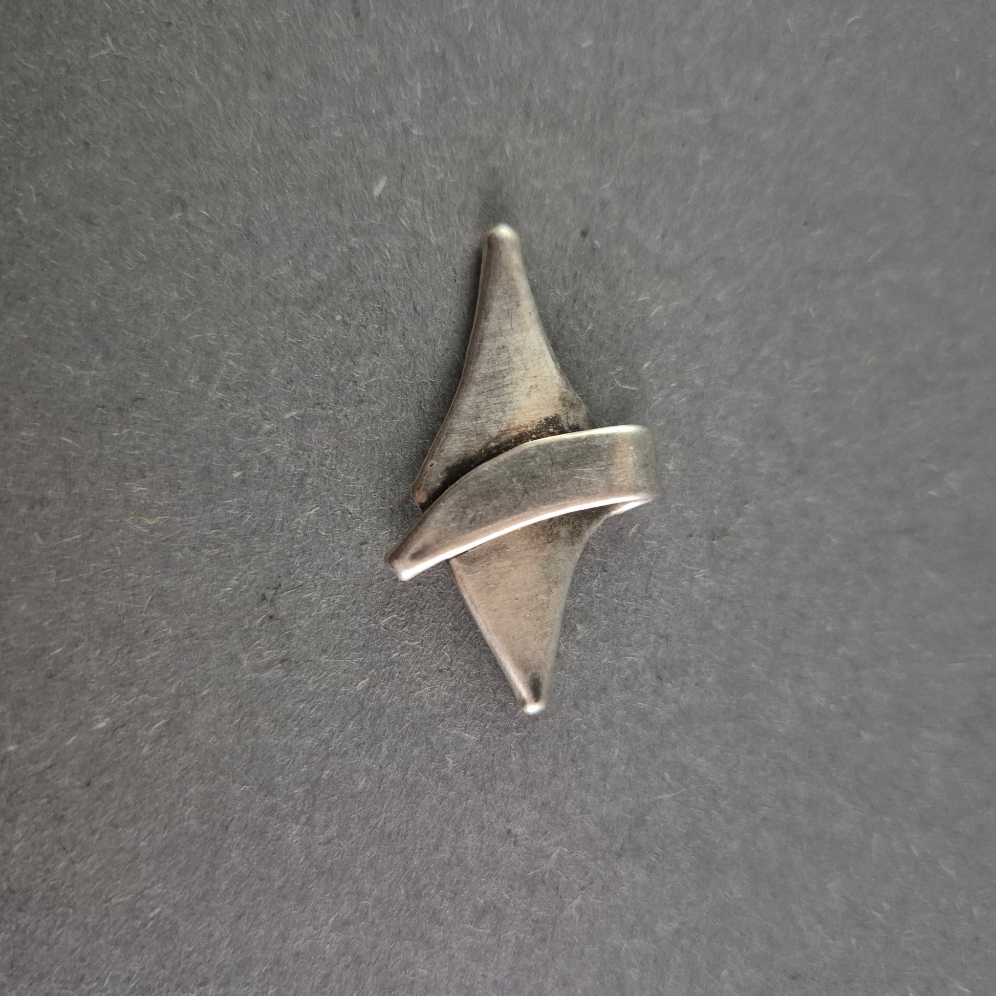 Dieser stilvolle Vintage-Anhänger besticht durch sein modernes, geschwungenes Design und die hochwertige Verarbeitung aus Silber. Die dynamische Form verleiht dem Schmuckstück eine zeitlose Eleganz und einen einzigartigen, modernen Look. Perfekt für Liebhaber von minimalistischem und dennoch ausdrucksstarkem Schmuck.