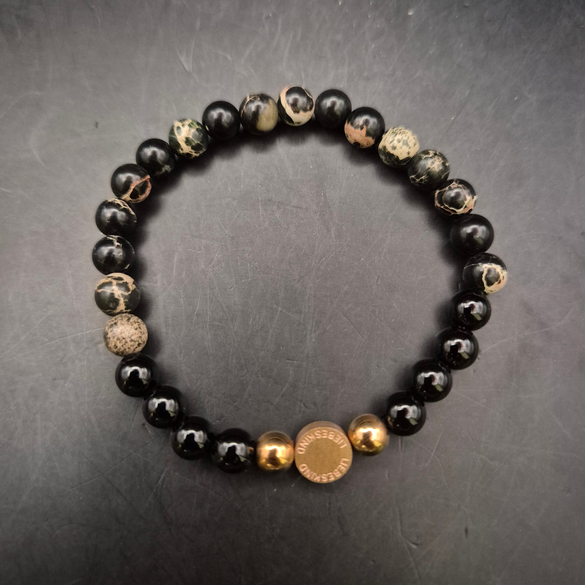 Elegantes Perlen Armband aus Onyx und Jaspis mit Liebeskind-Detail