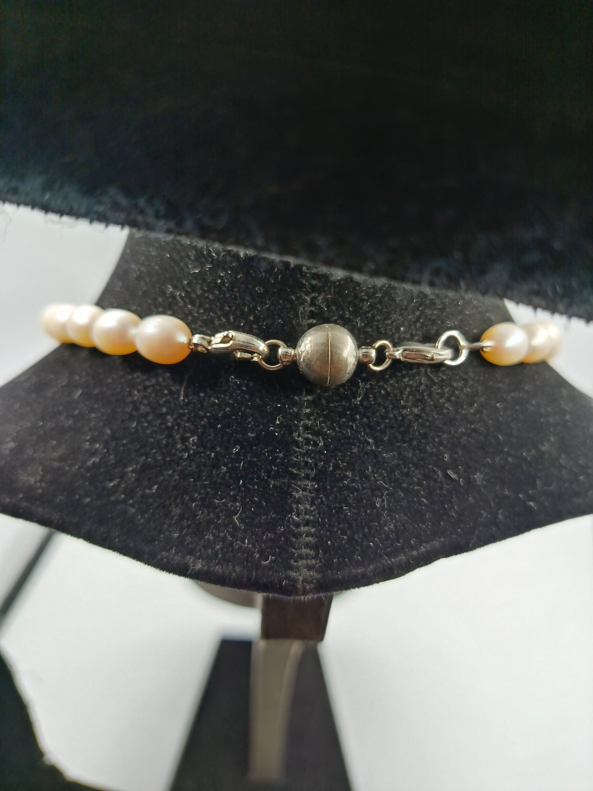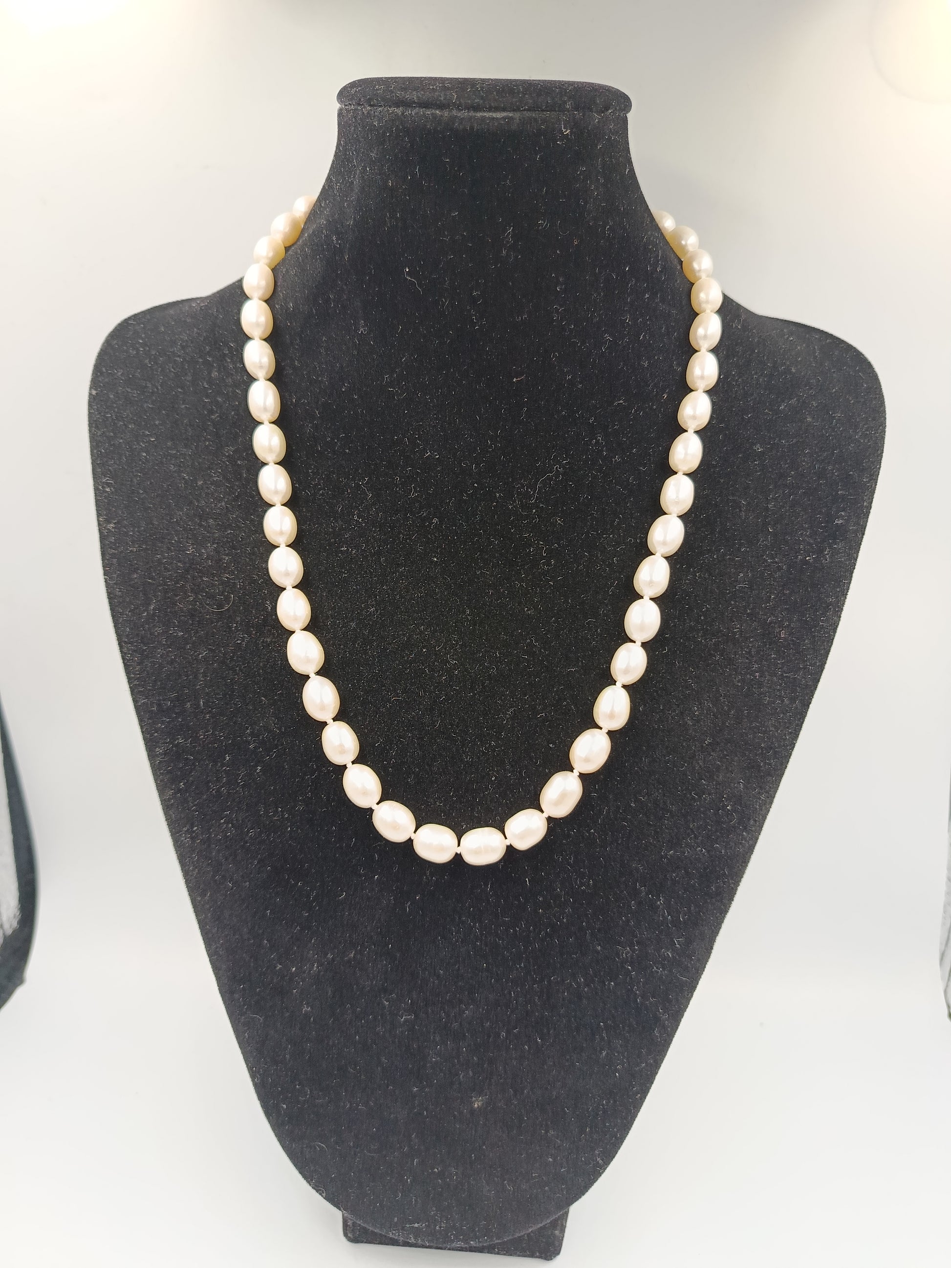 • Material: Silberfarbene Schließe, Zuchtperlen (oval, cremeweiß)