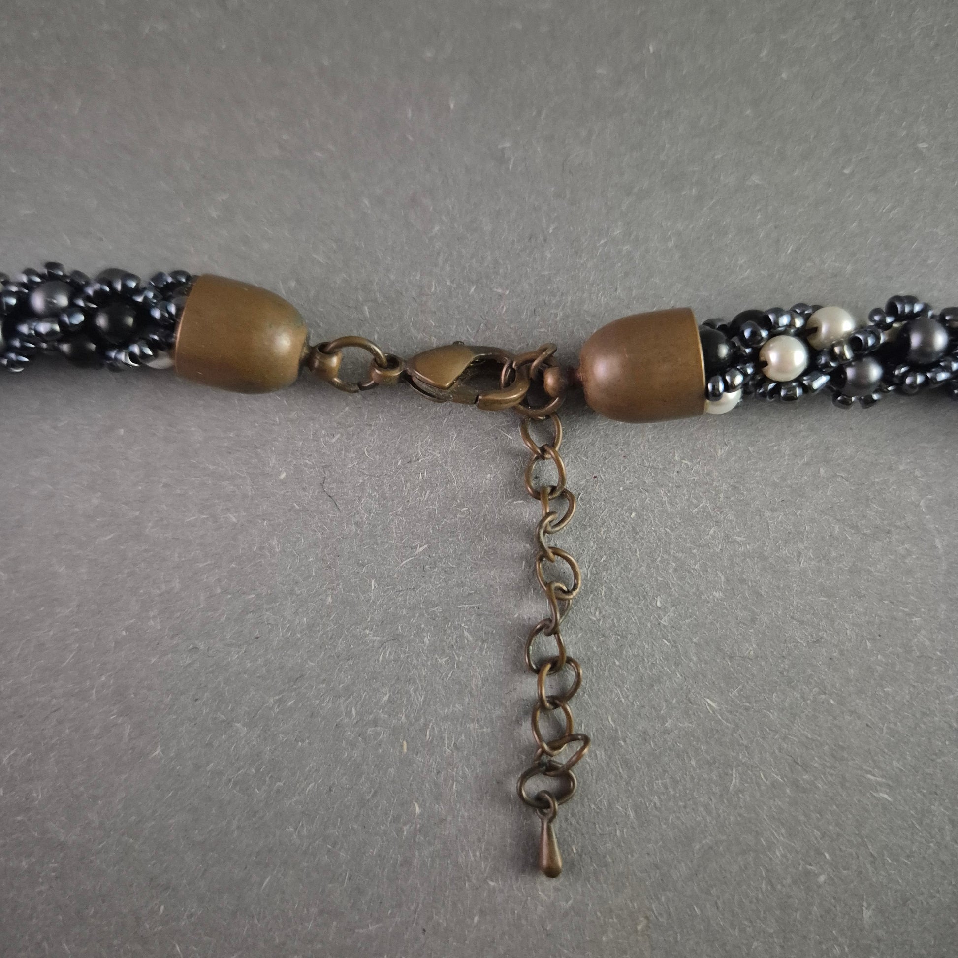 Exquisite handgeflochtene Perlenkette in Schwarz & Weiß