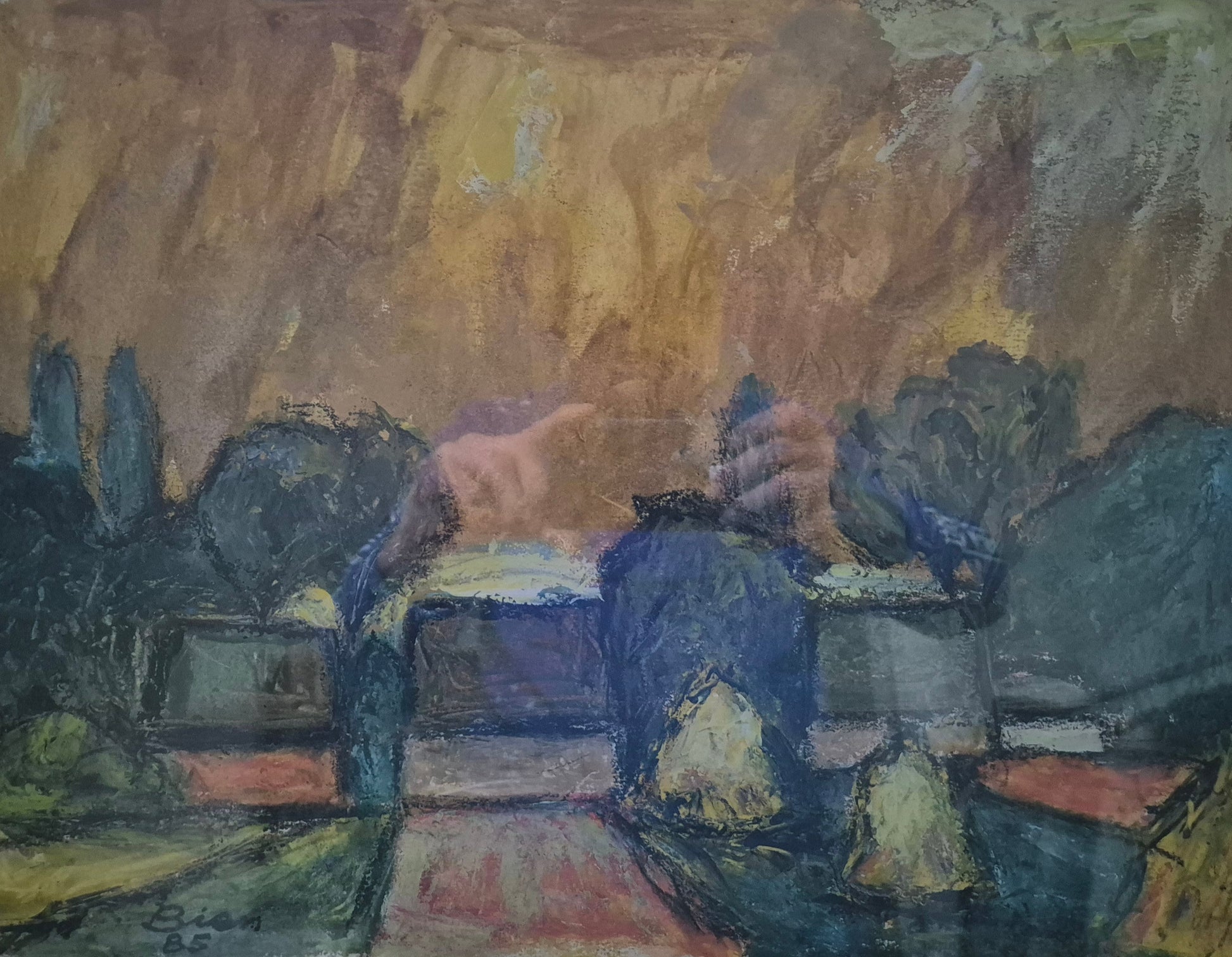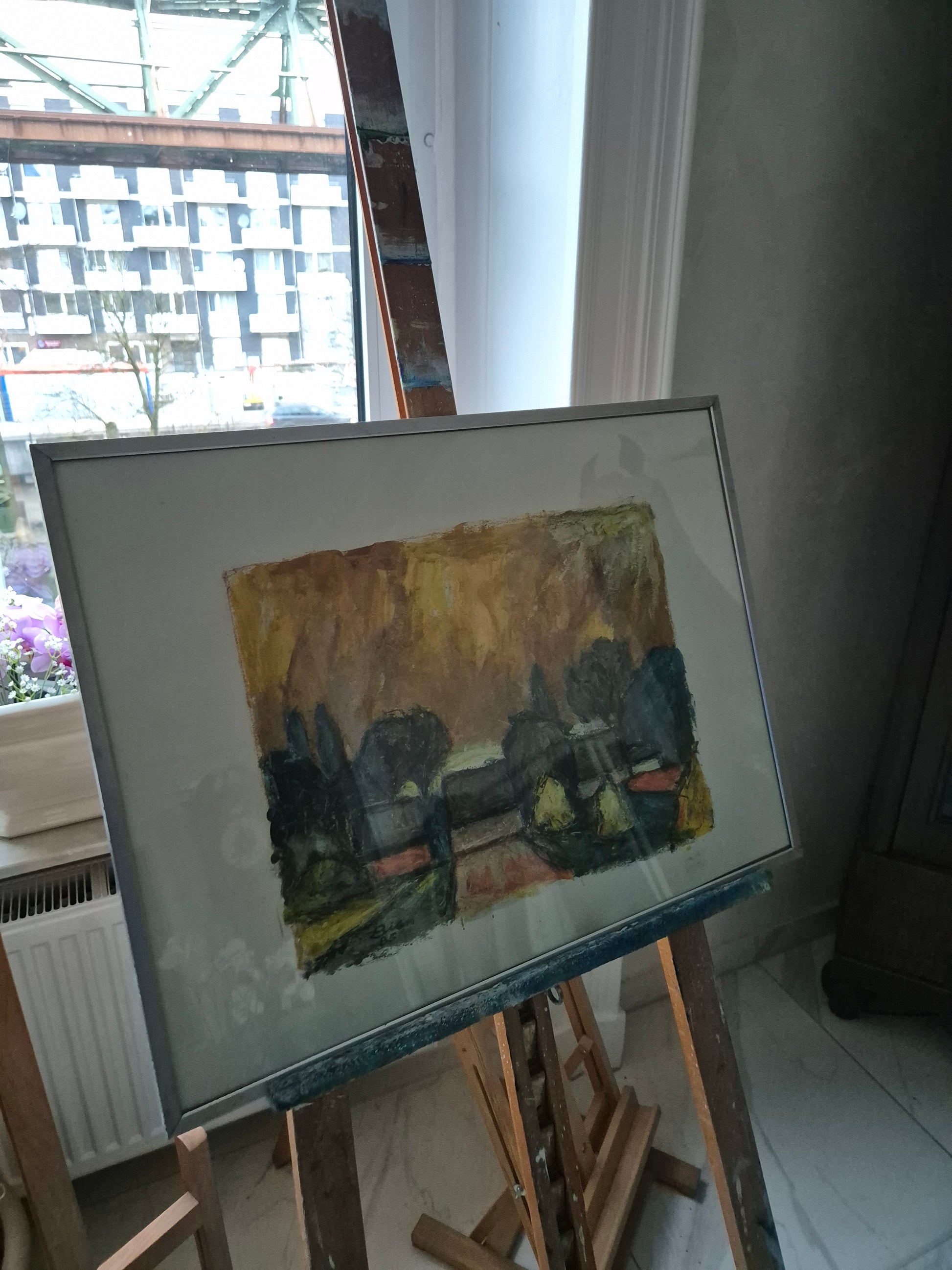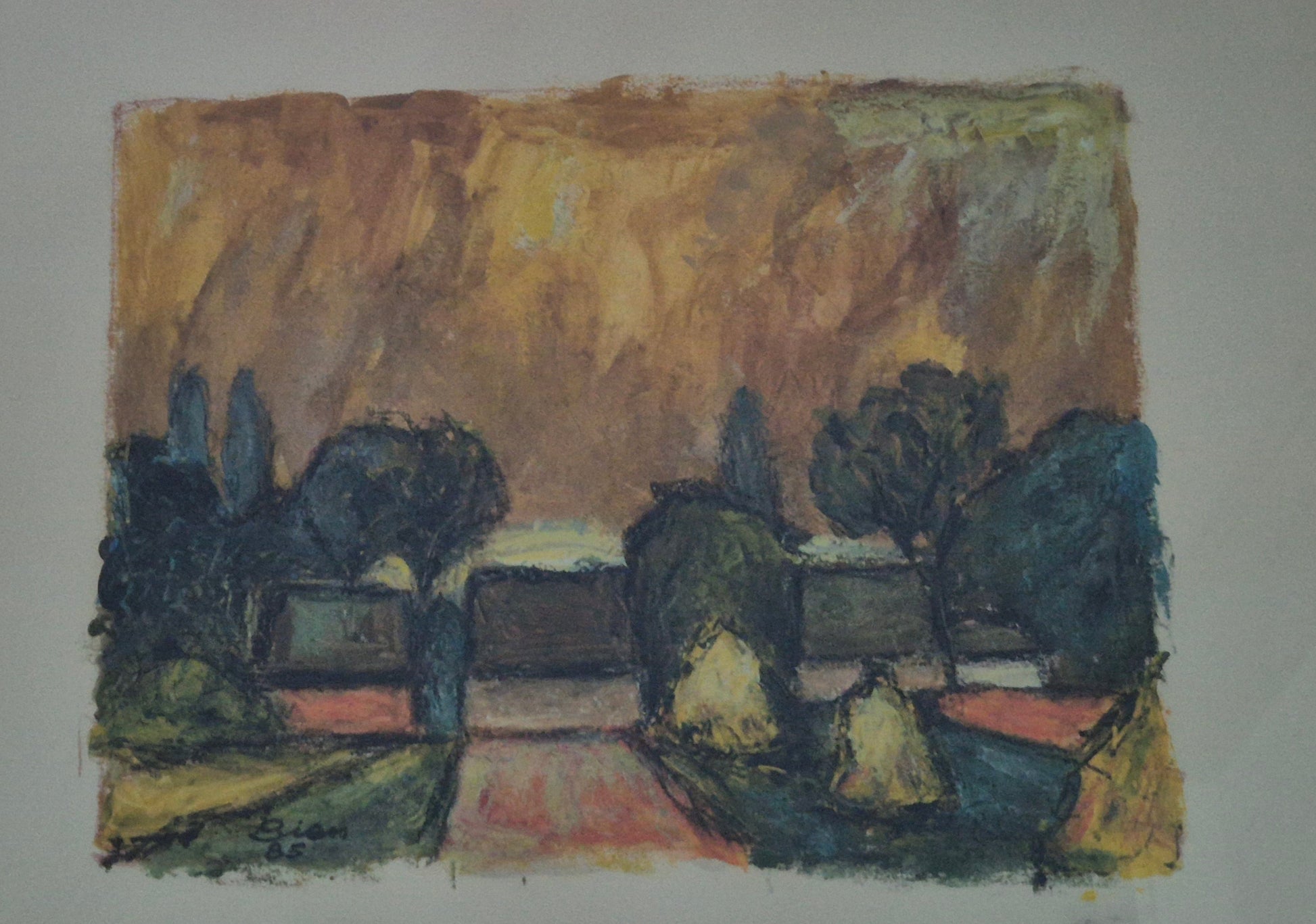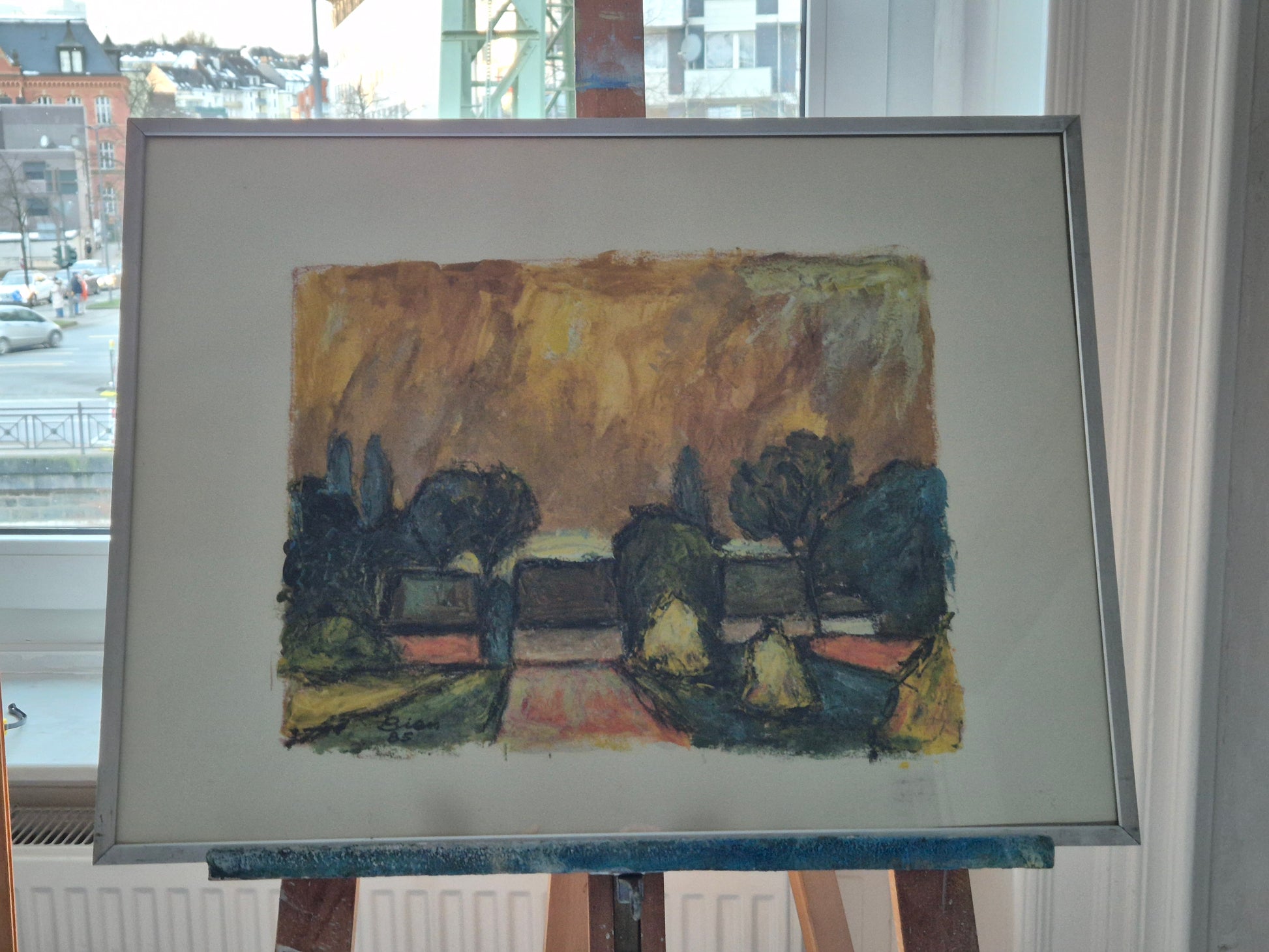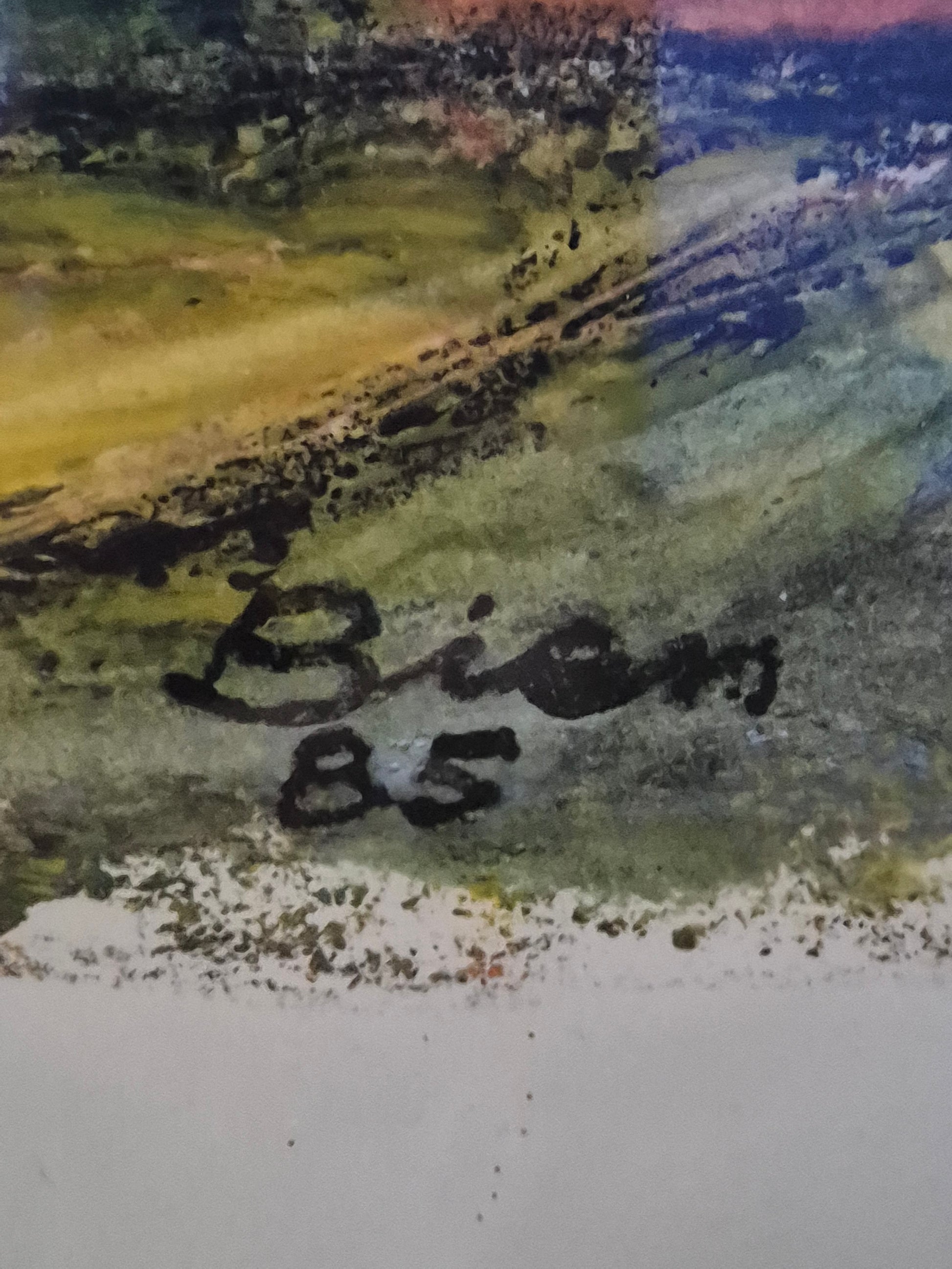 Fritz Bien (1909-2001) Malerei Expressive Landschaft gerahmt hinter Glas
