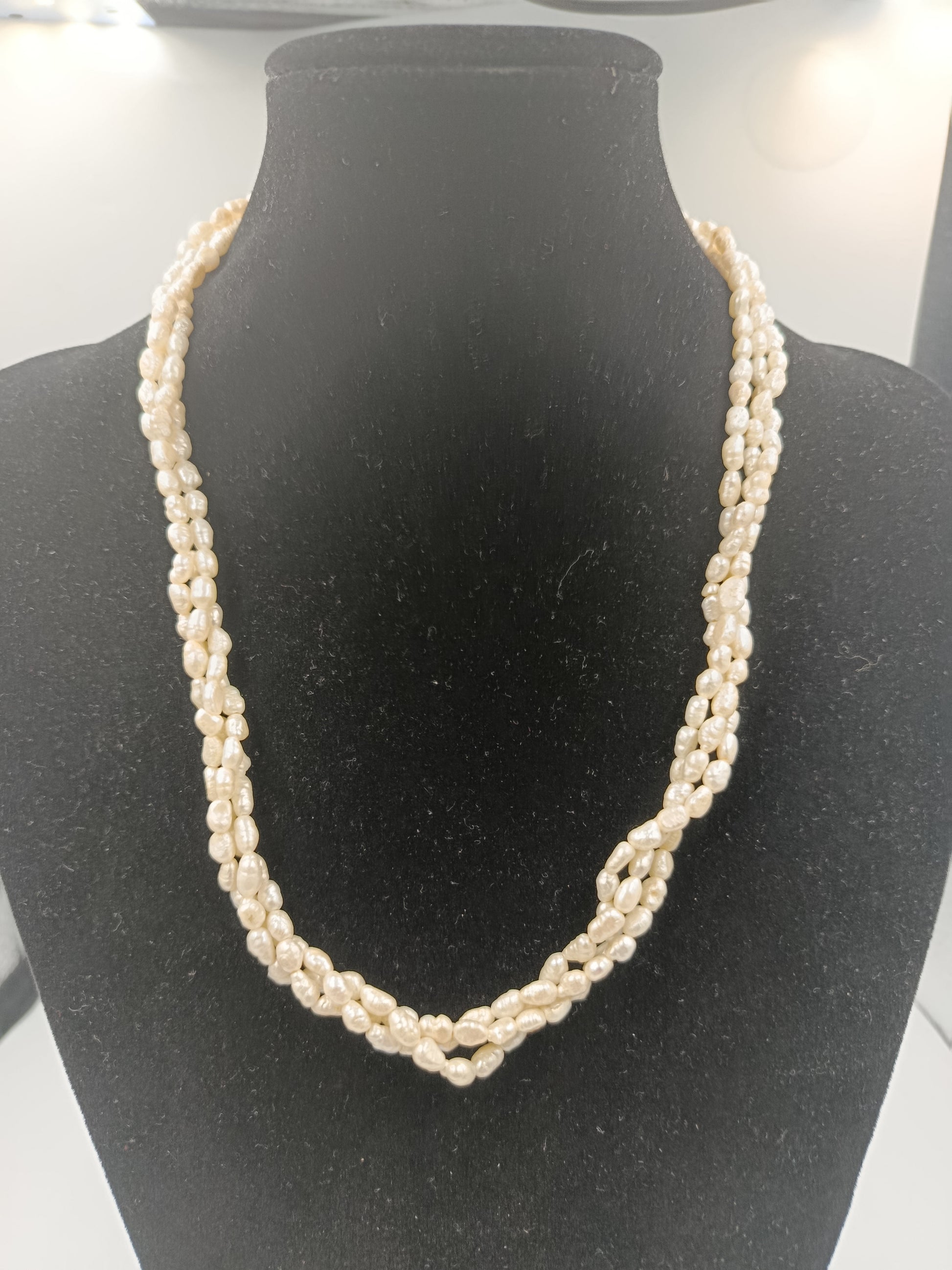 Geflochtenes Perlen-Collier mit natürlichem Lüster