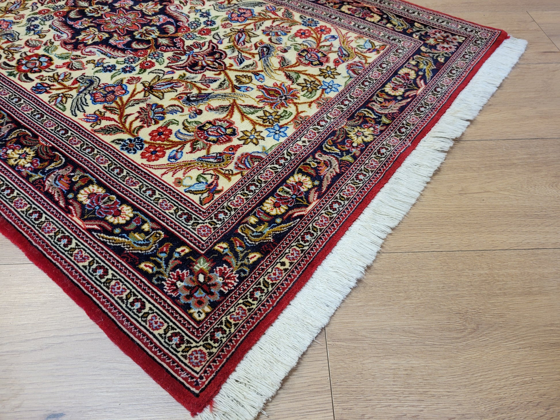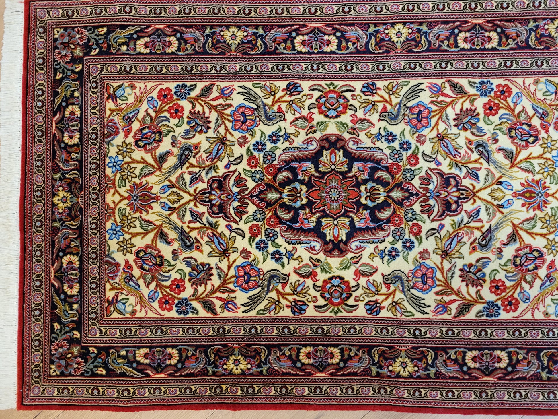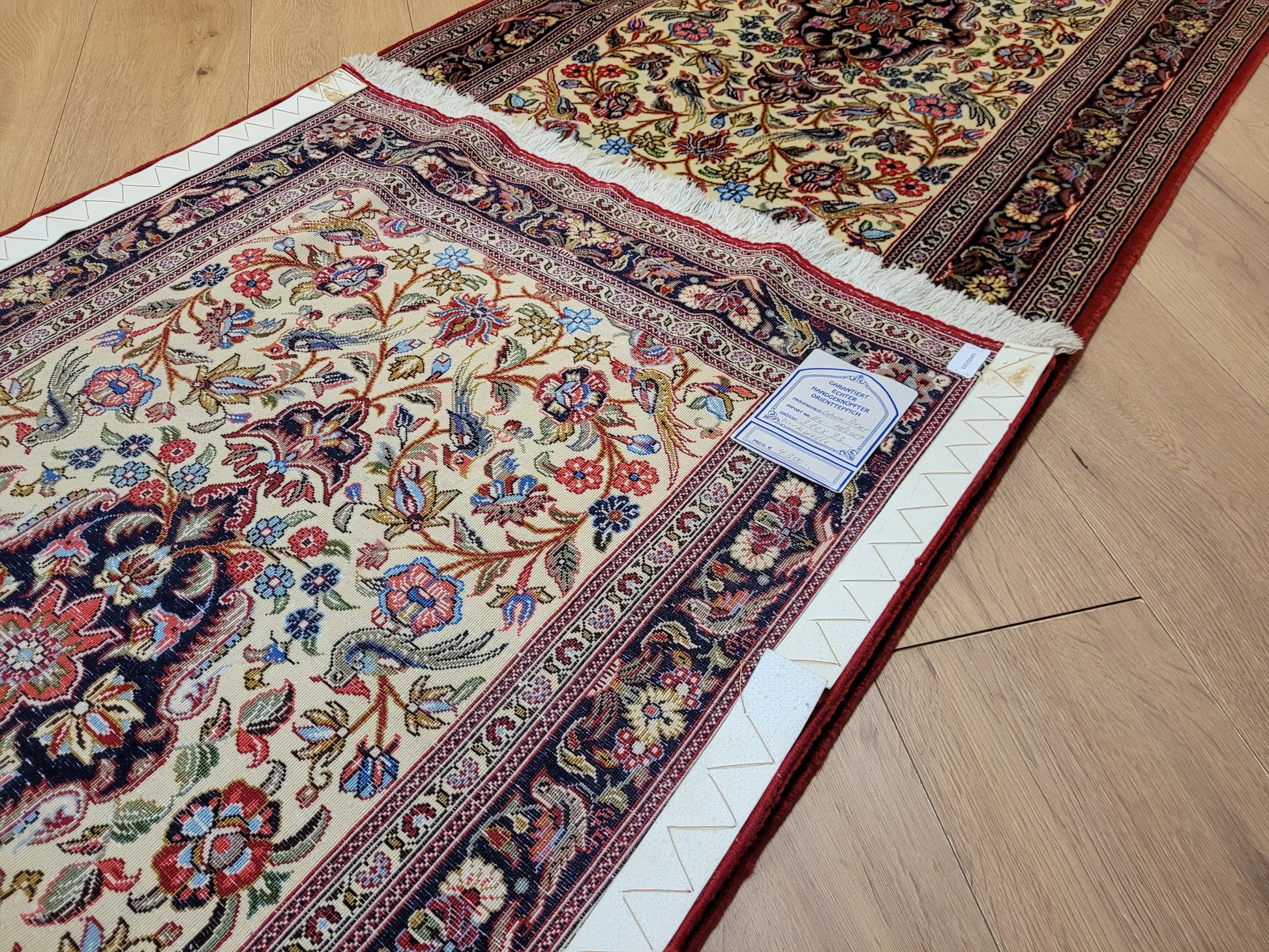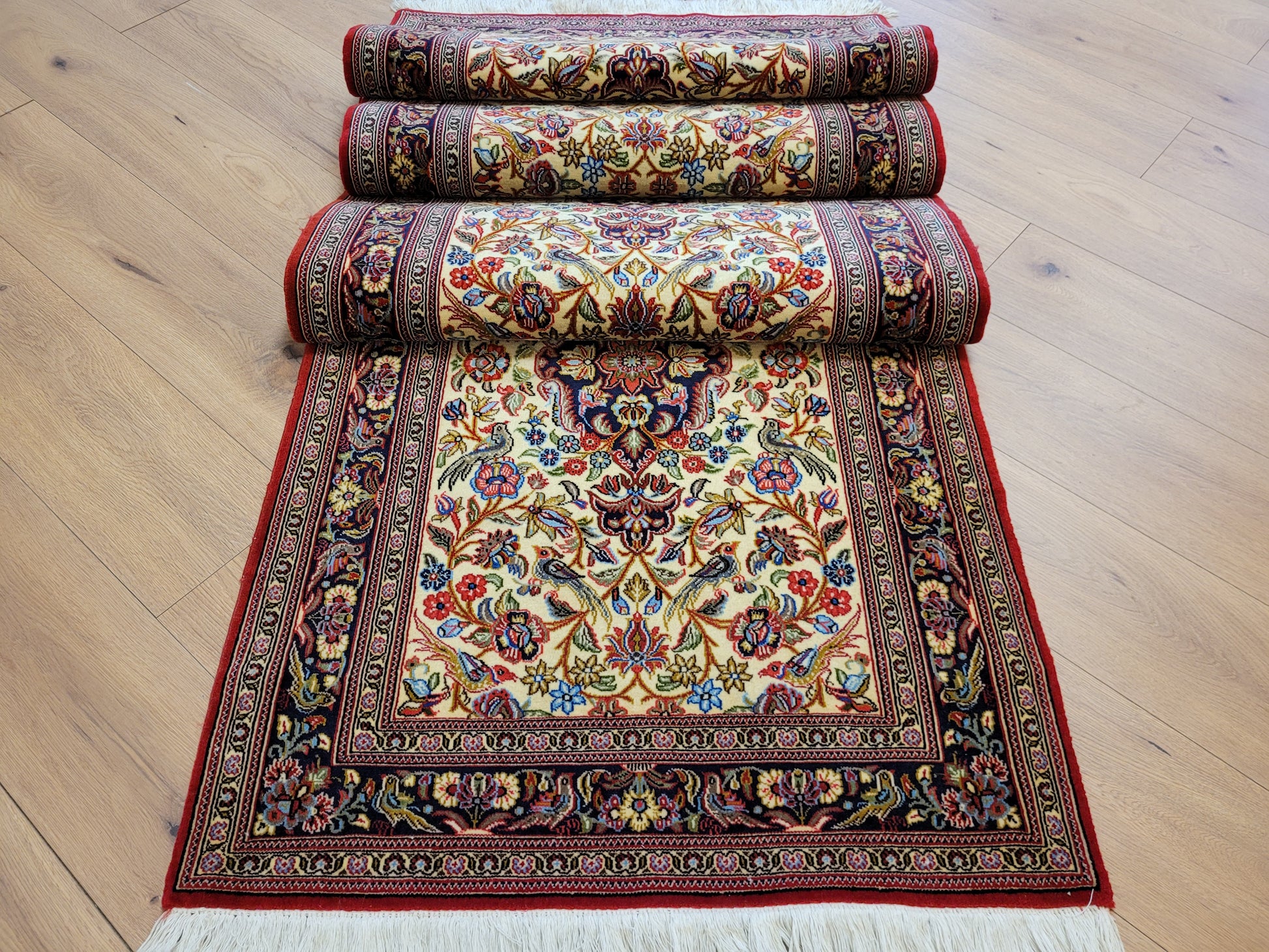 Ghom Läufer Korkwolle floral Vögel feine Knüpfkunst