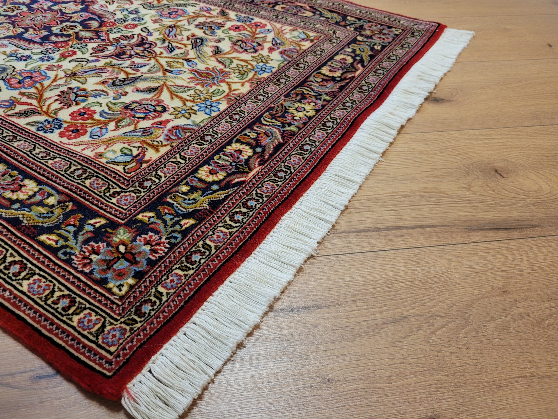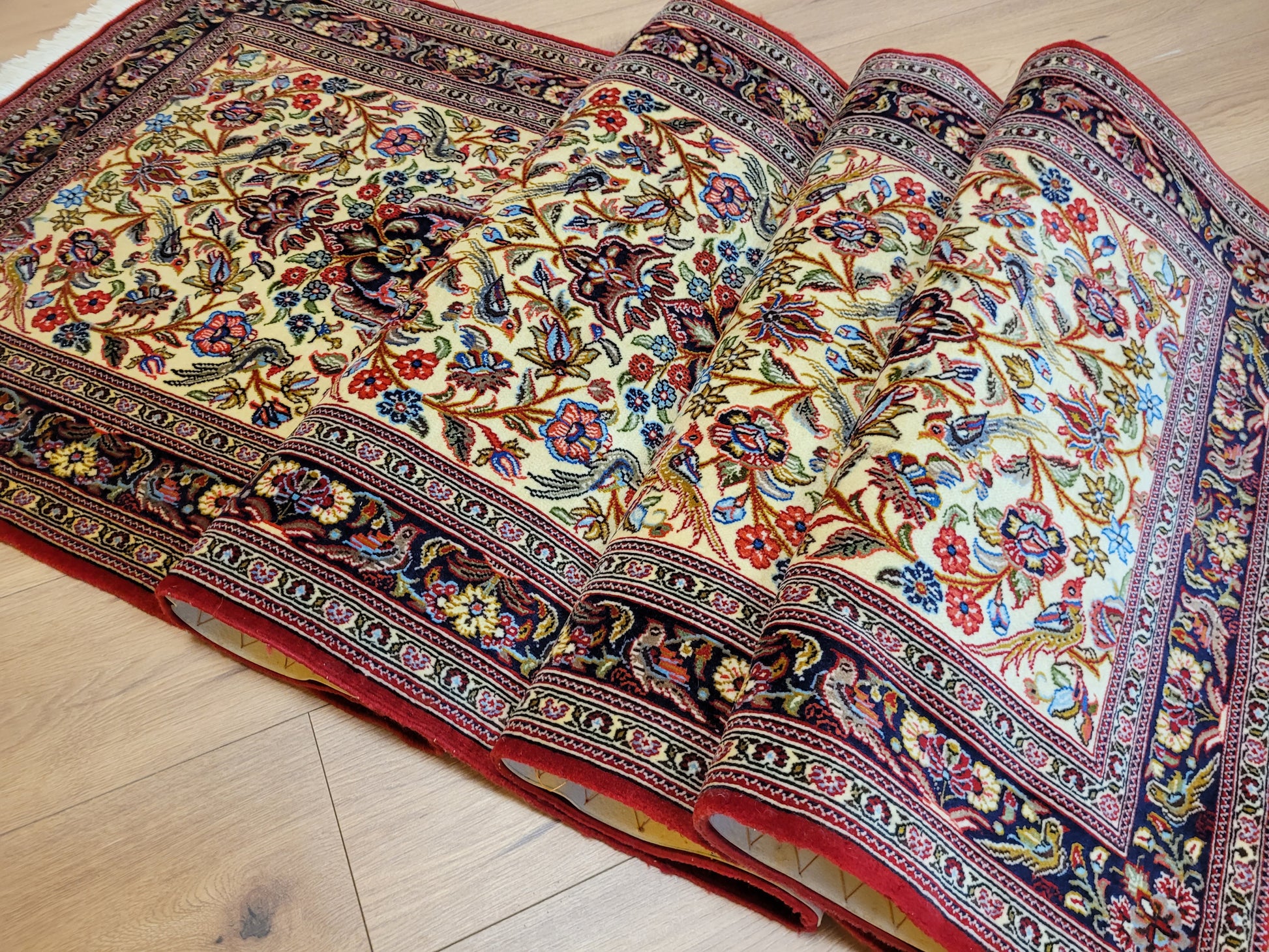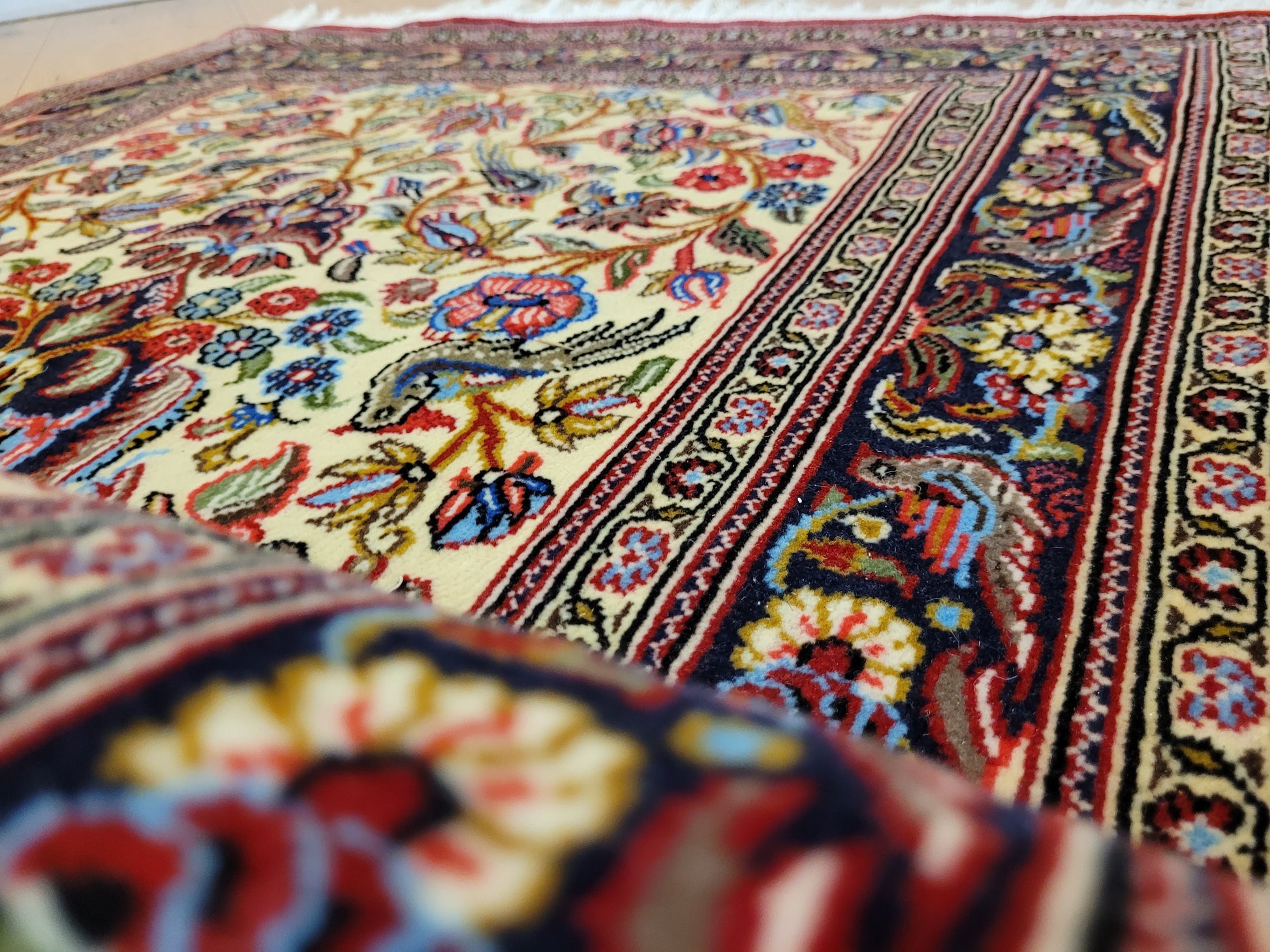 Ghom Läufer Korkwolle floral Vögel feine Knüpfkunst