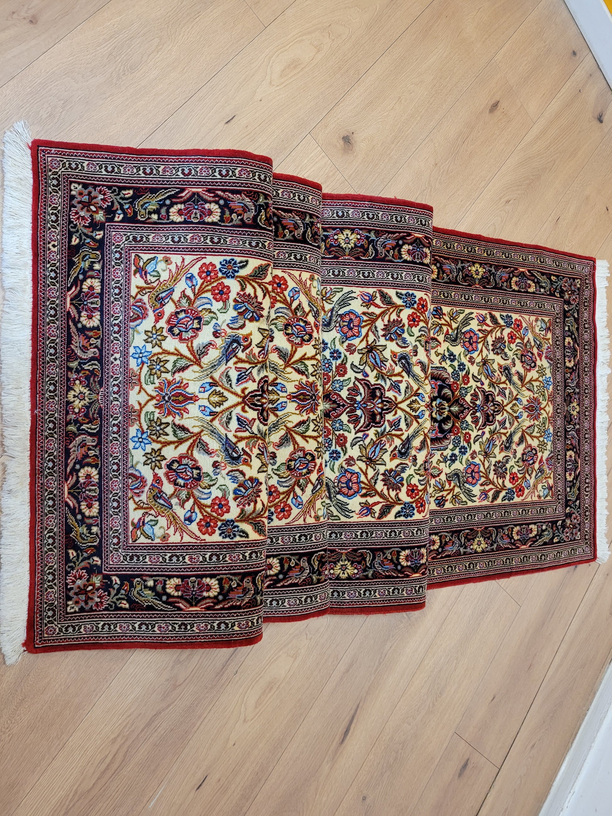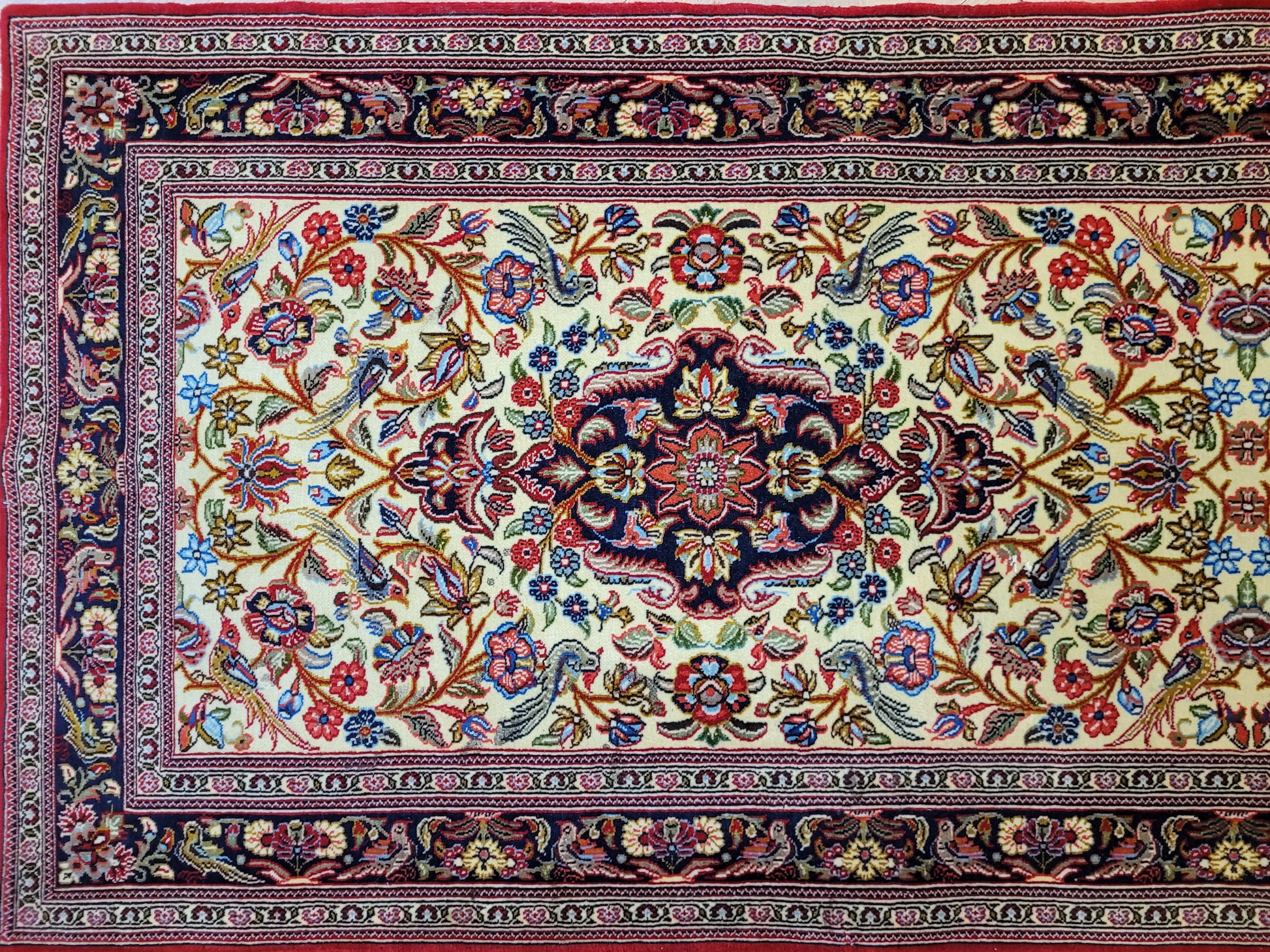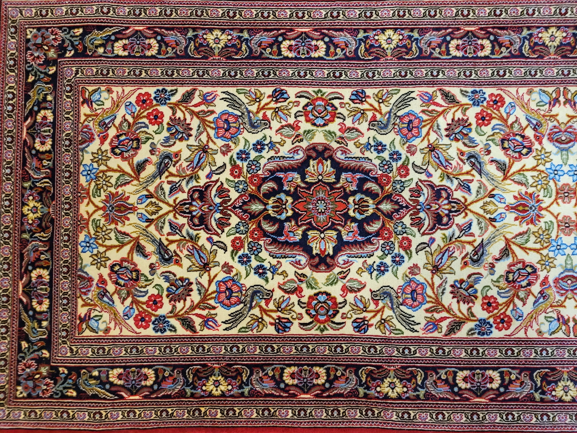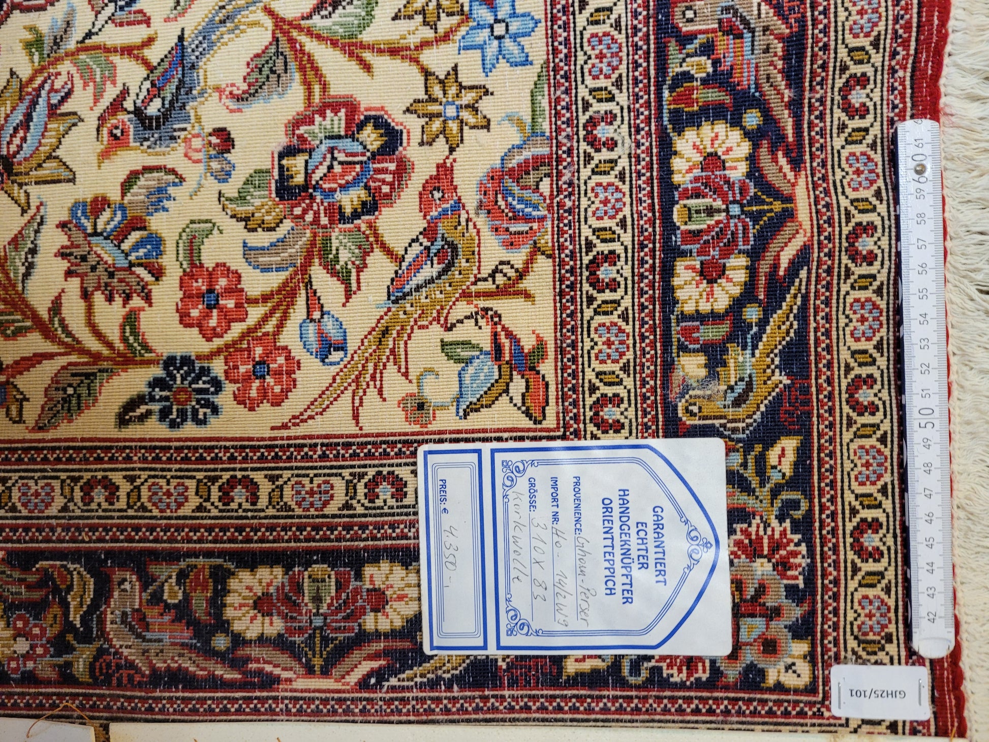 Ghom Läufer Korkwolle floral Vögel feine Knüpfkunst