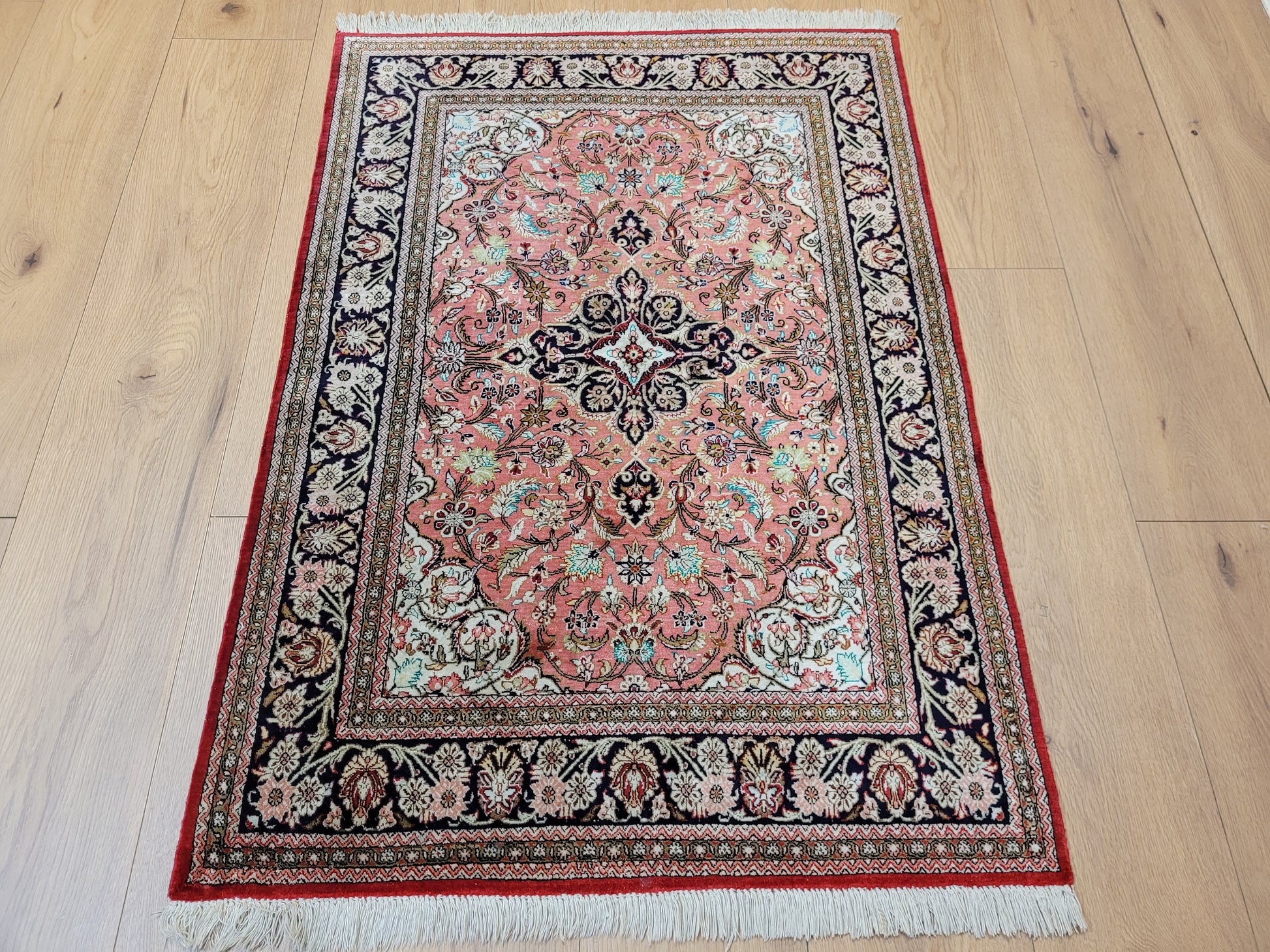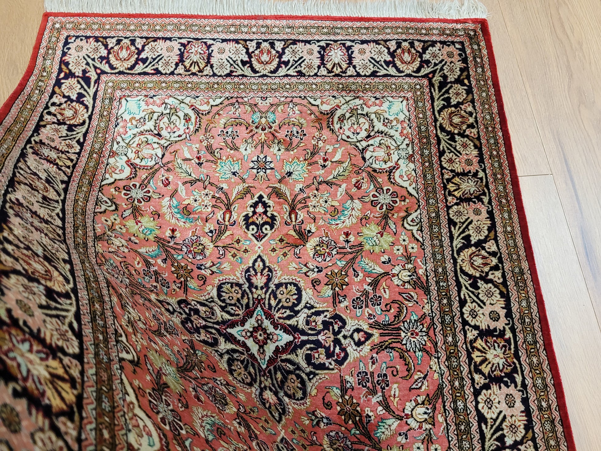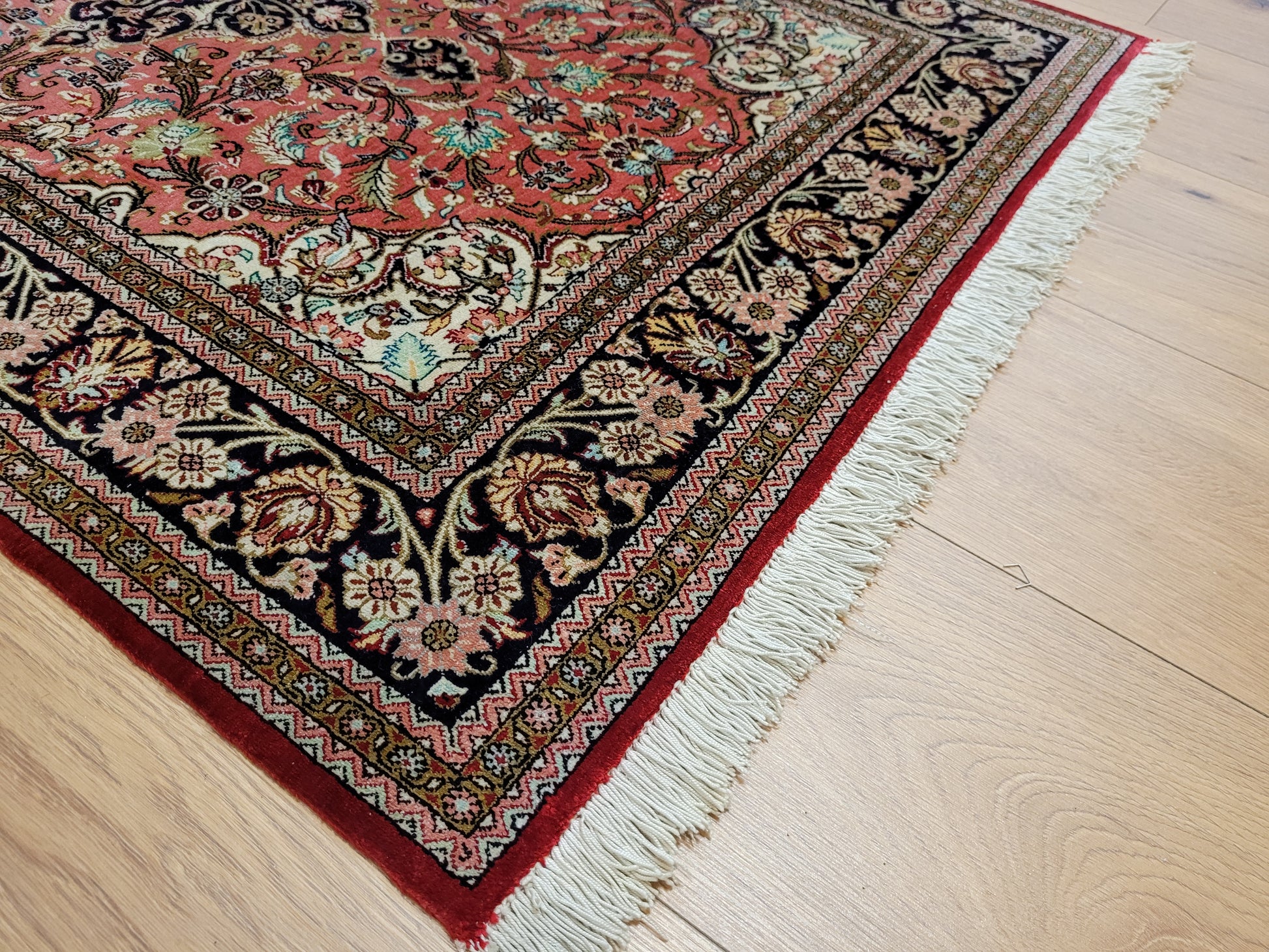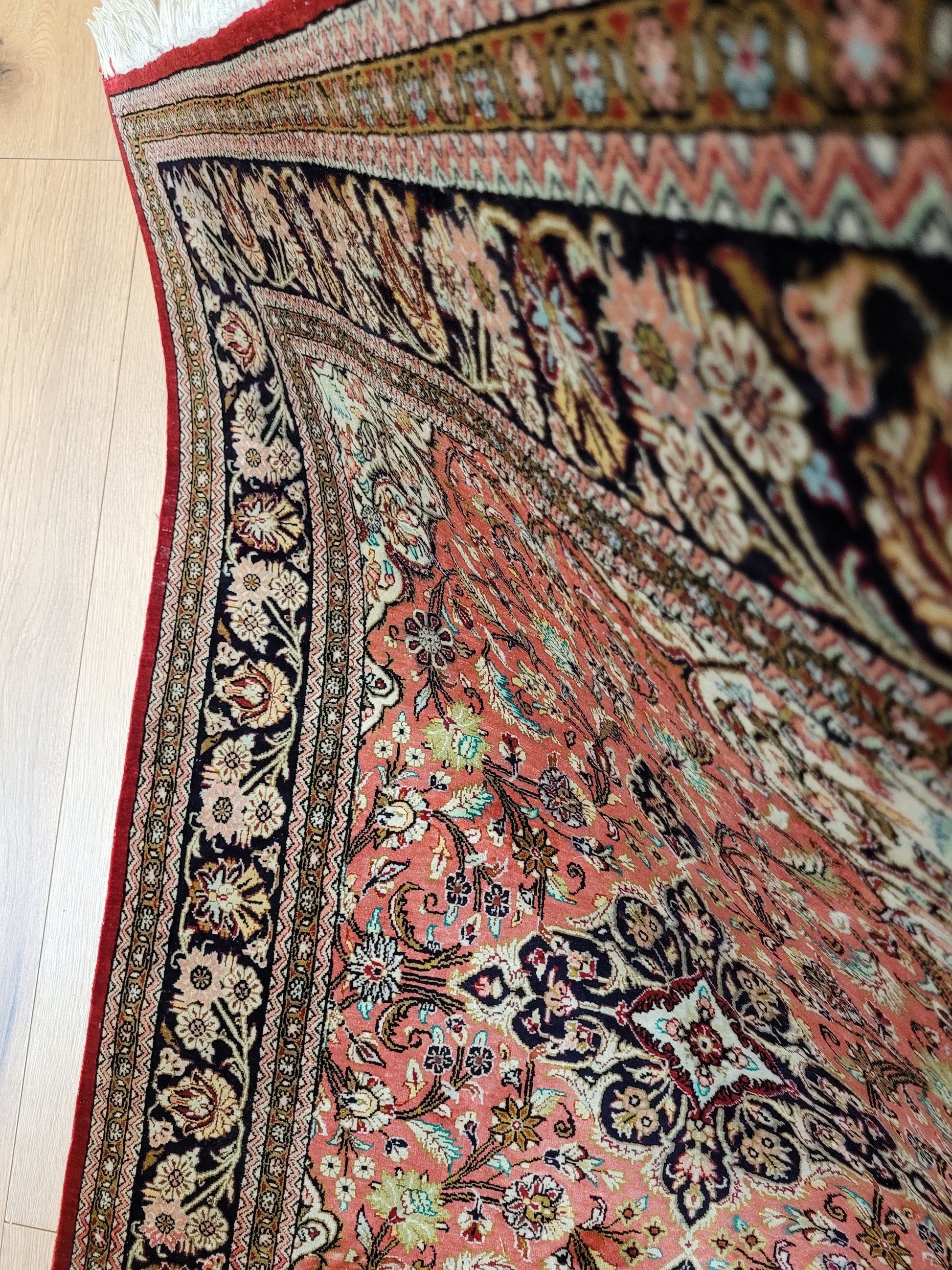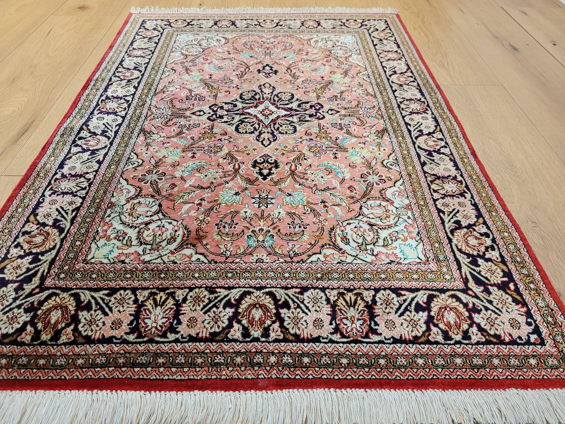 Ghom Teppich Seide auf Seide Medaillon florales Design feine Knüpfung