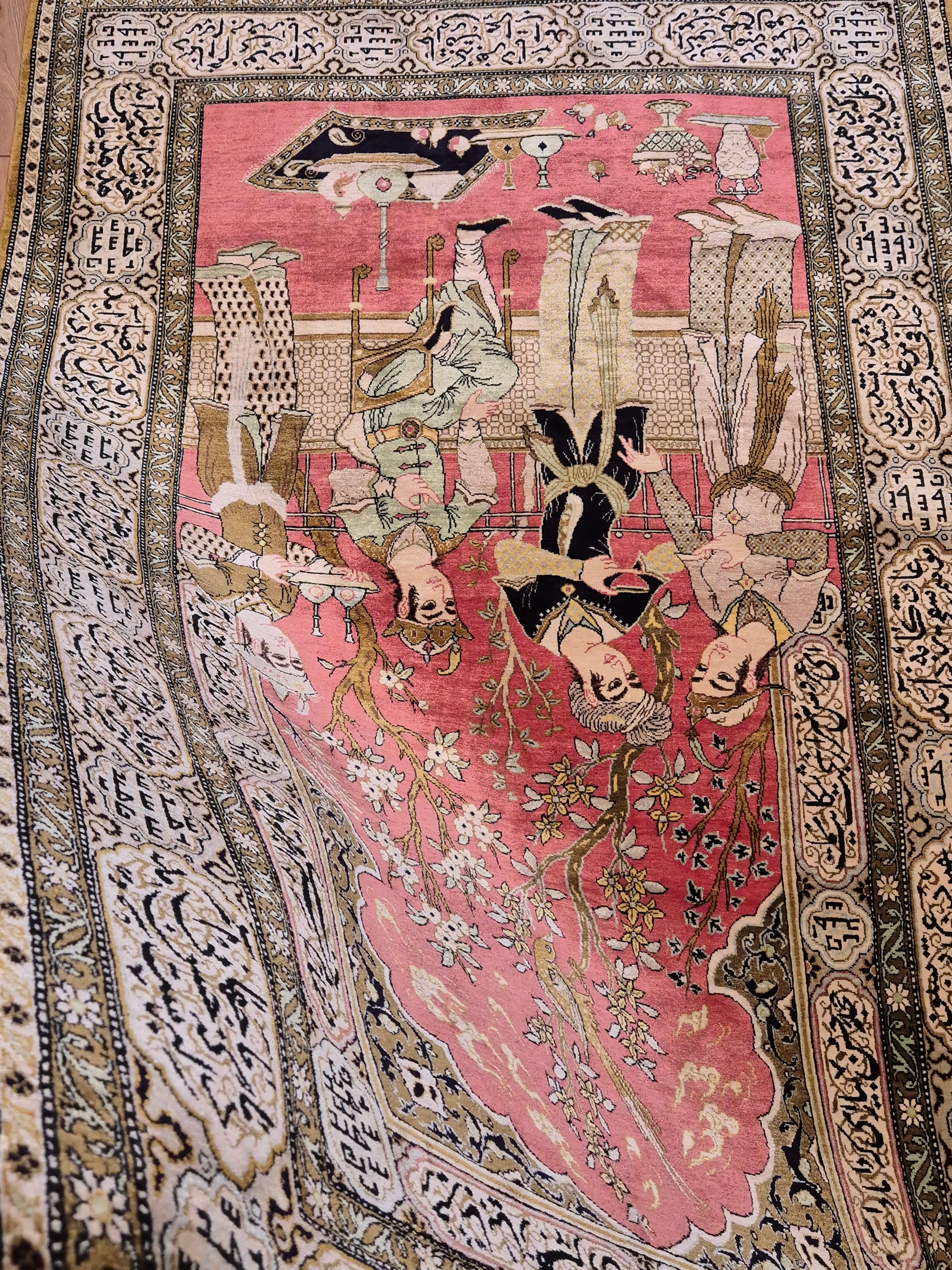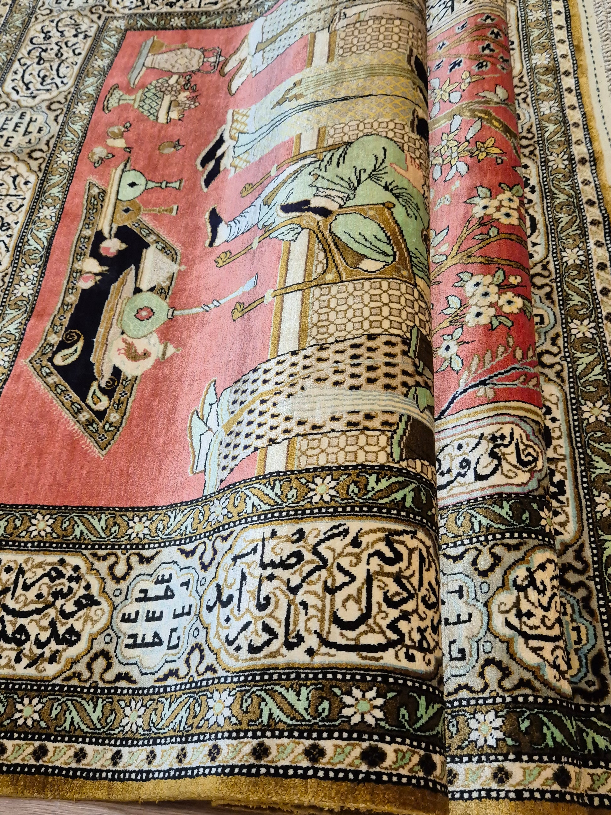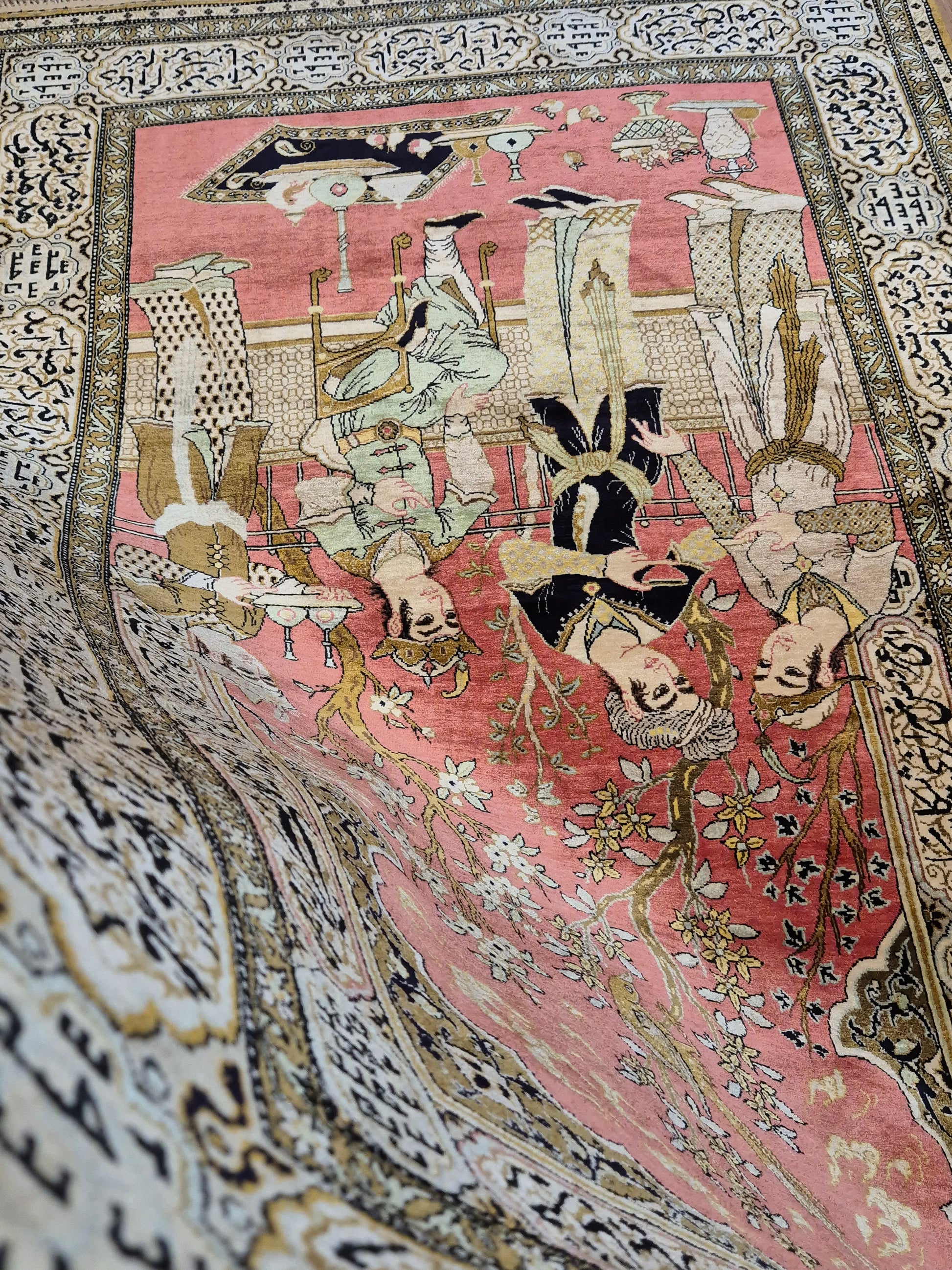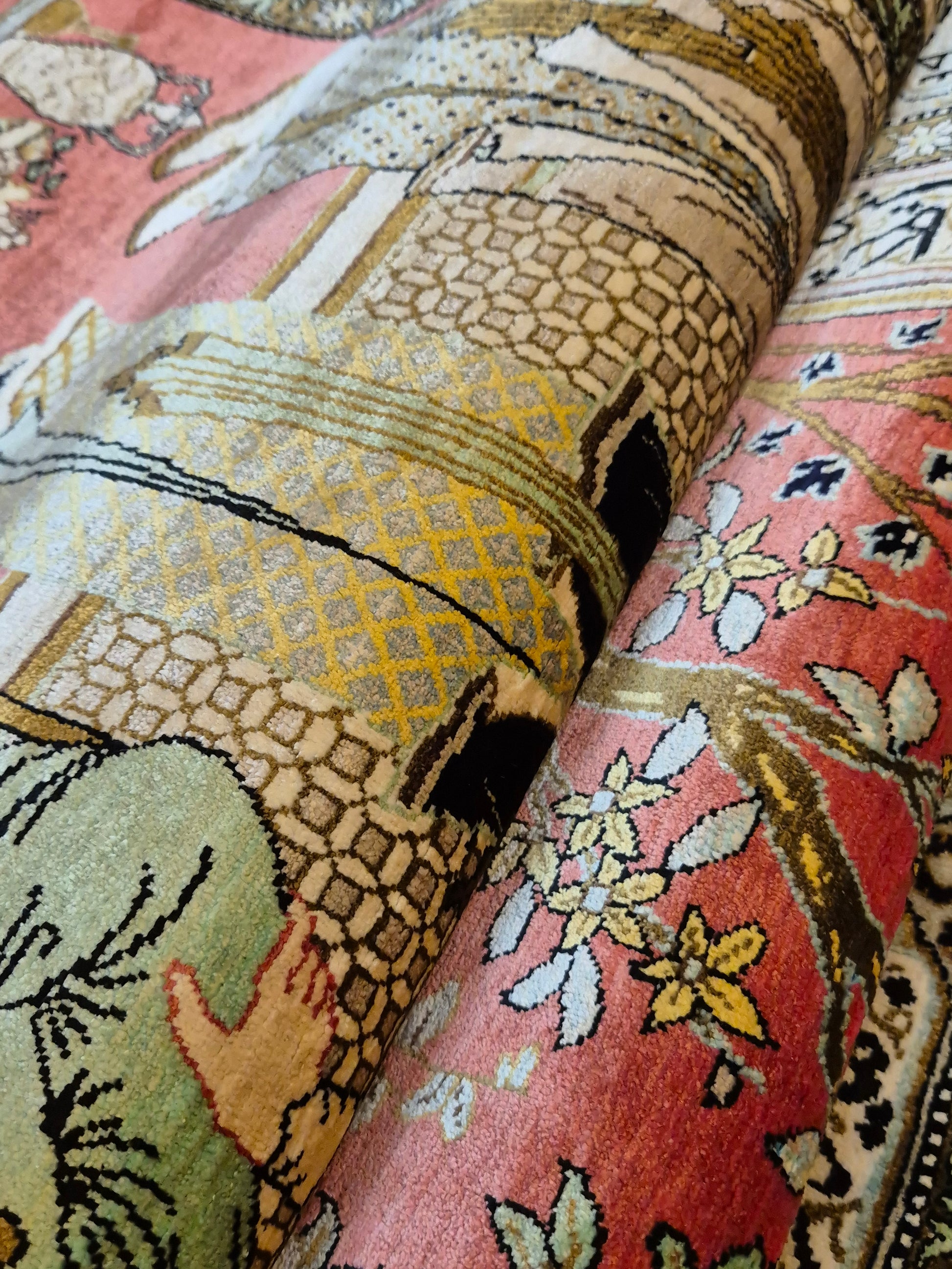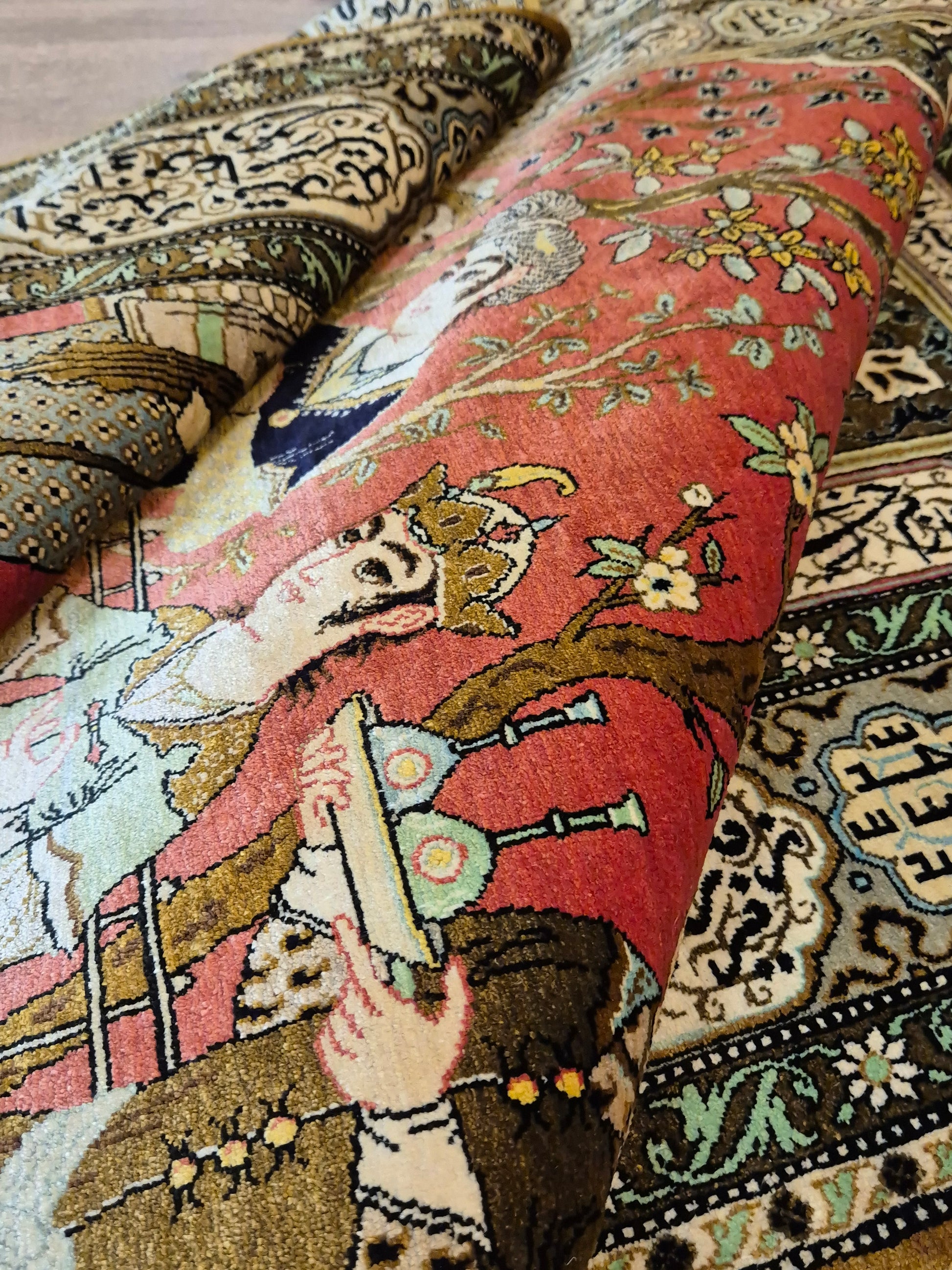 Ghom Seide Teppich Seide auf Seide figürliche Szene feine Knüpfung