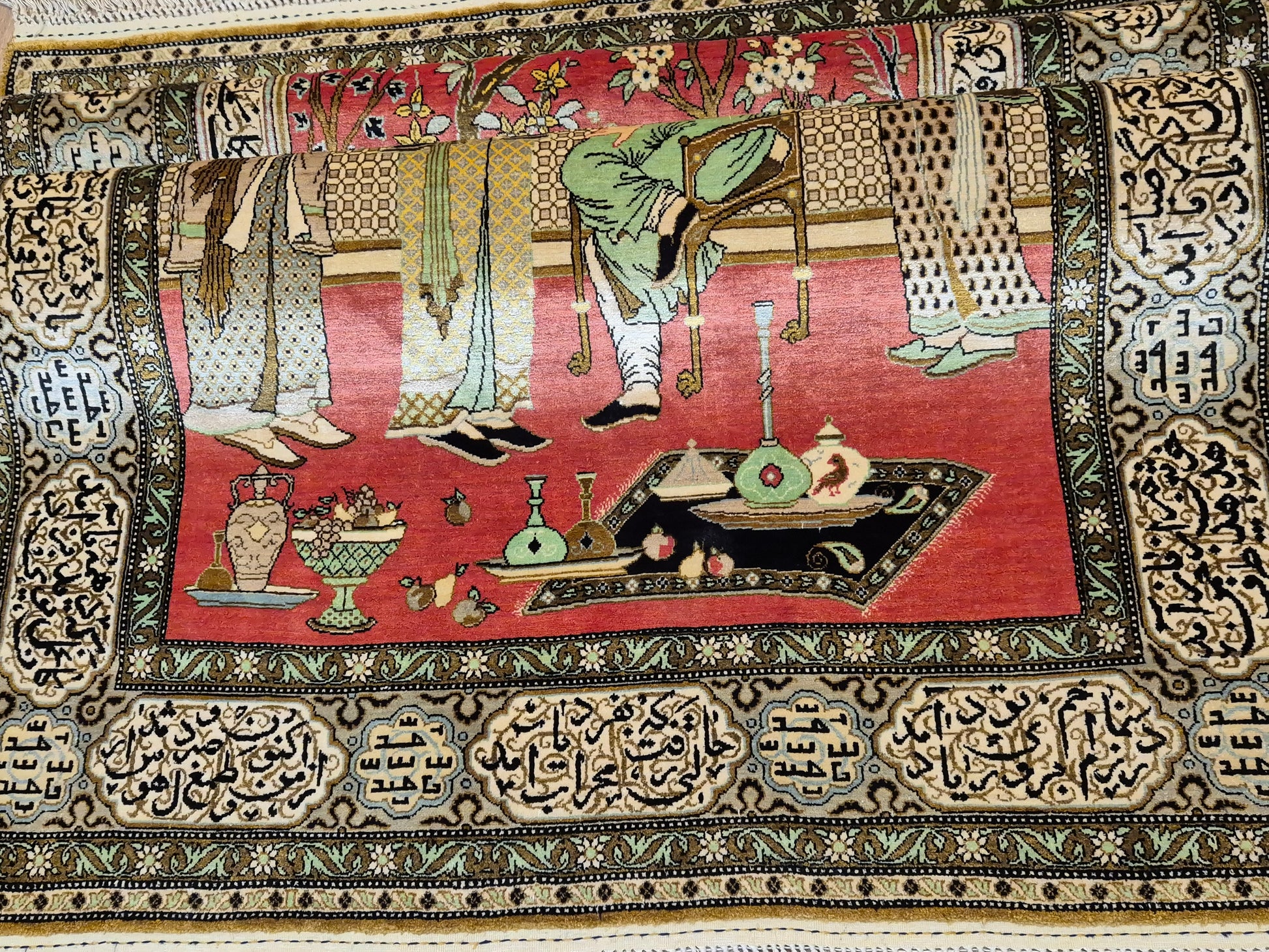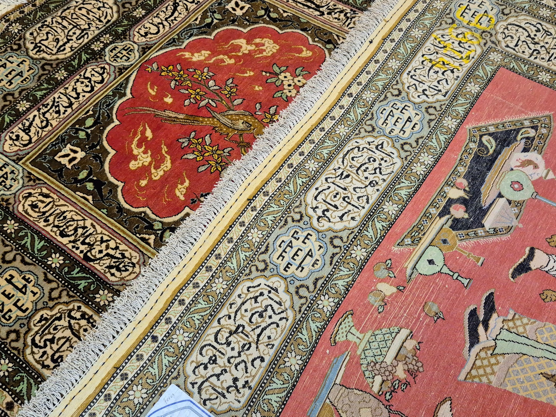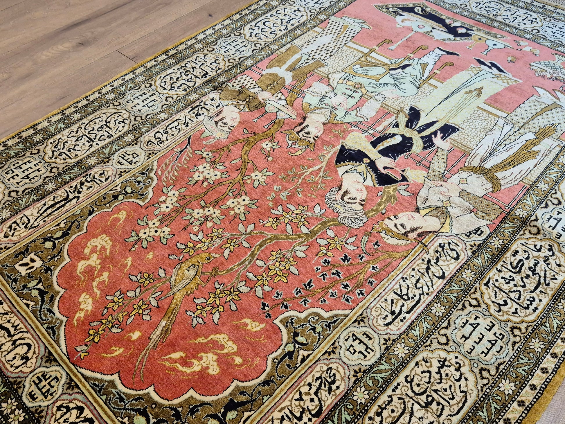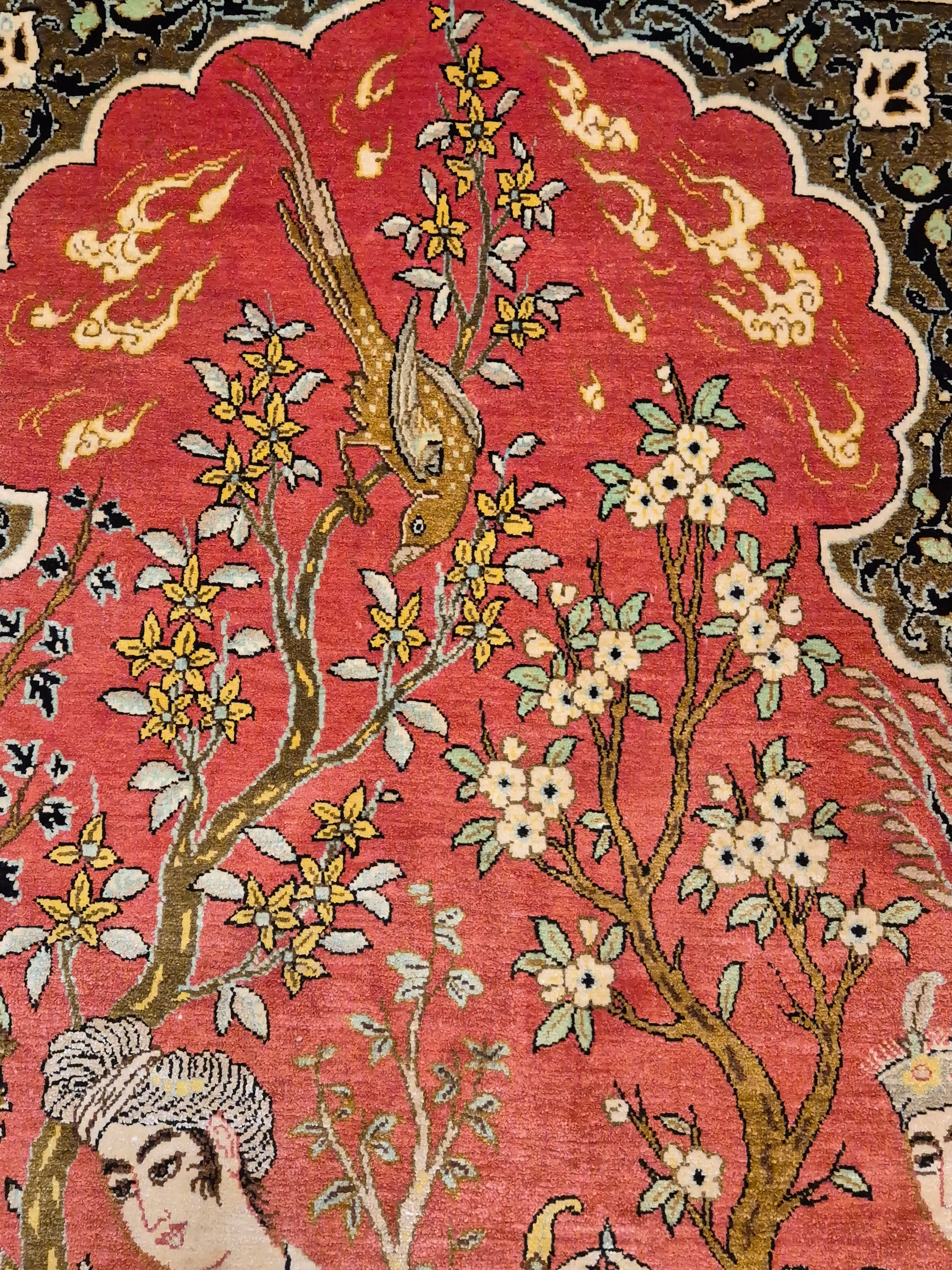 Ghom Seide Teppich Seide auf Seide figürliche Szene feine Knüpfung
