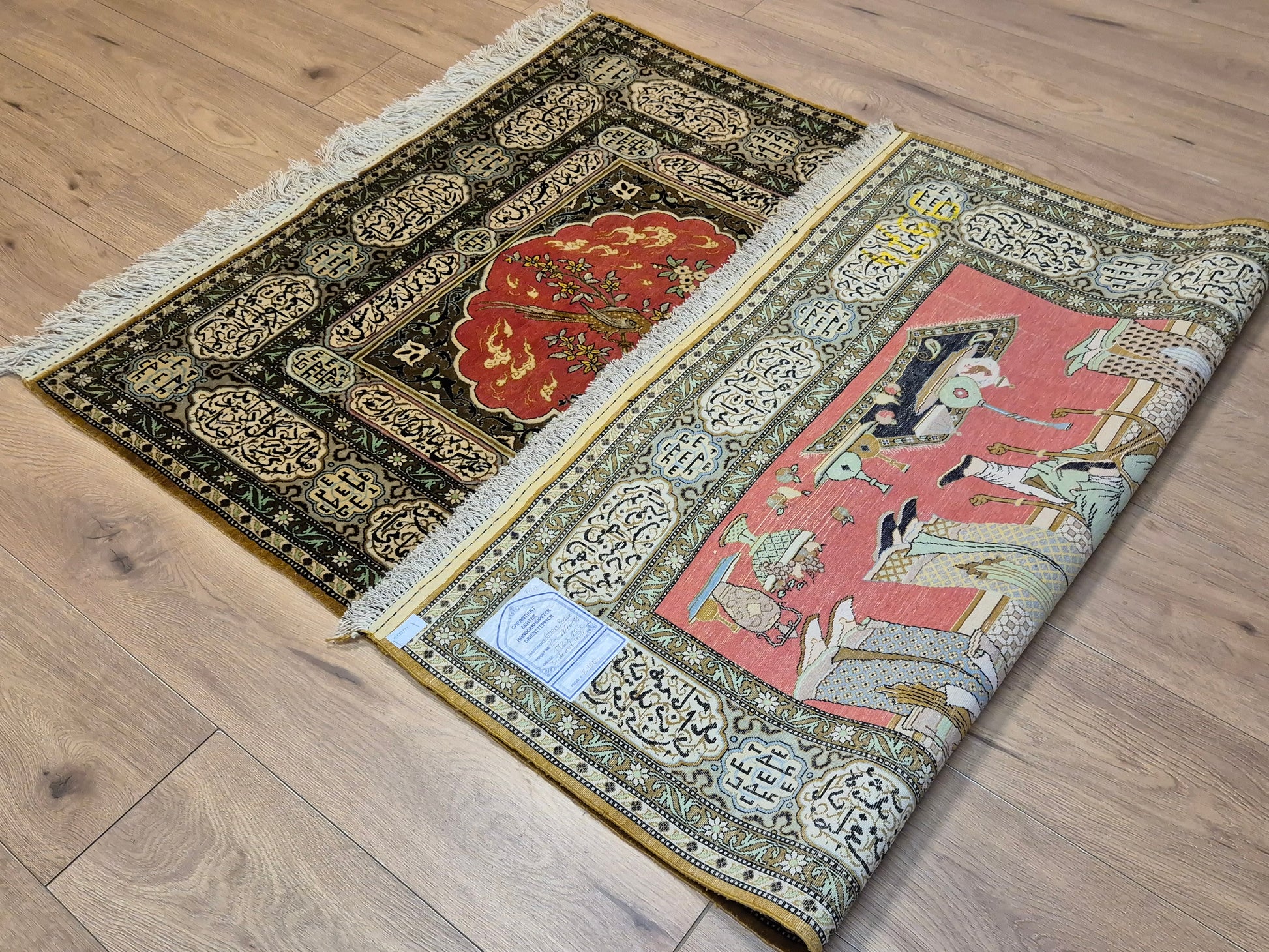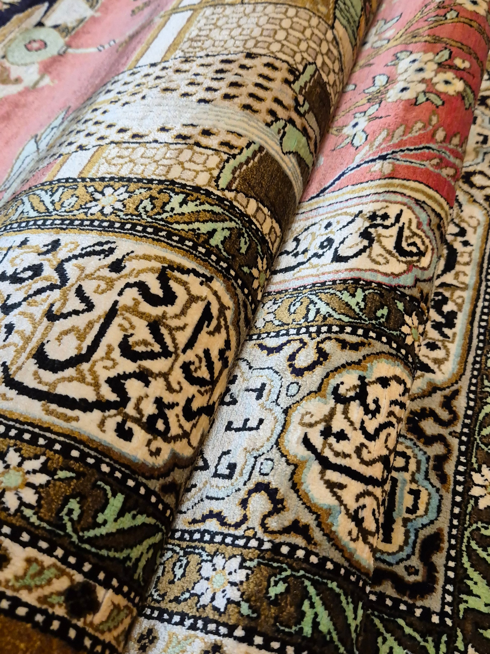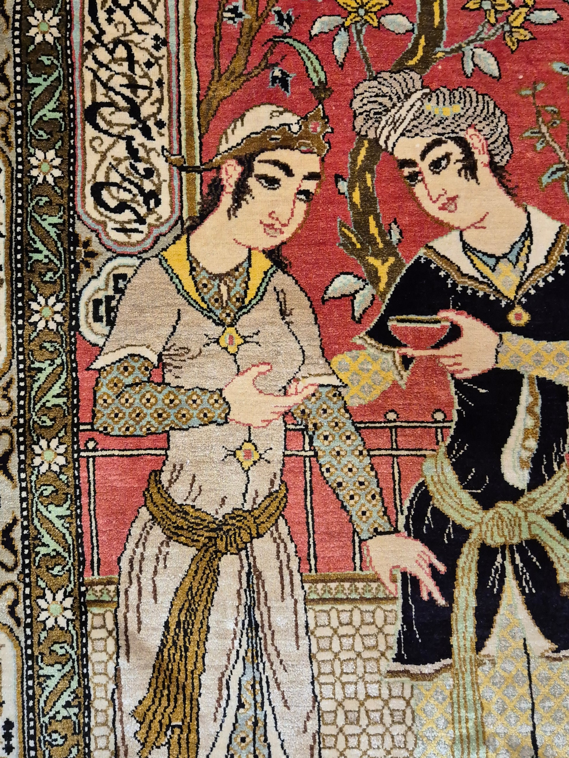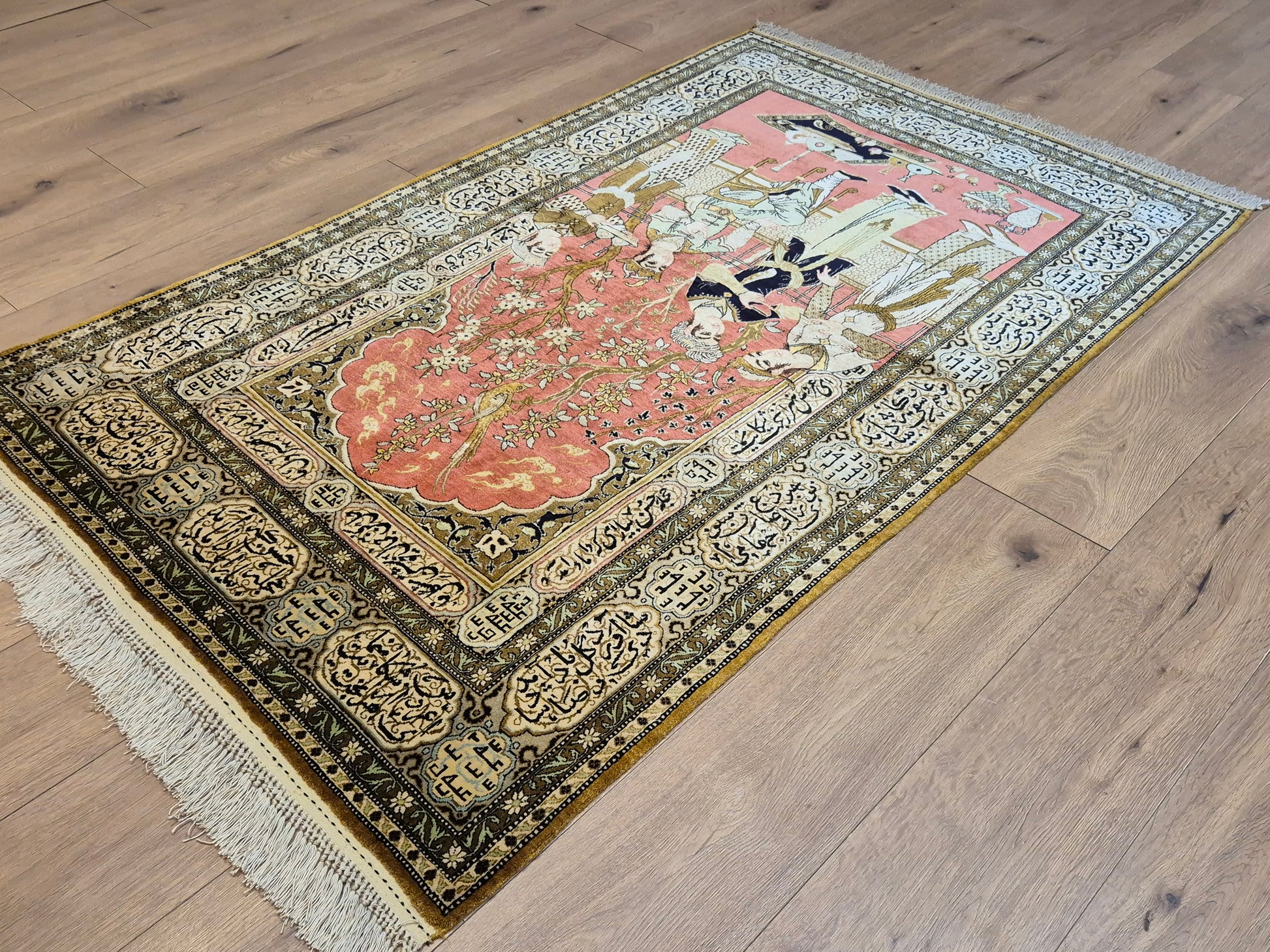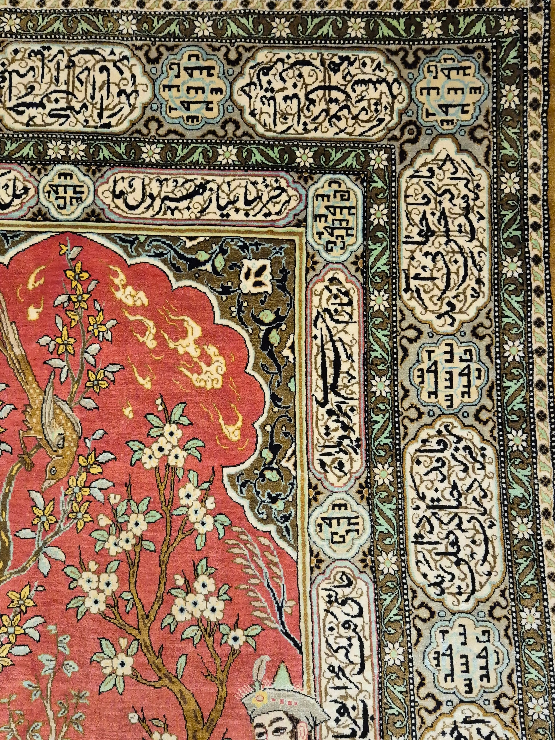Ghom Seide Teppich Seide auf Seide figürliche Szene feine Knüpfung