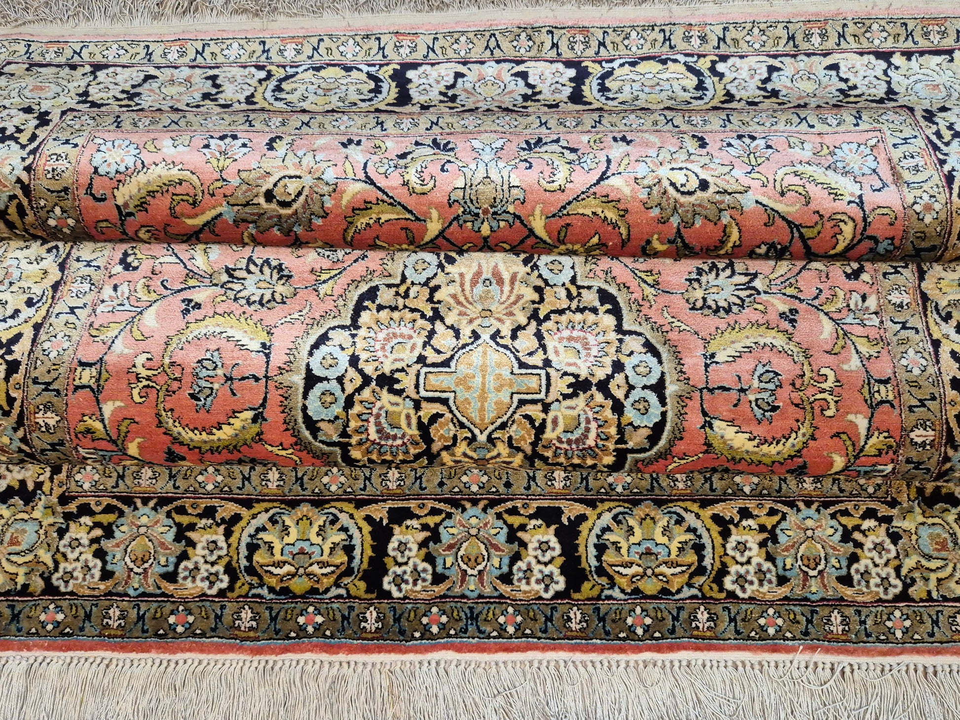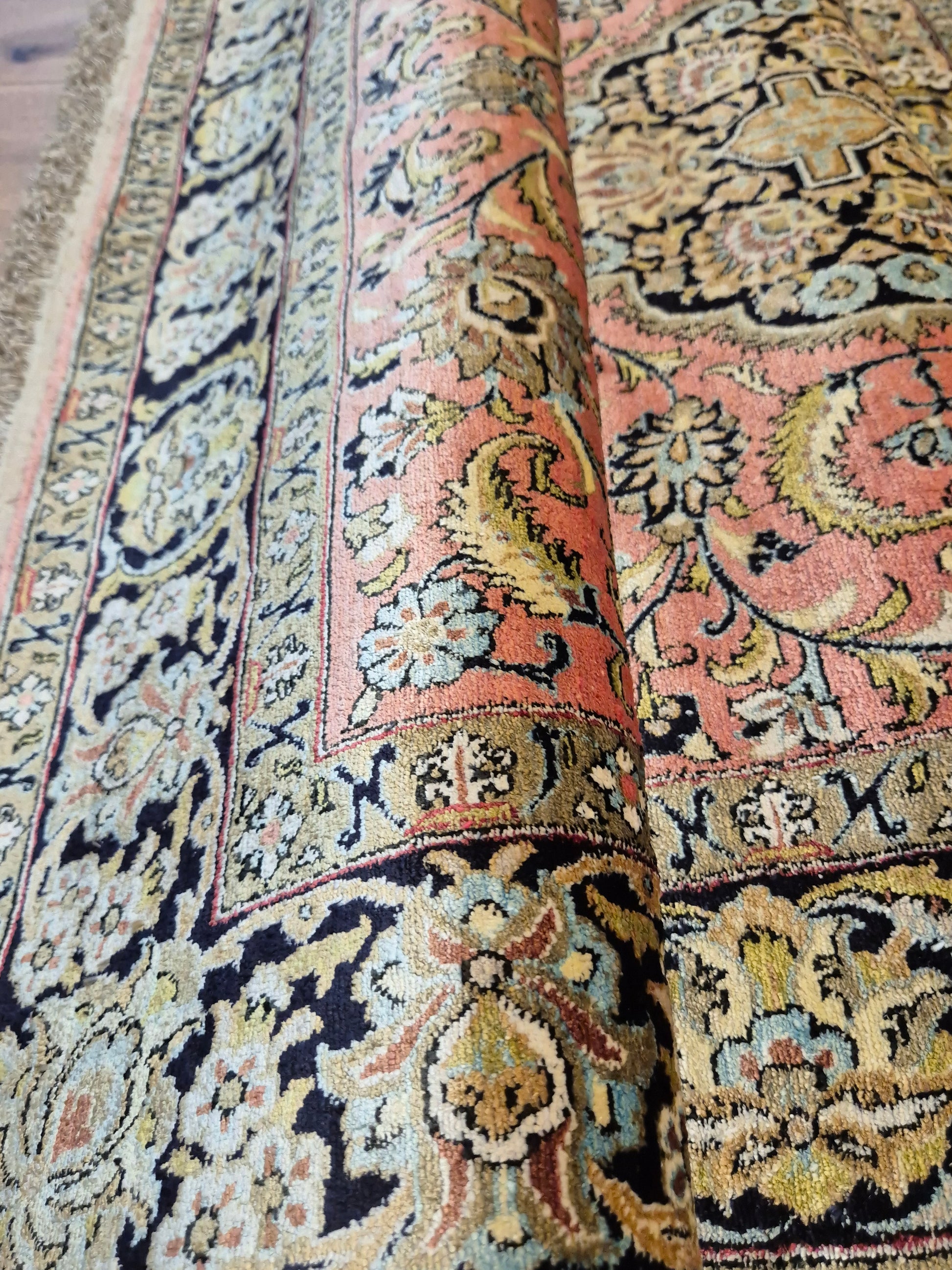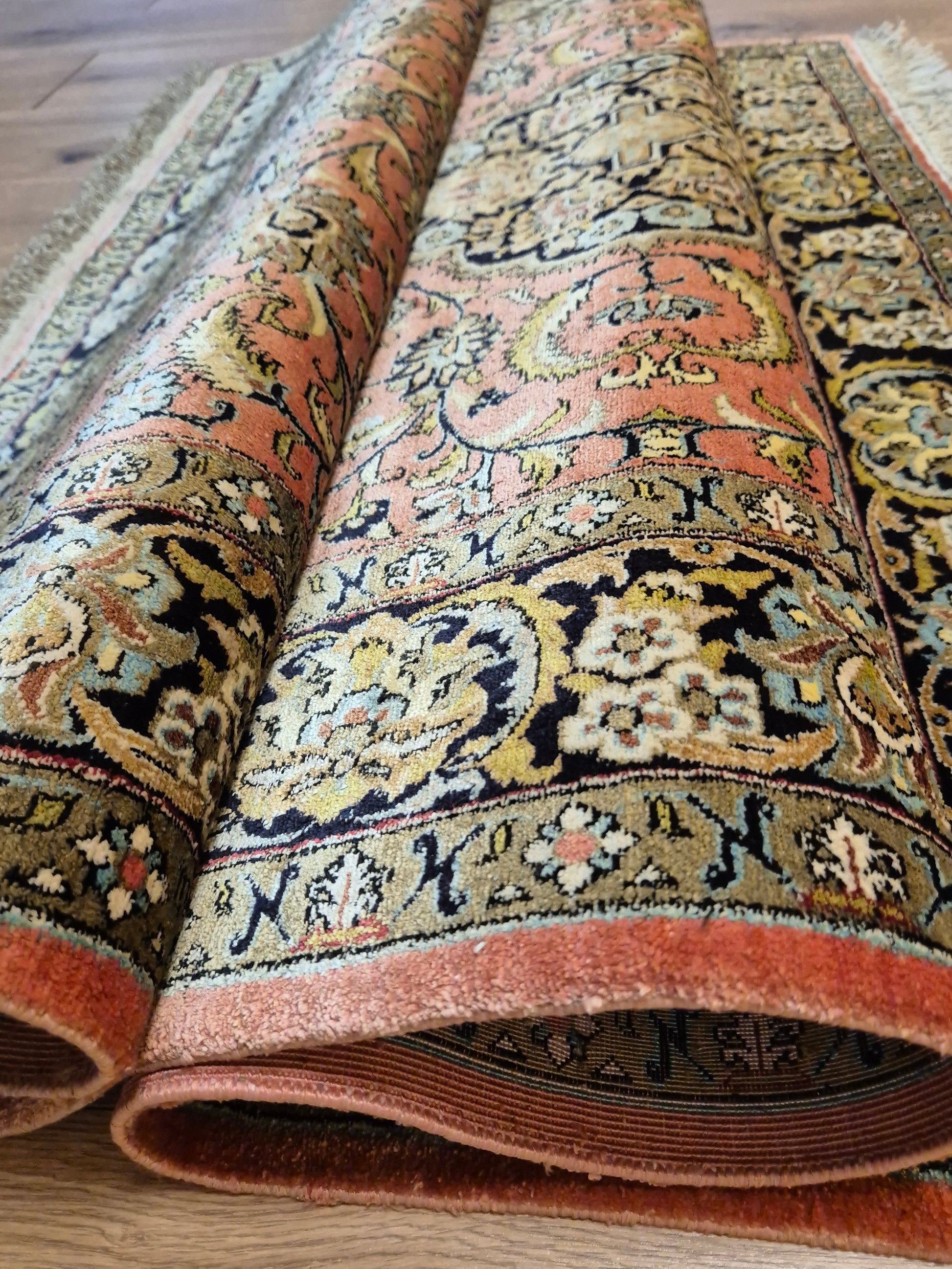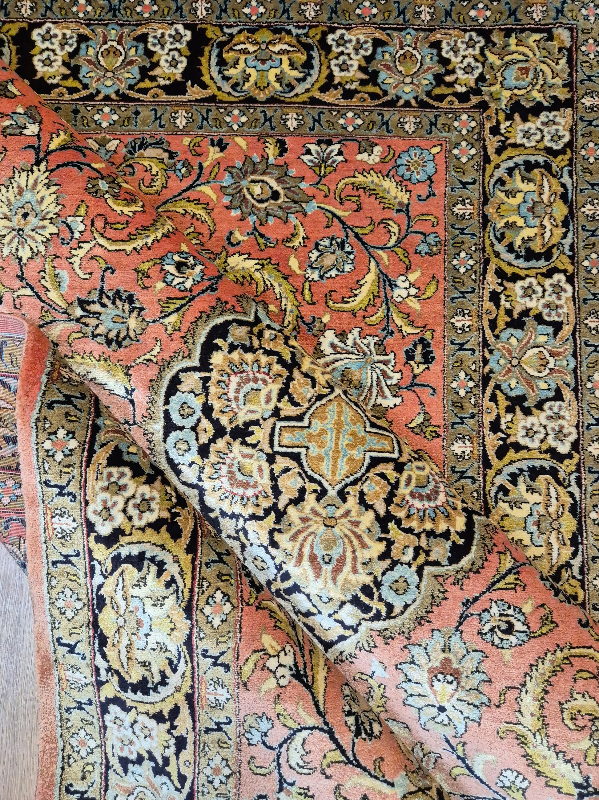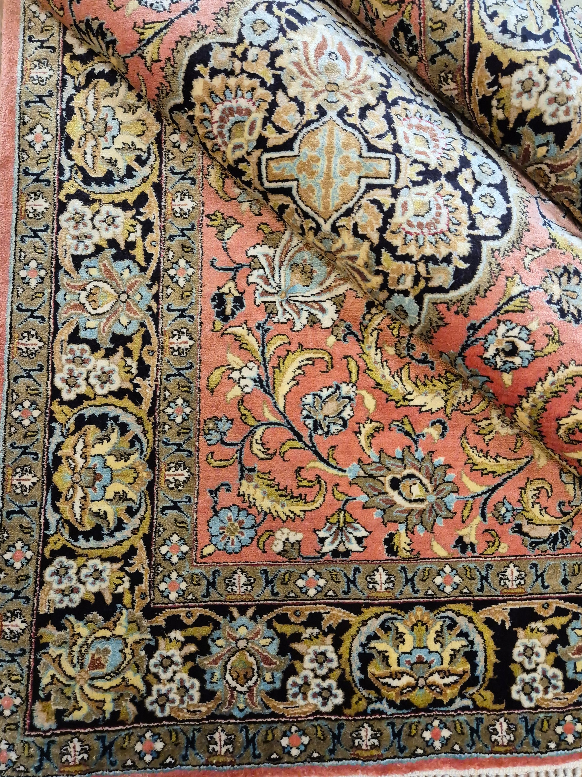 Ghom Seide Teppich Seide auf Seide florales Medaillon feine Knüpfung