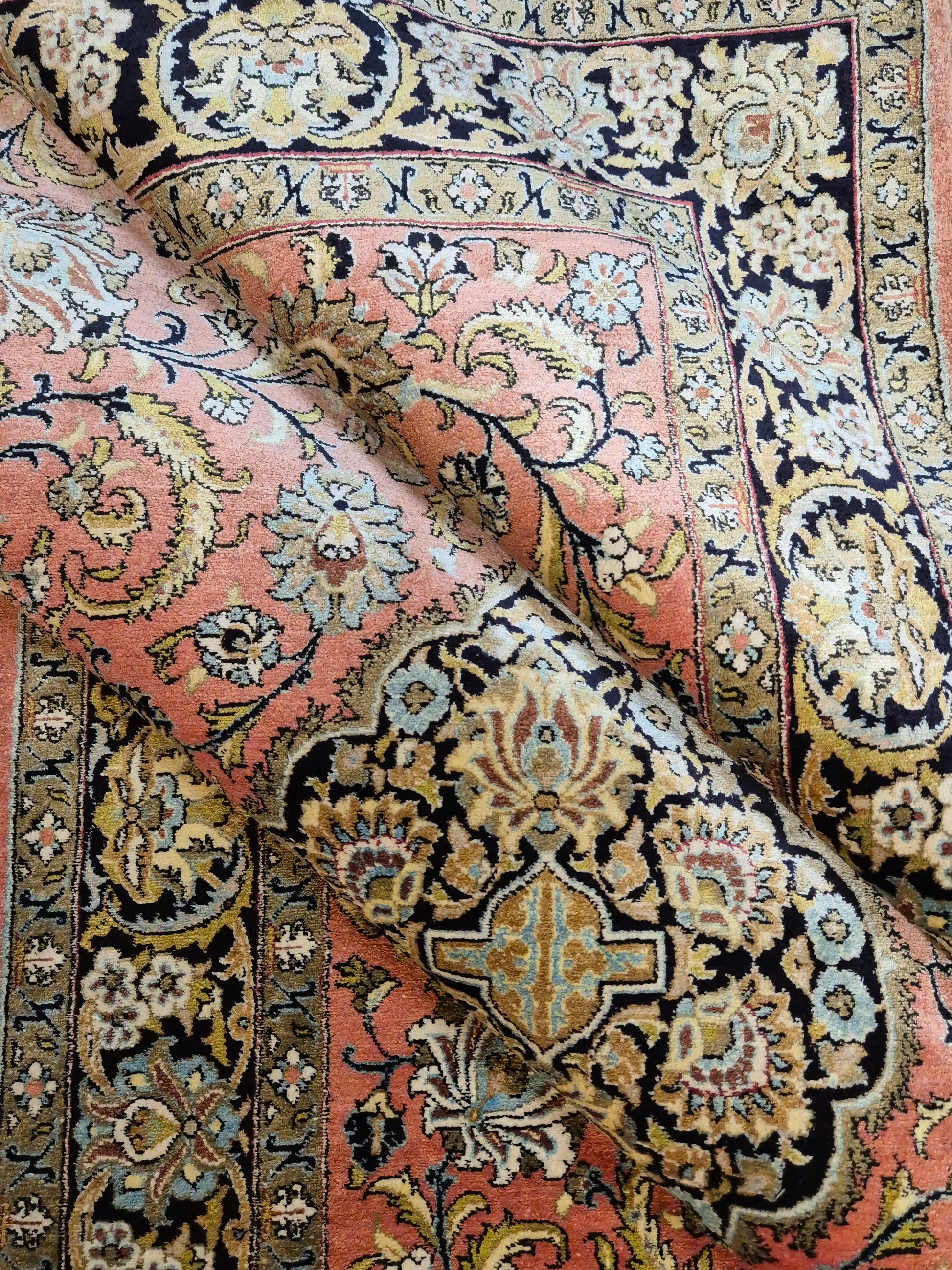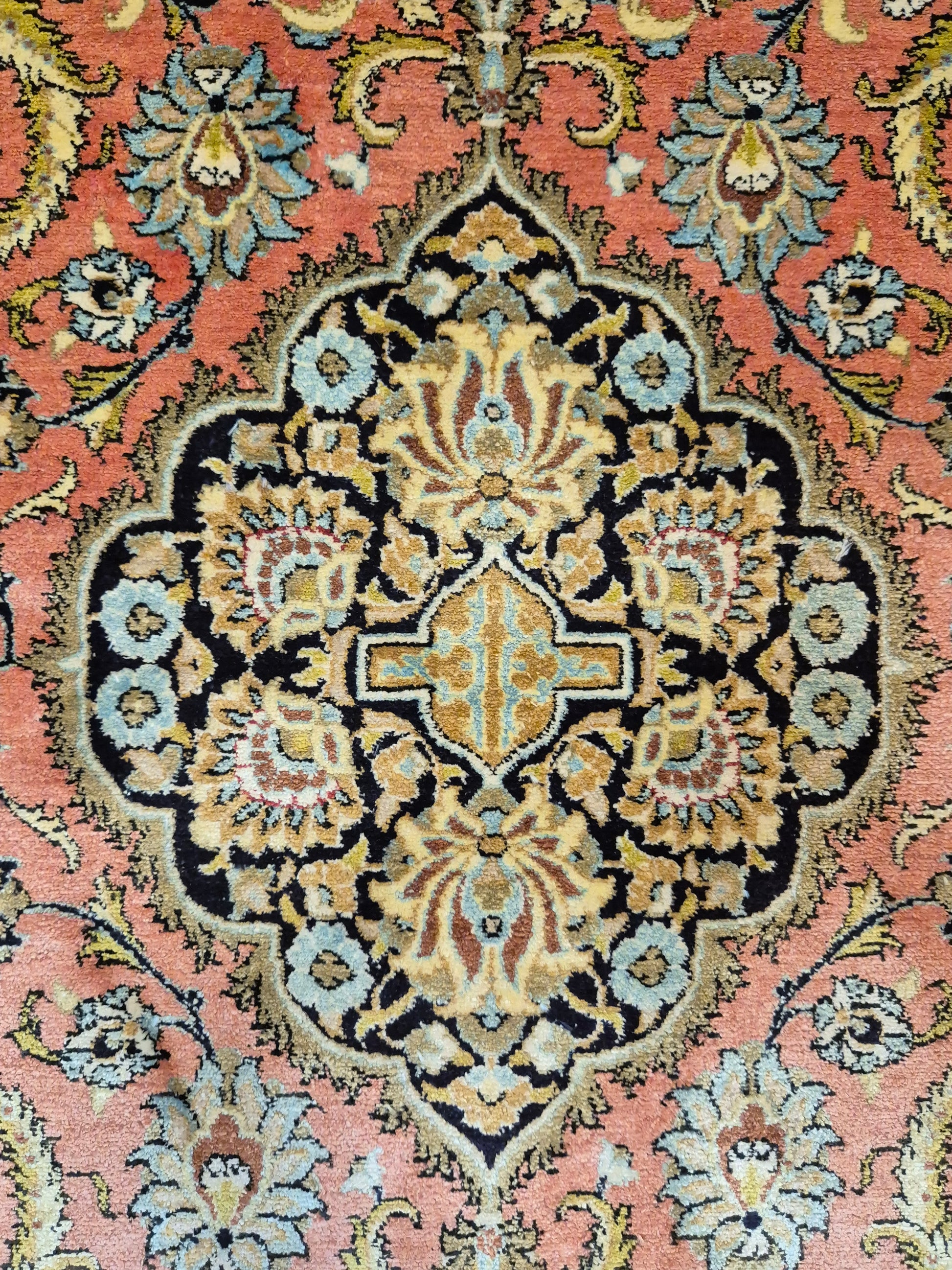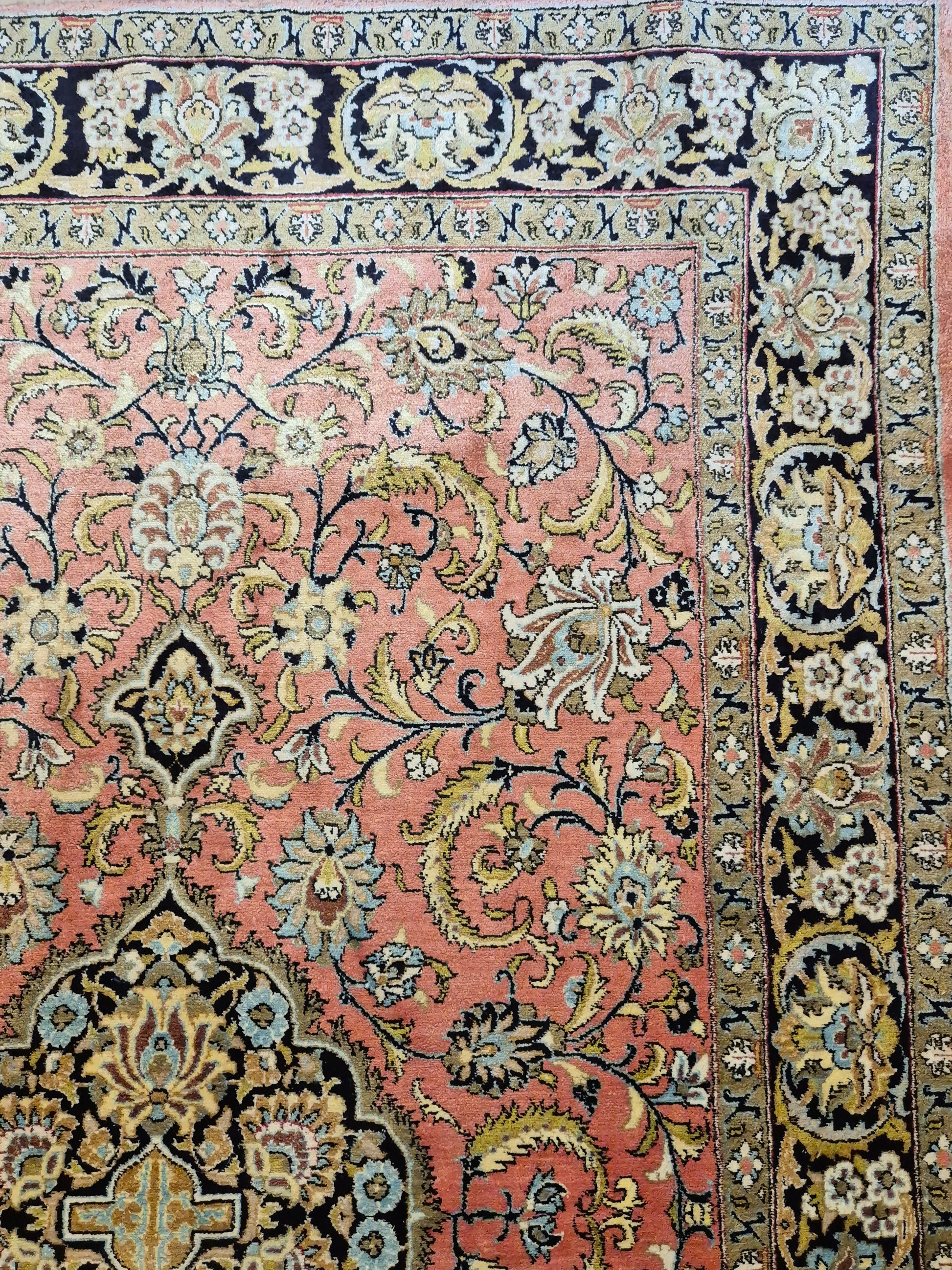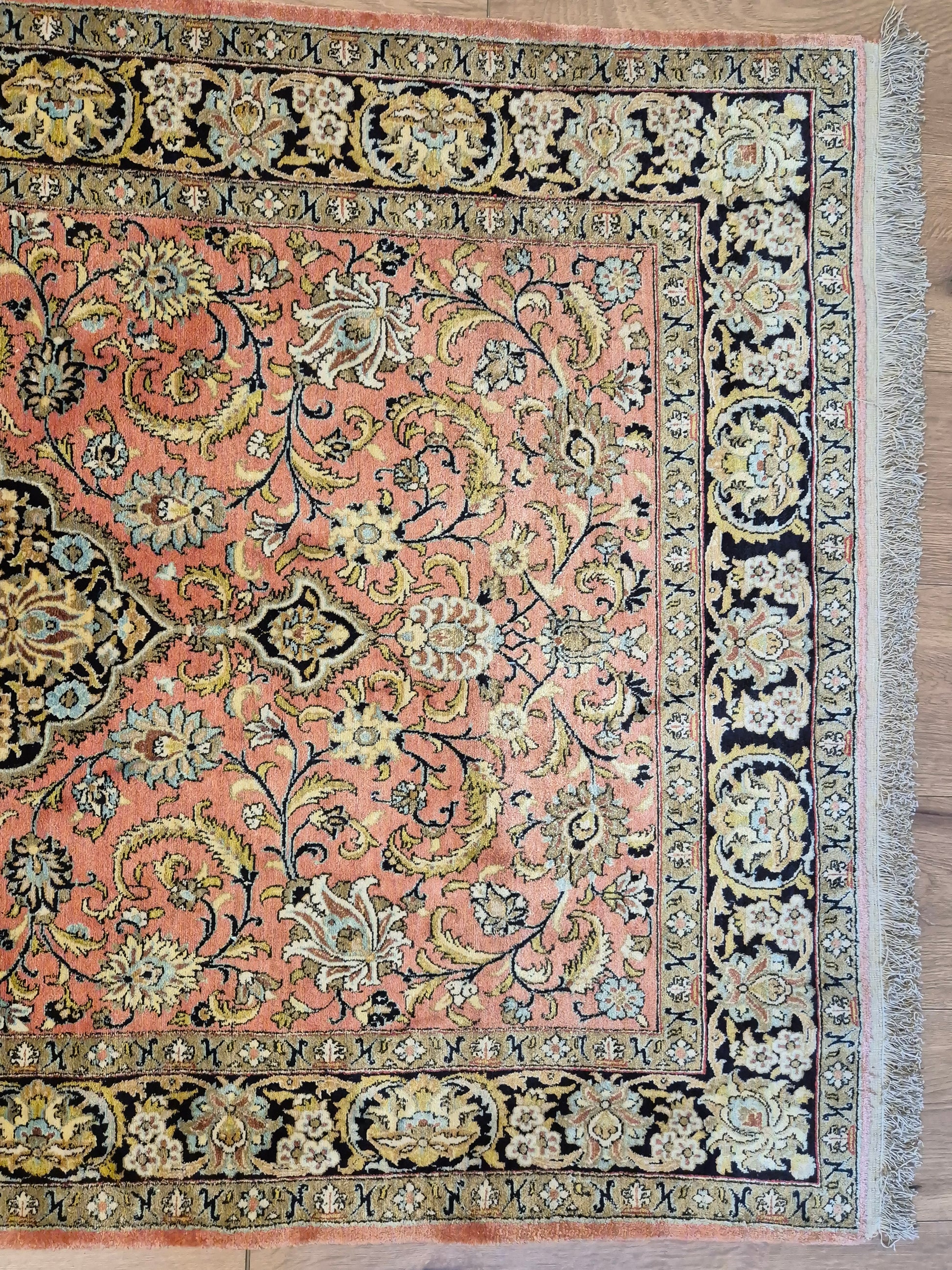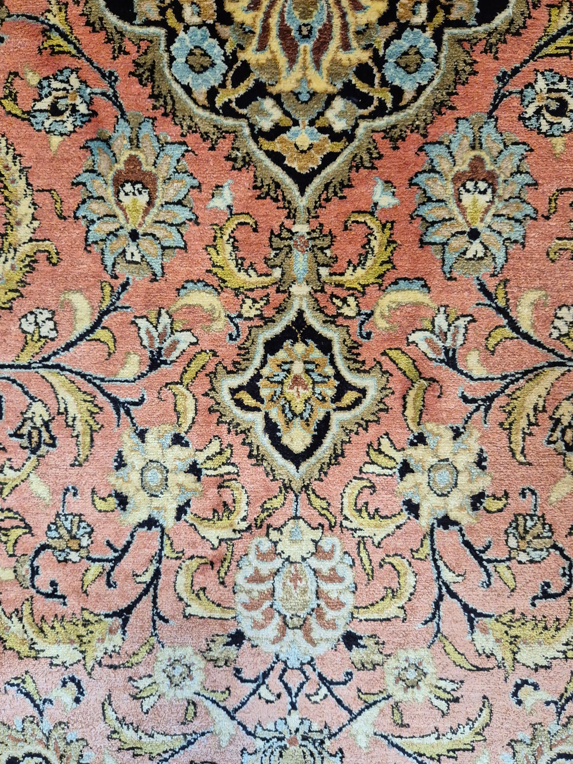 Ghom Seide Teppich Seide auf Seide florales Medaillon feine Knüpfung