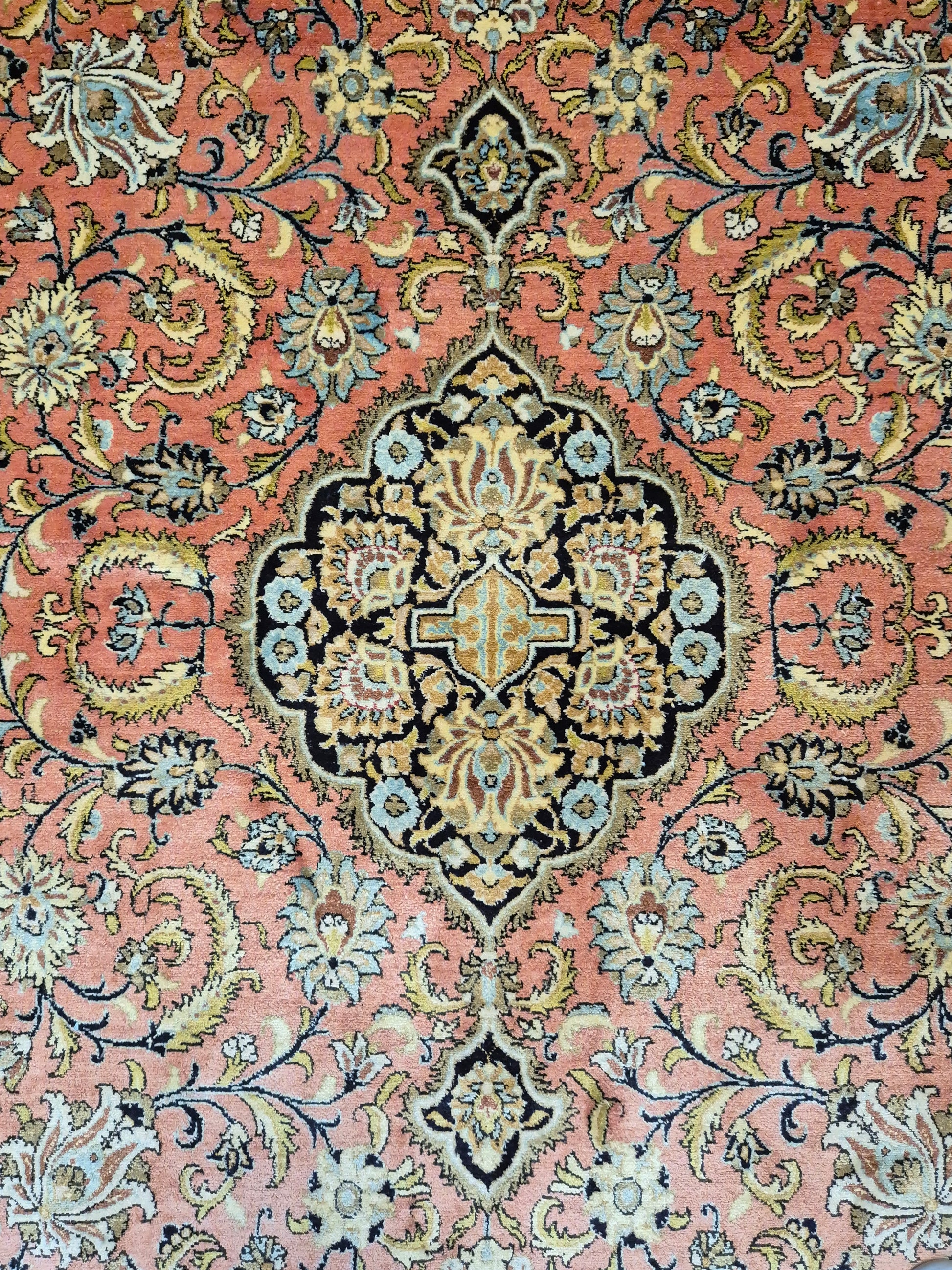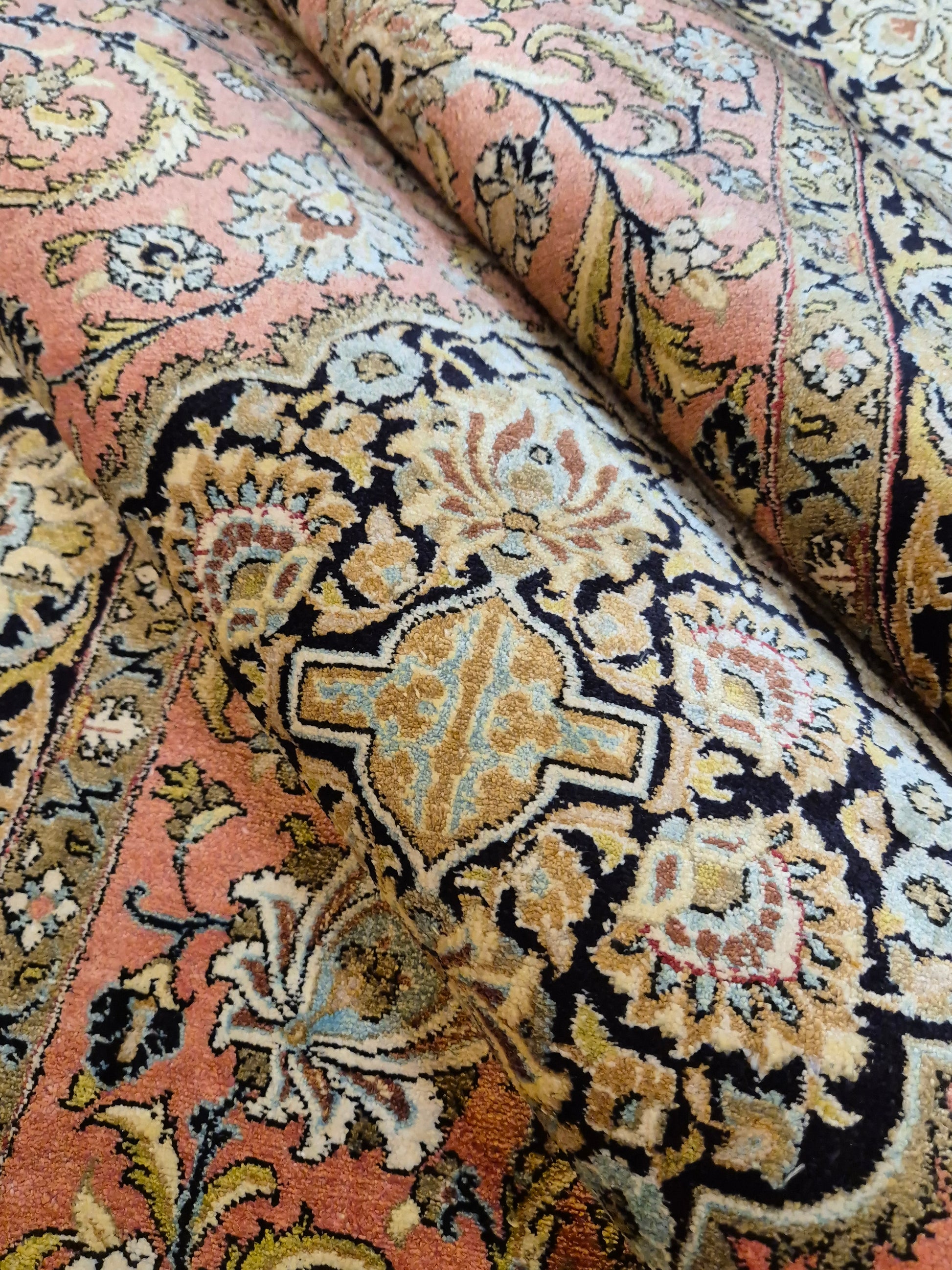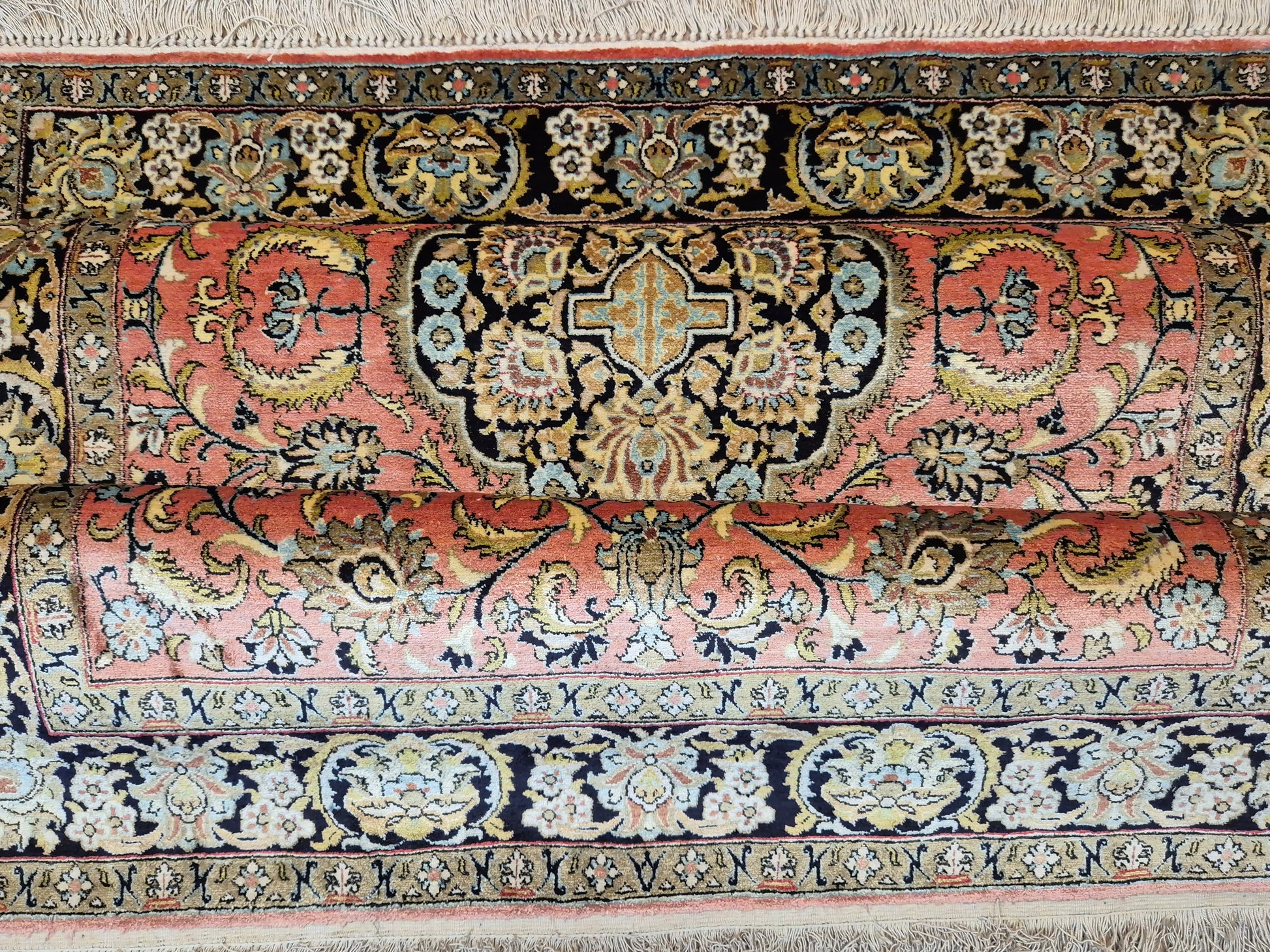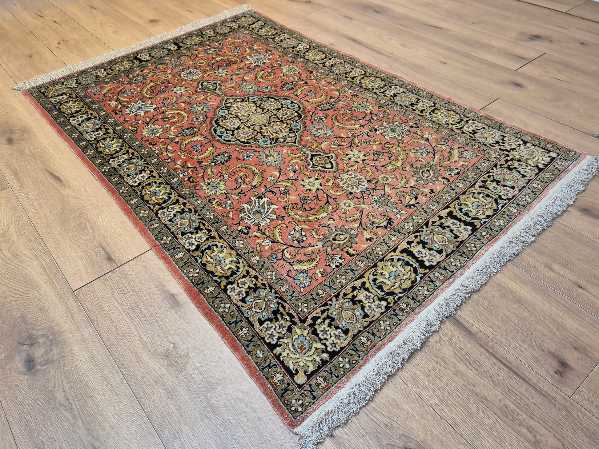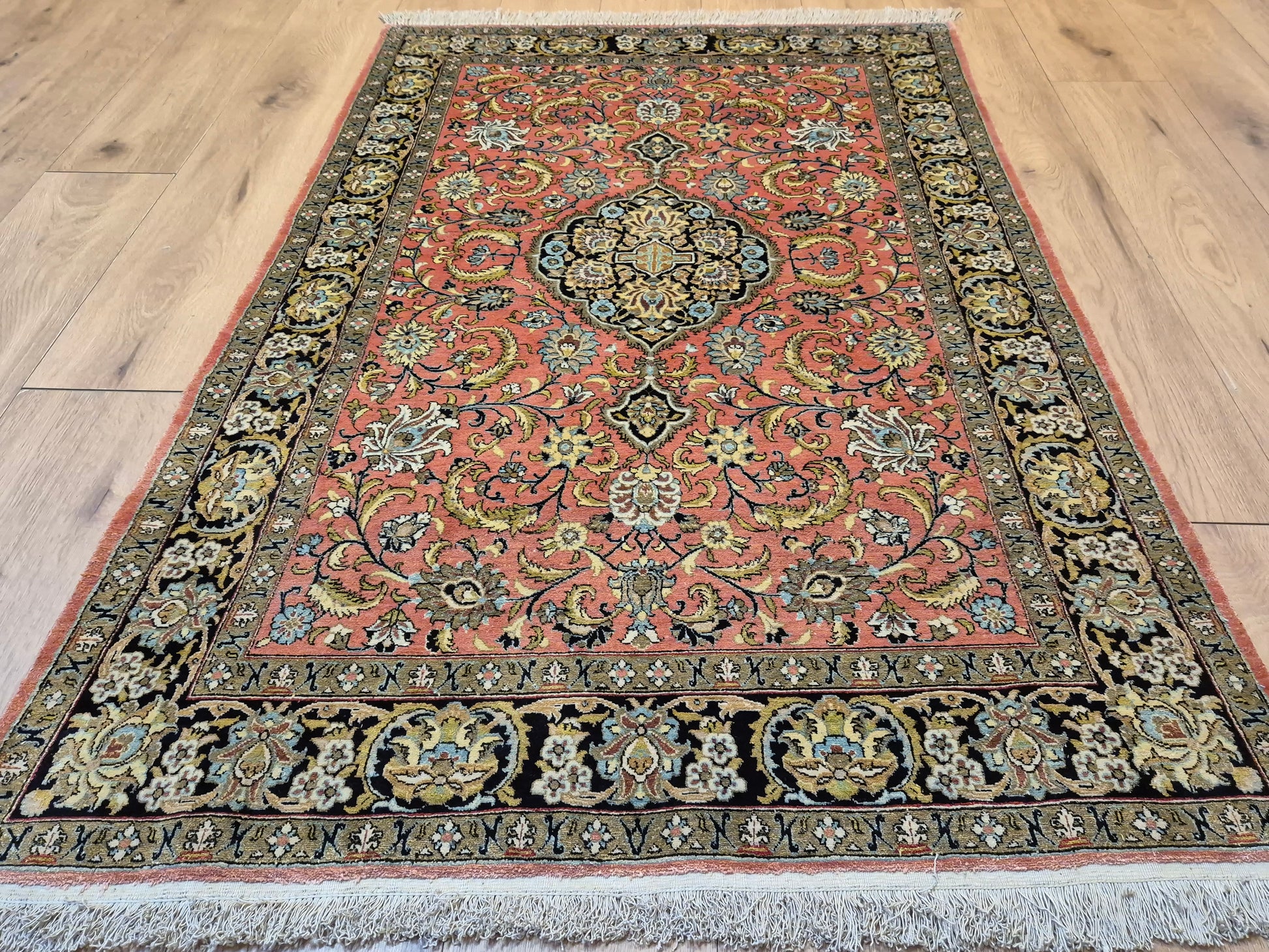 Ghom Seide Teppich Seide auf Seide florales Medaillon feine Knüpfung
