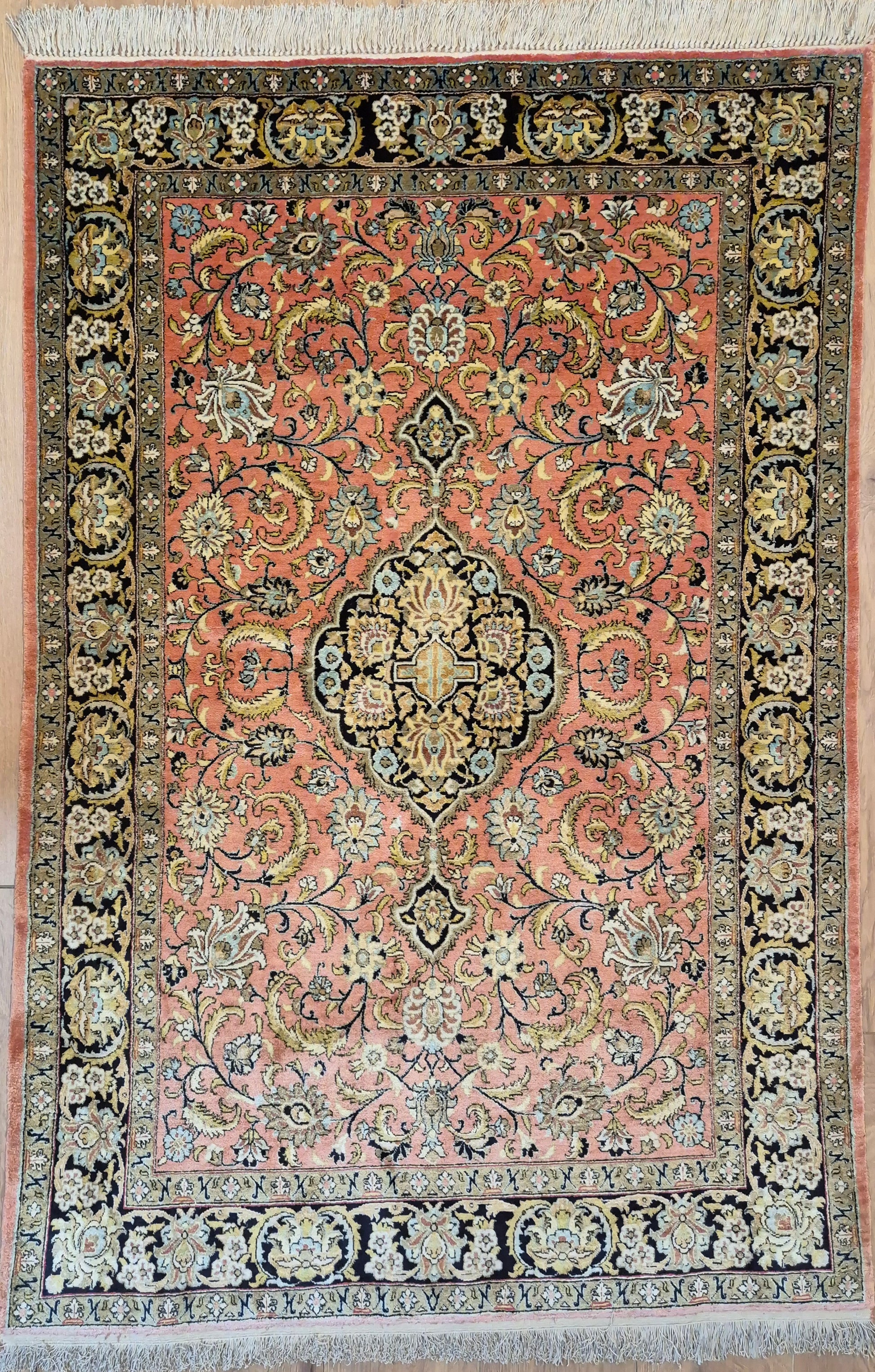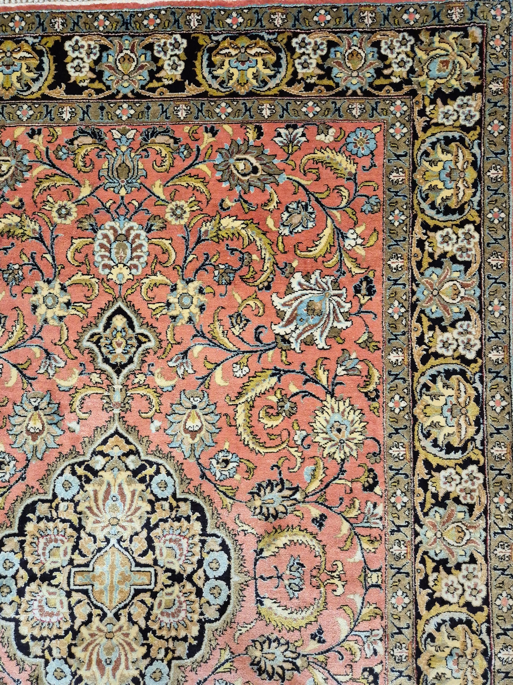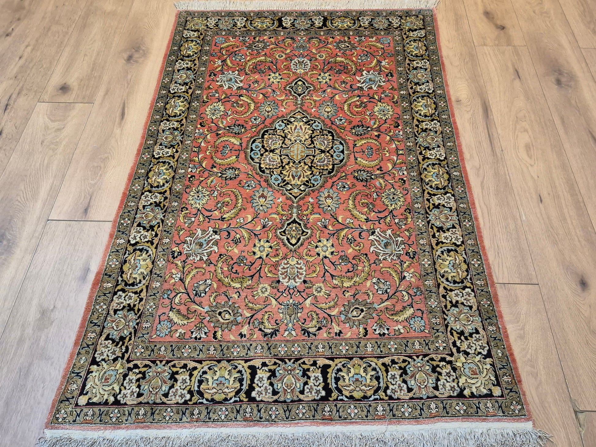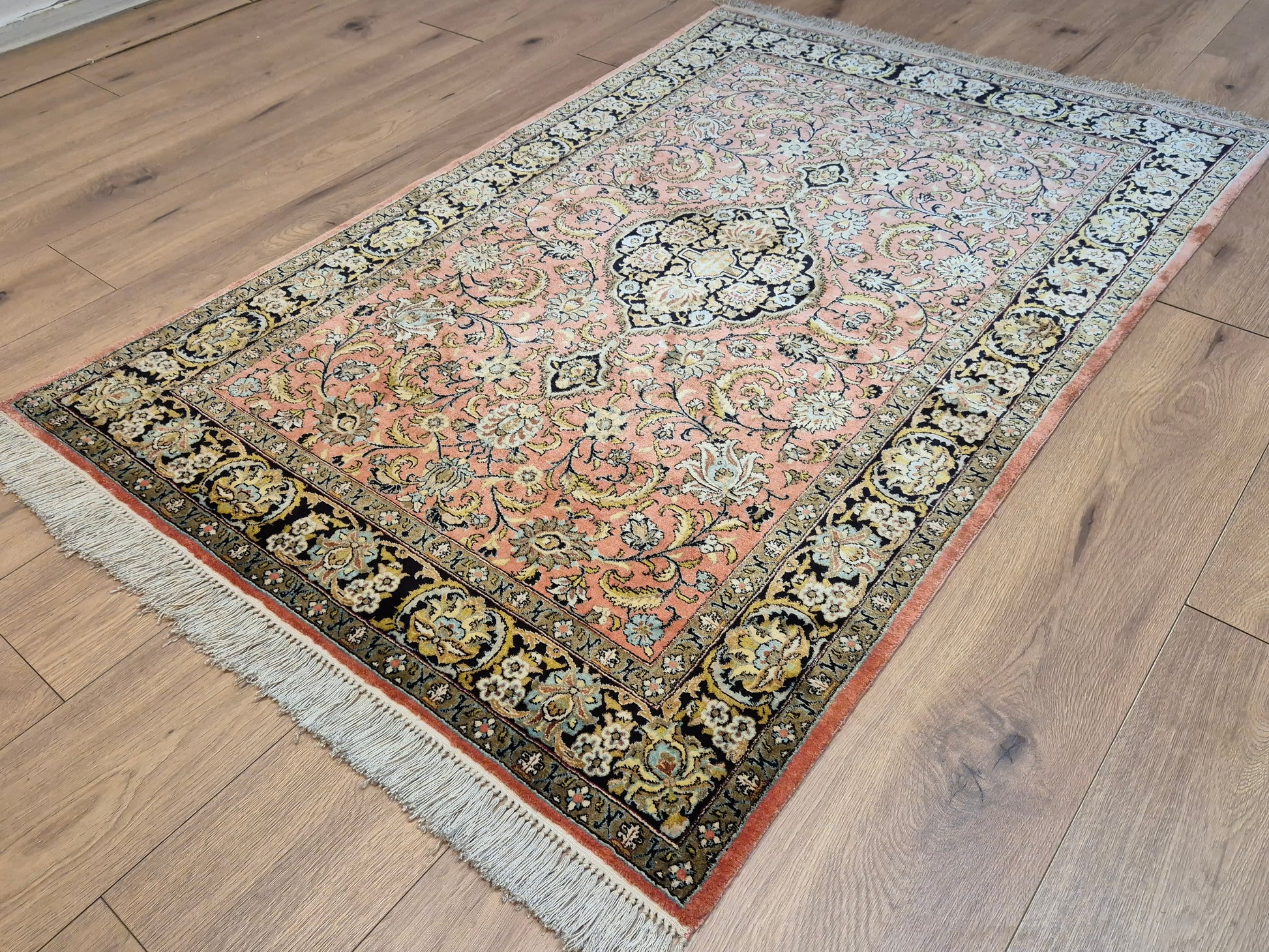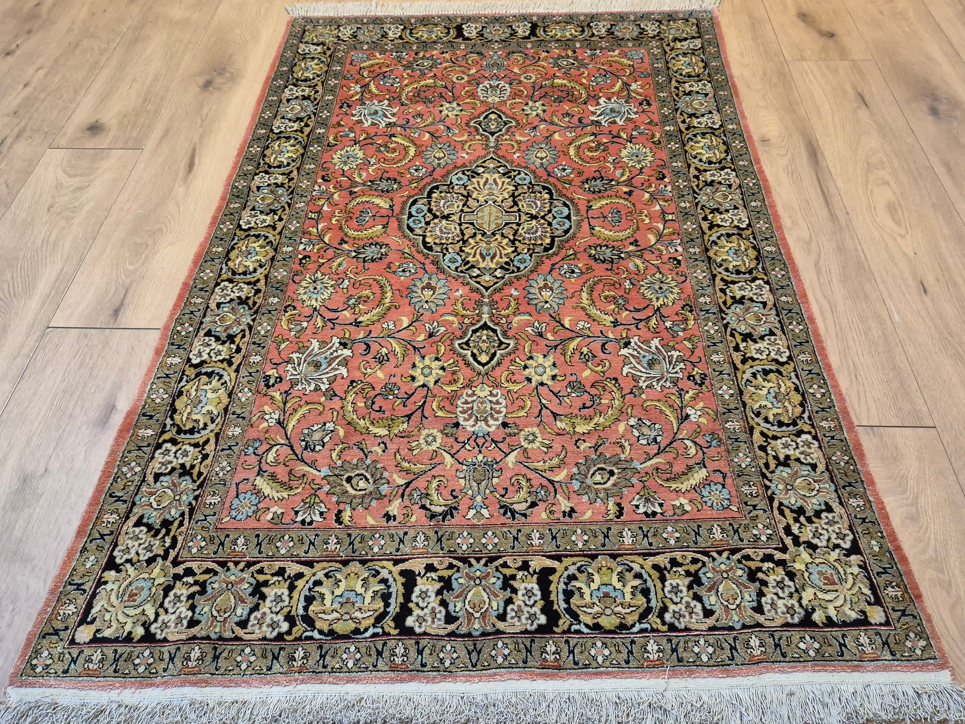 Ghom Seide Teppich Seide auf Seide florales Medaillon feine Knüpfung