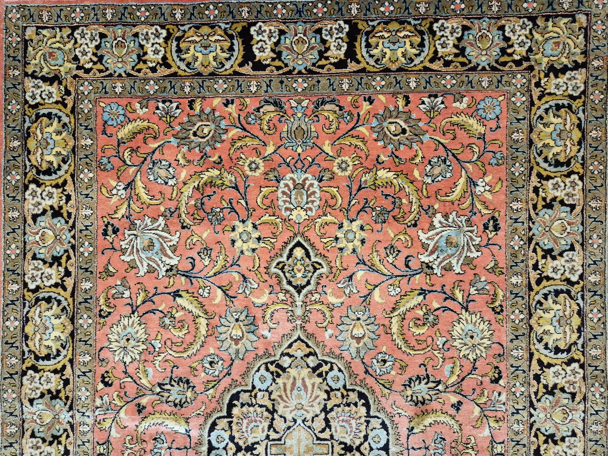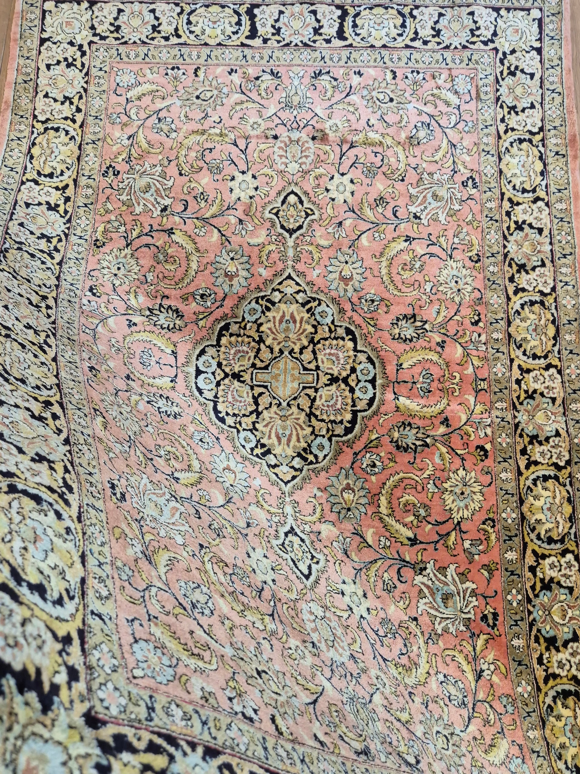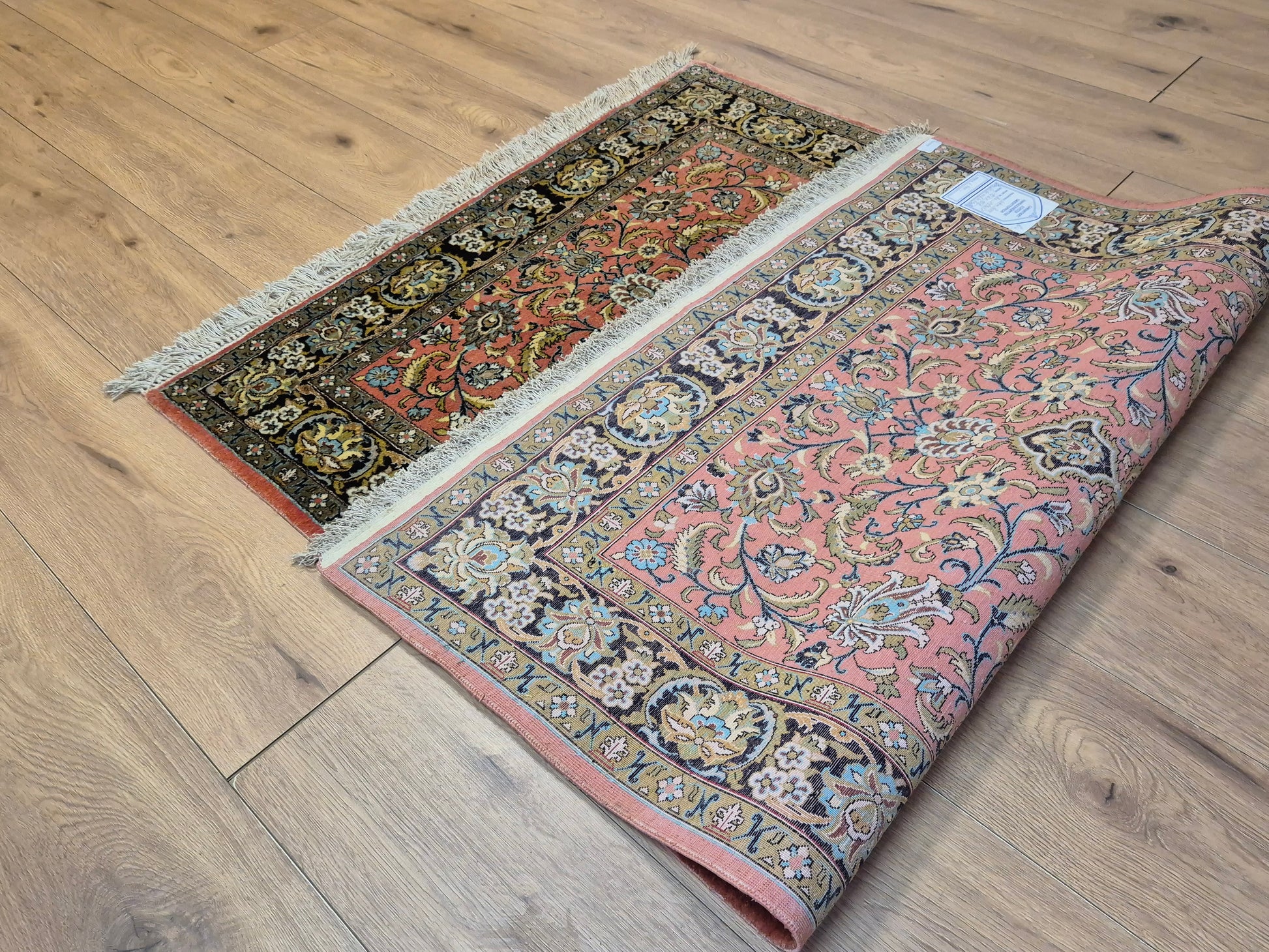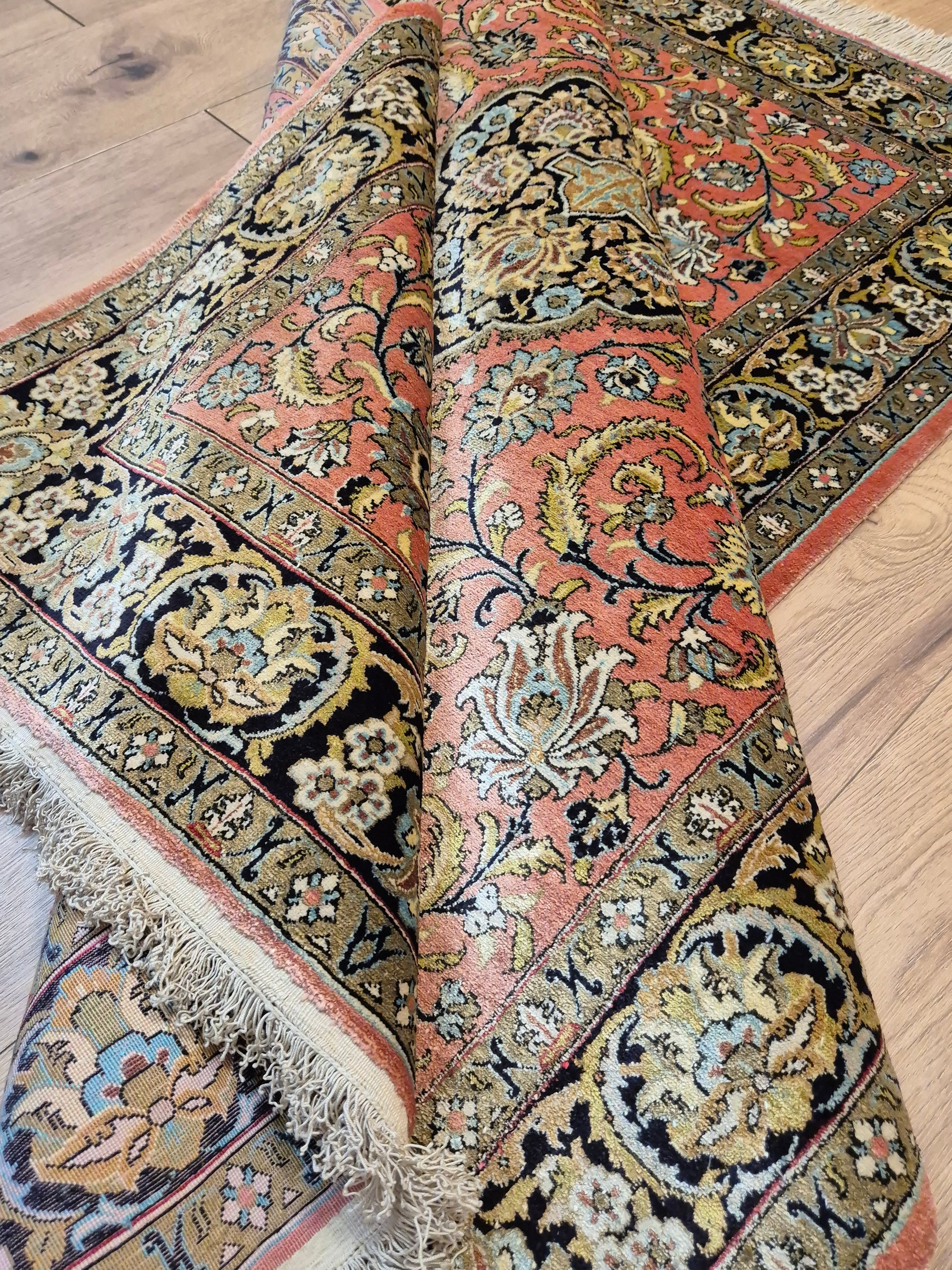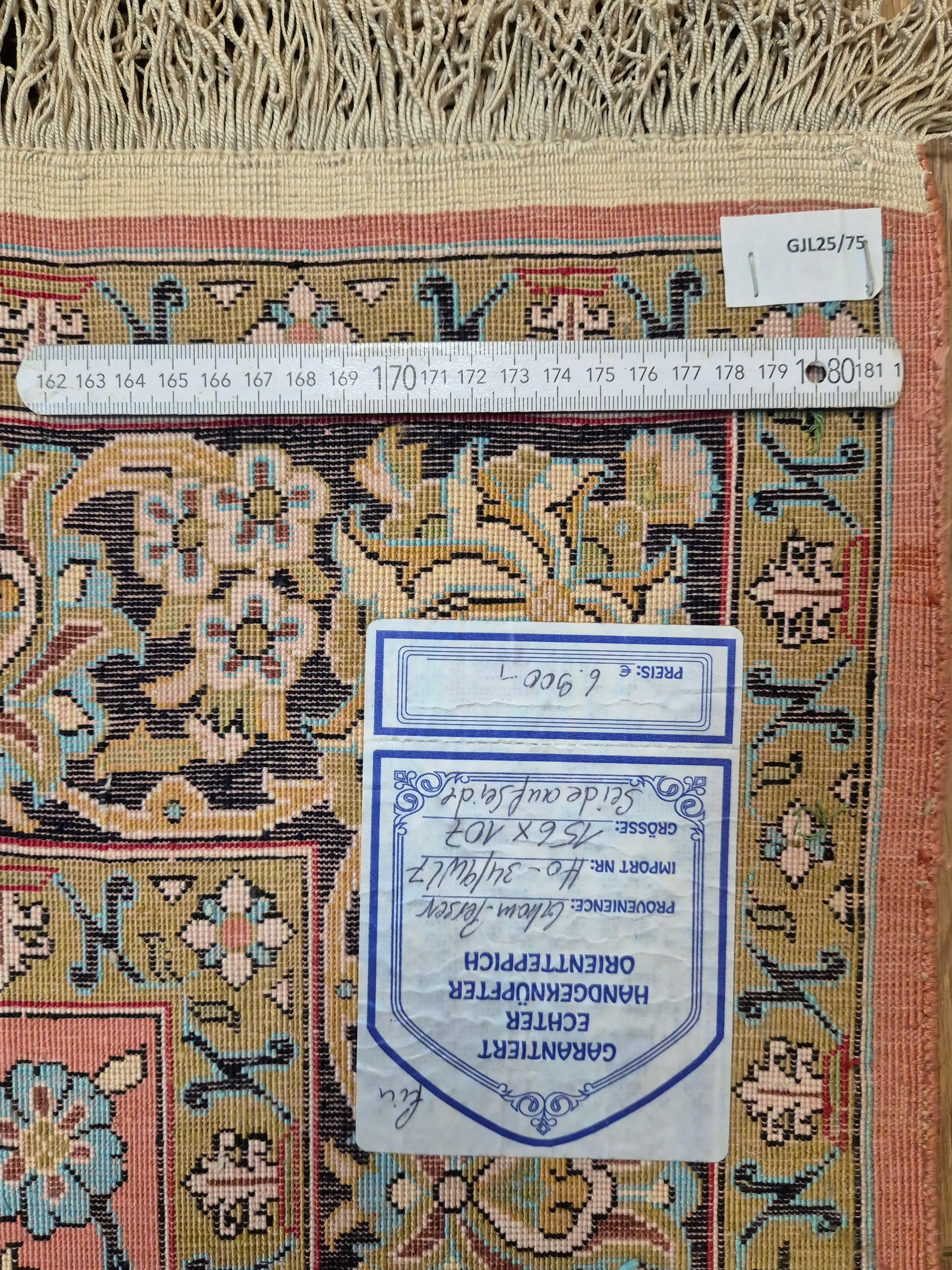 Ghom Seide Teppich Seide auf Seide florales Medaillon feine Knüpfung