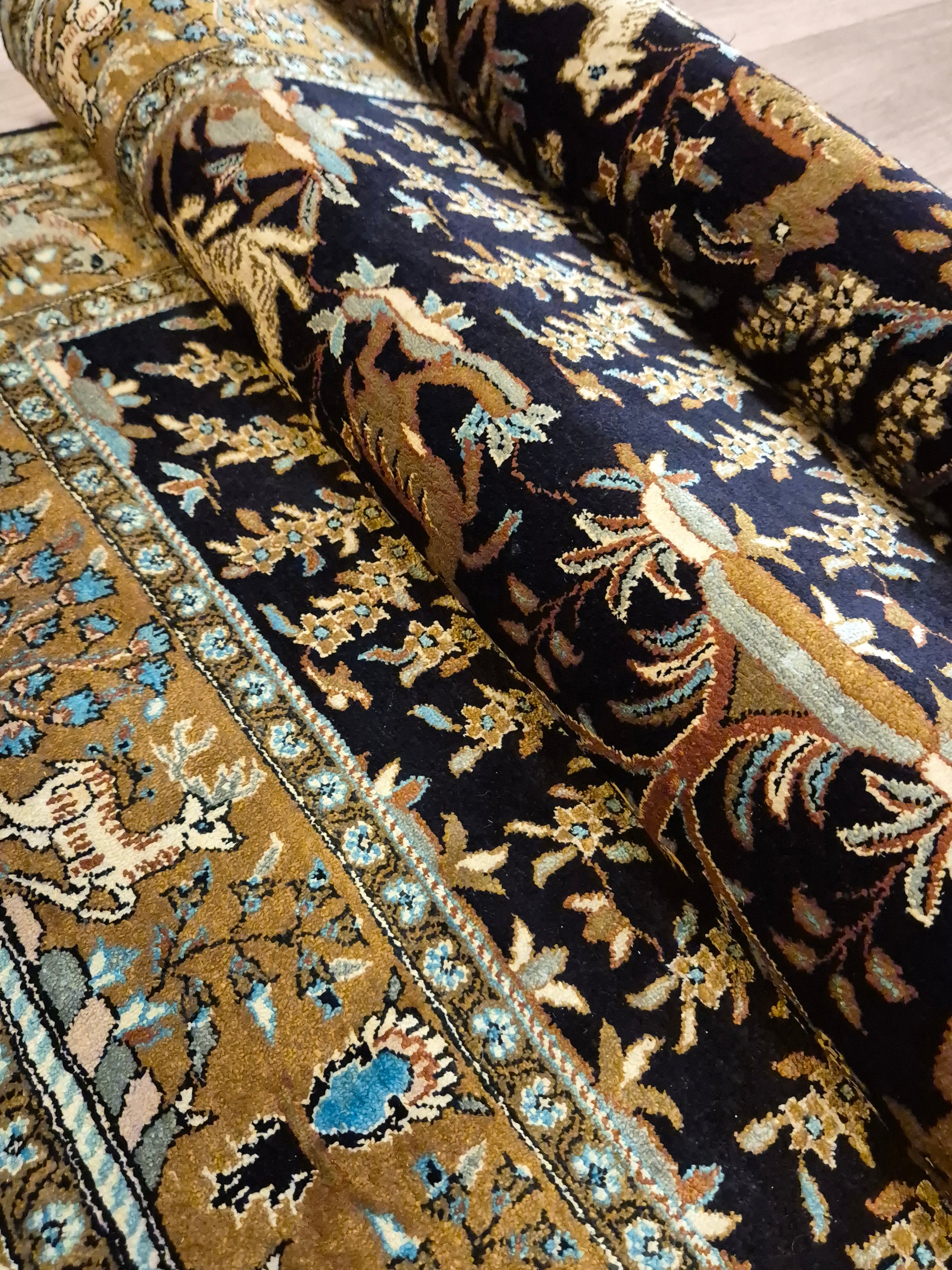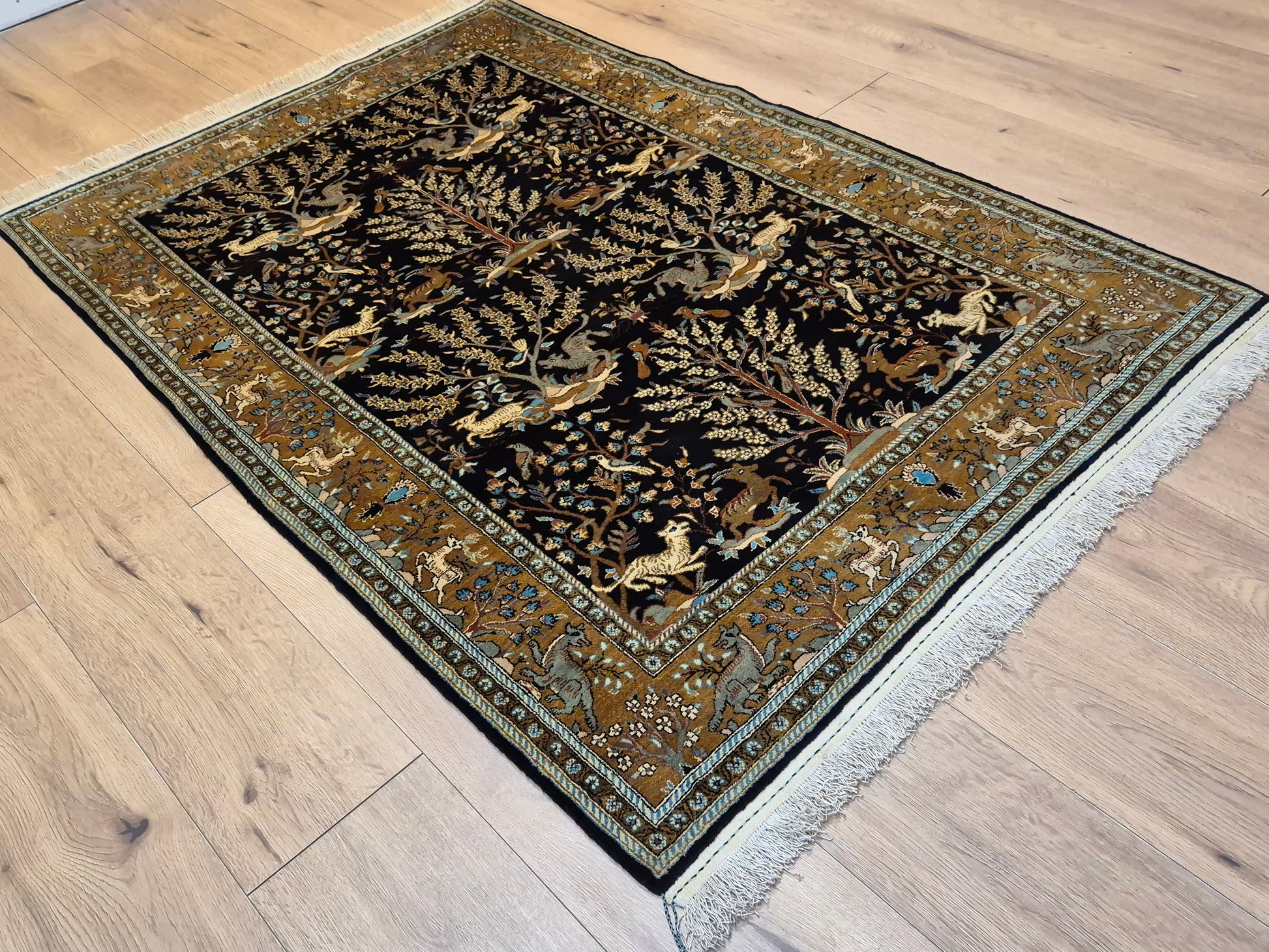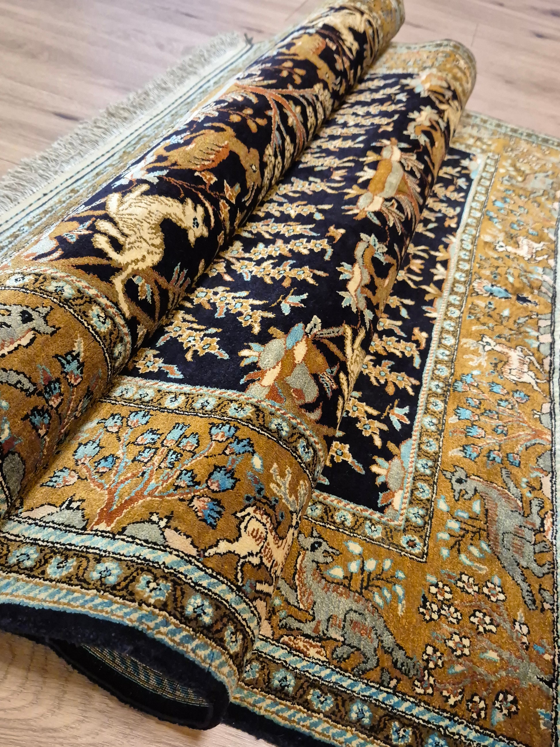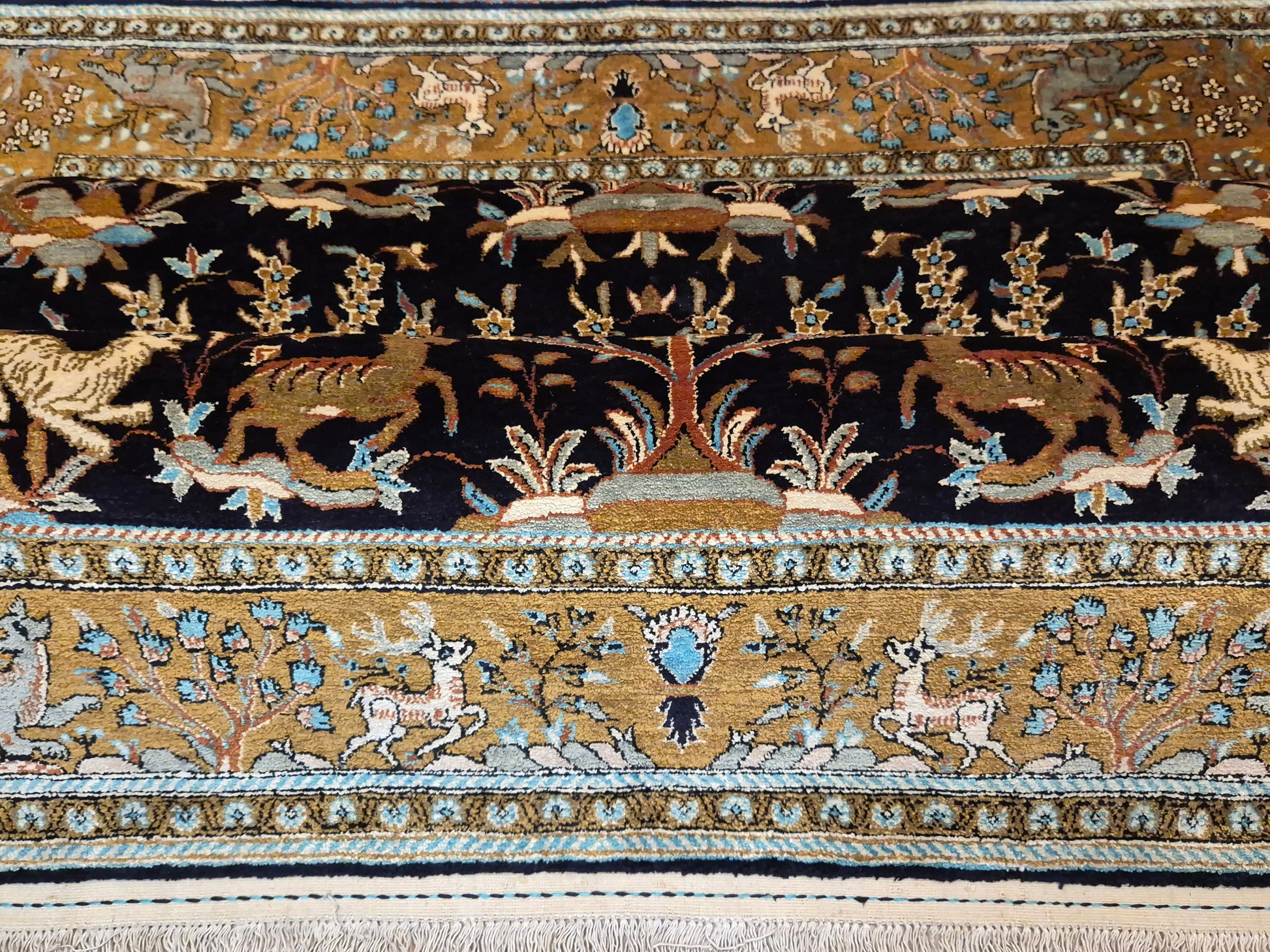 Ghom Seide Teppich Seide auf Seide Jagdmotiv feine Knüpfung