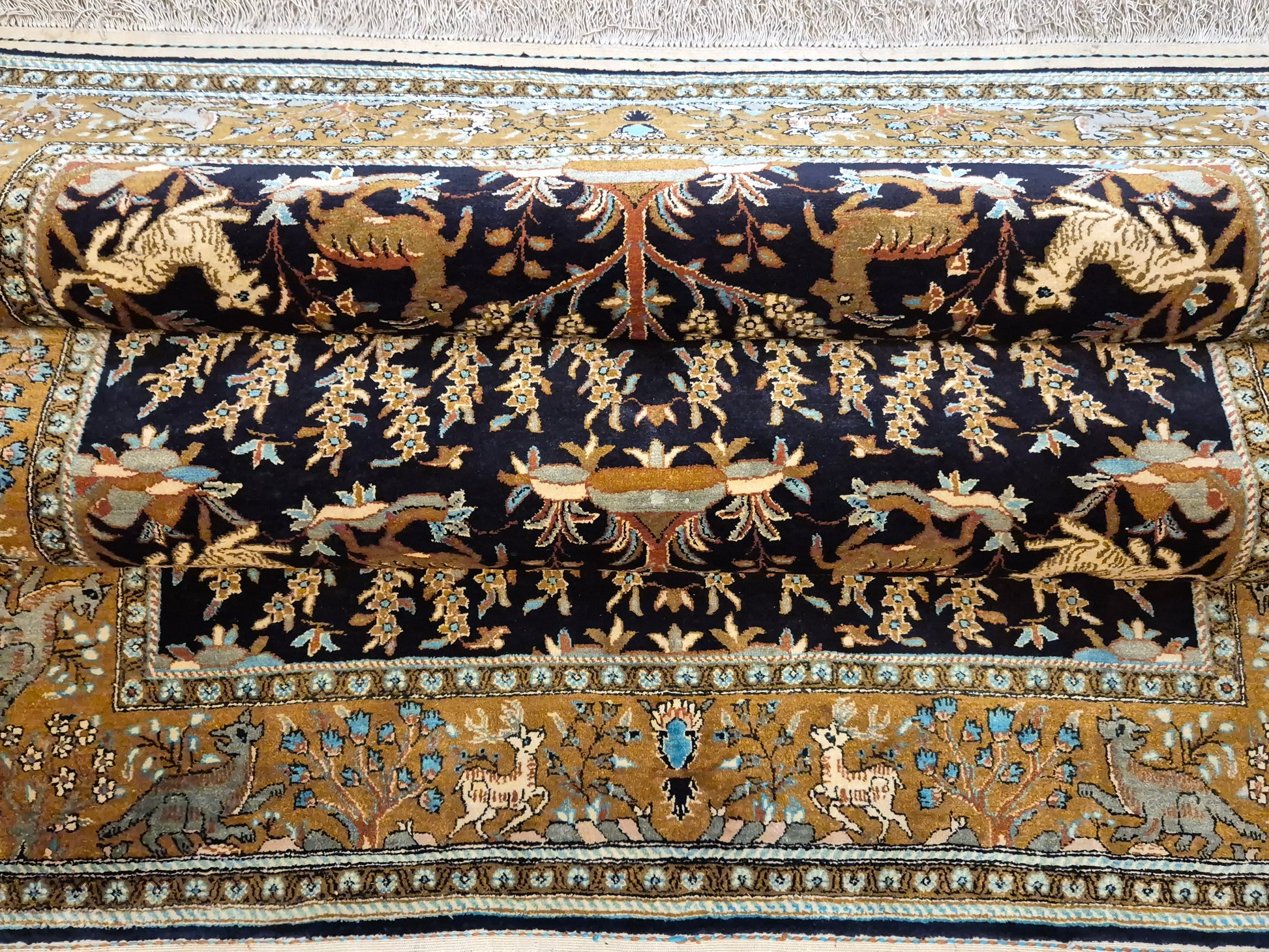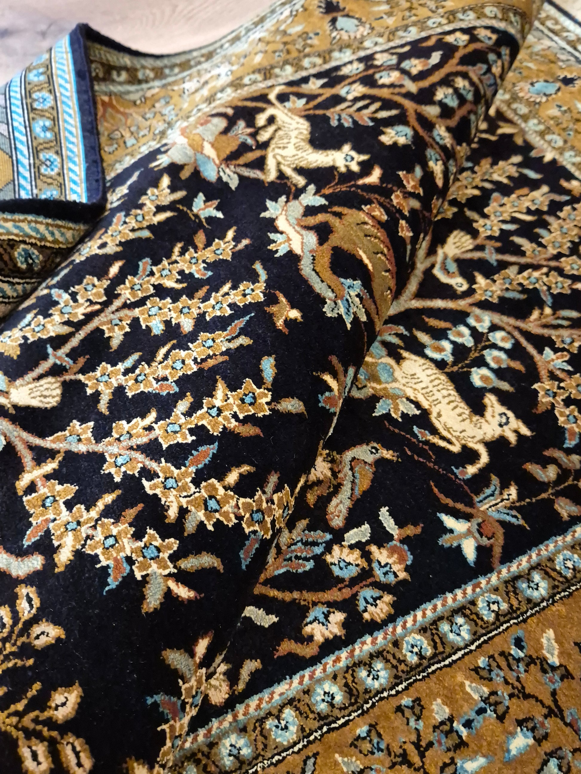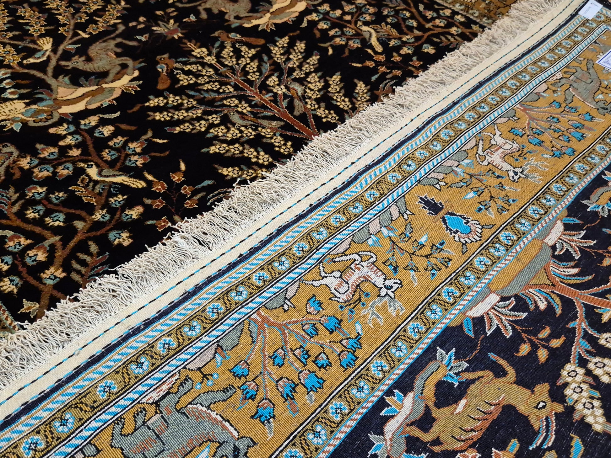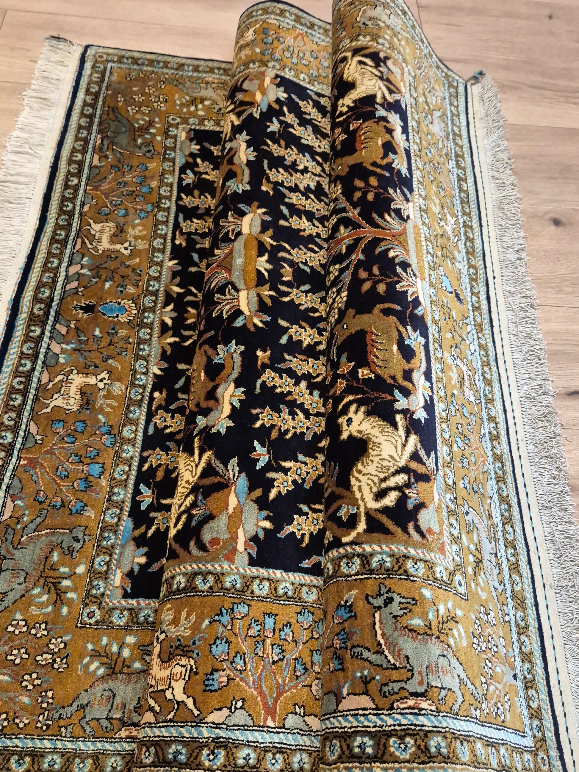 Ghom Seide Teppich Seide auf Seide Jagdmotiv feine Knüpfung
