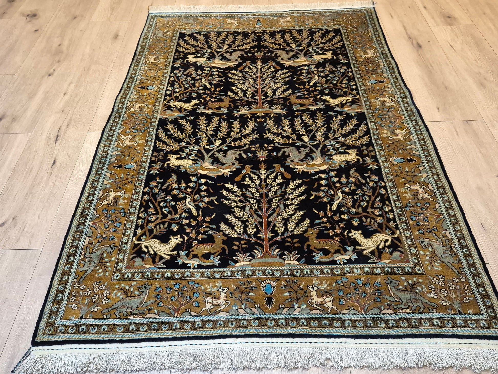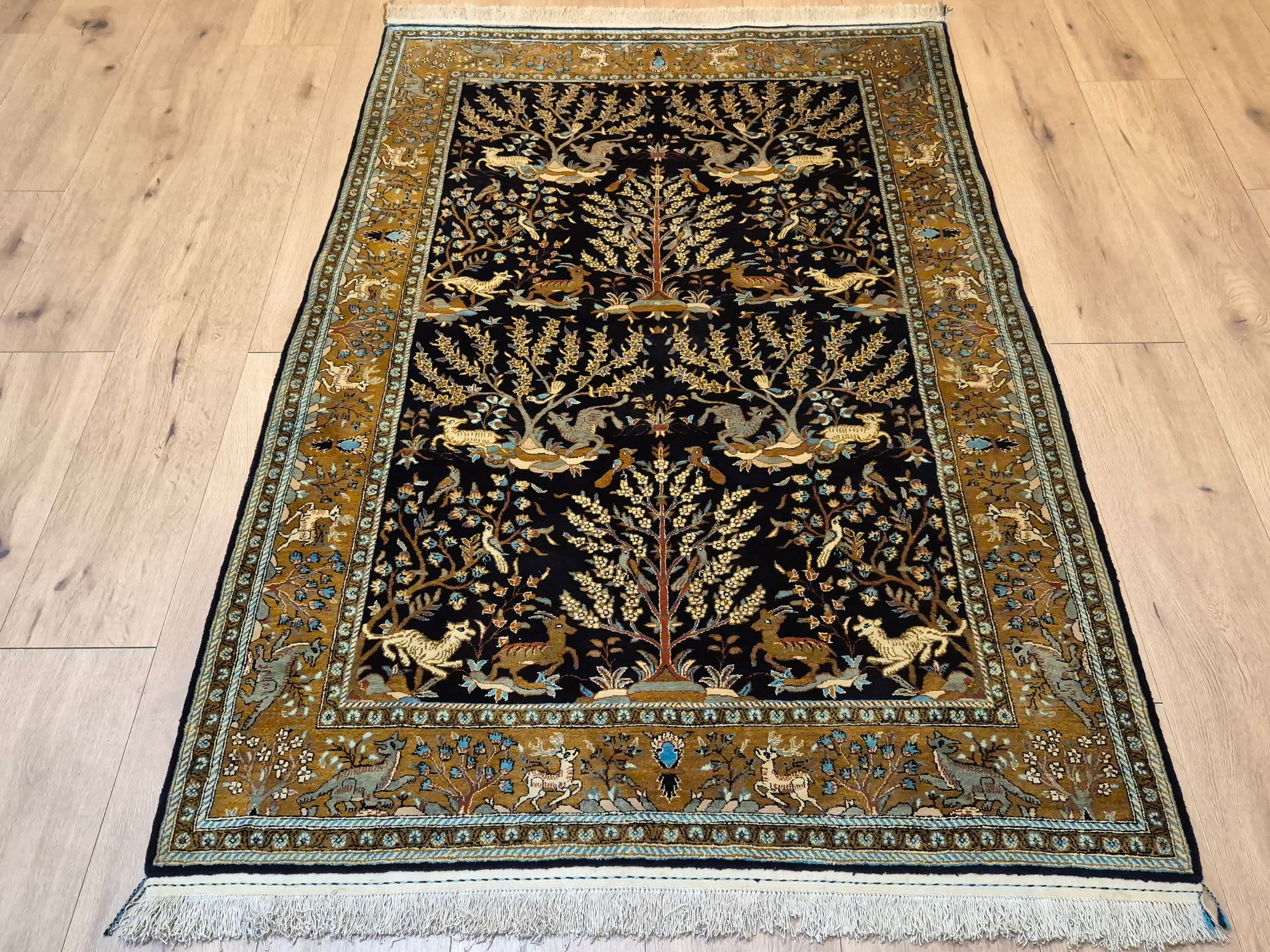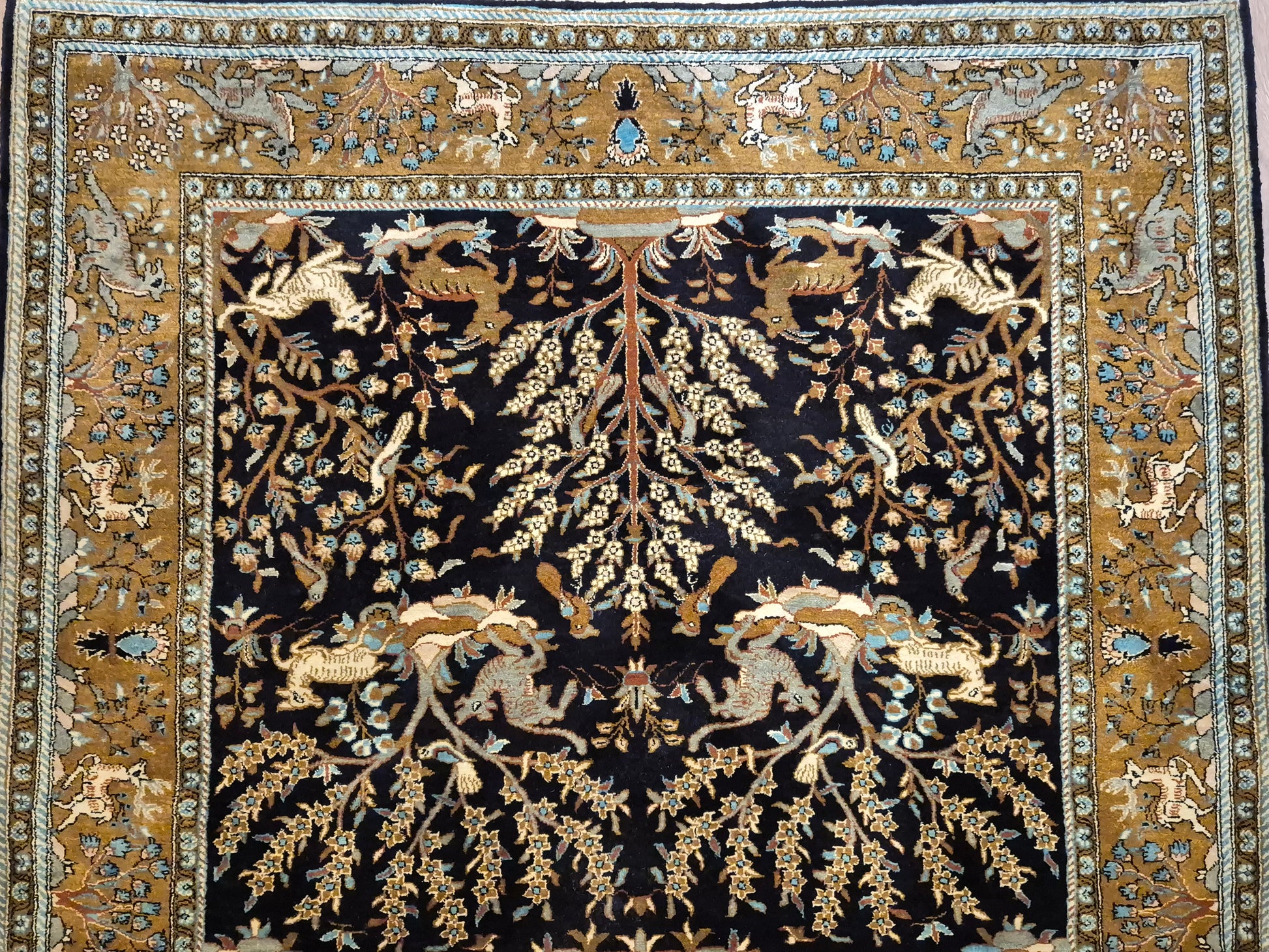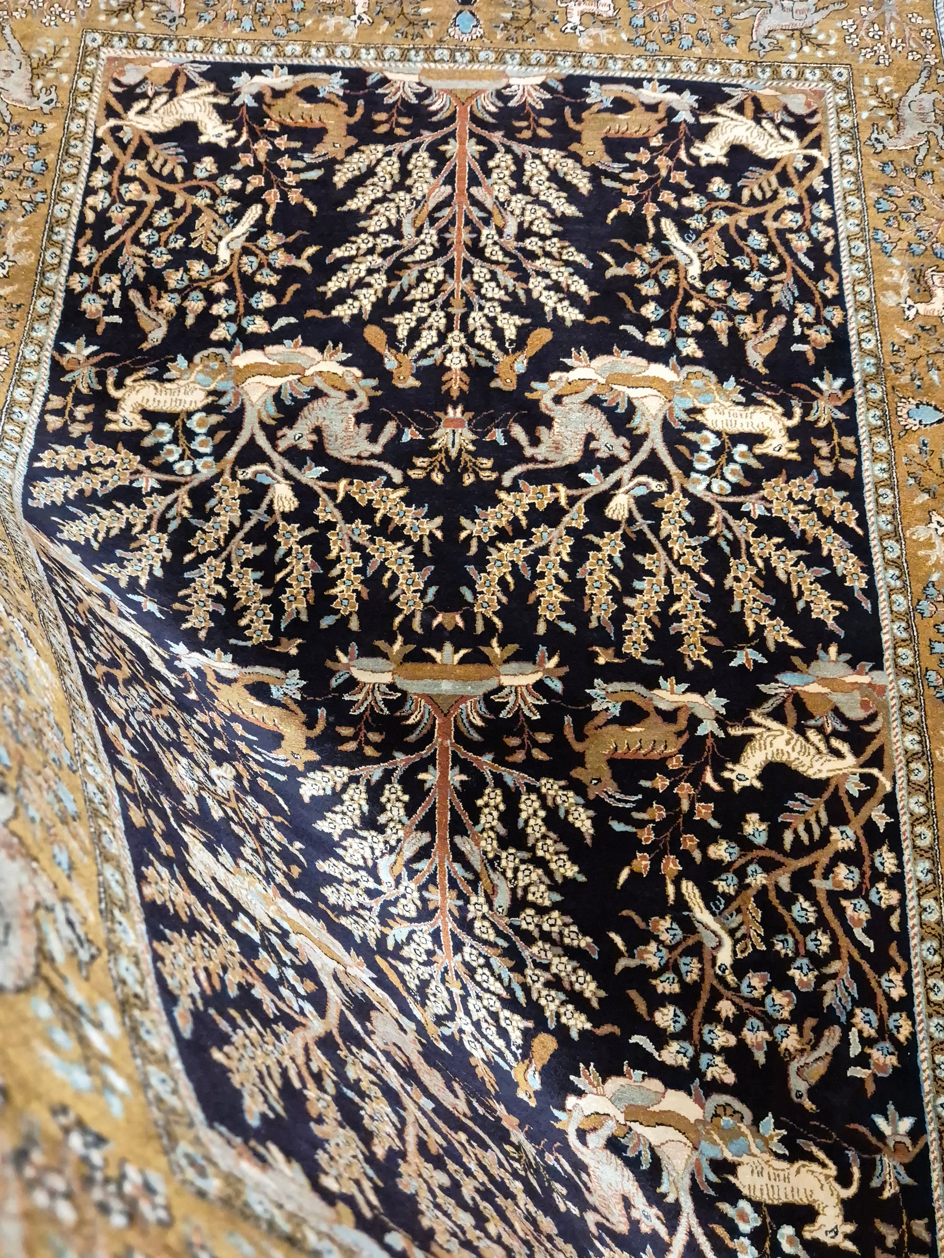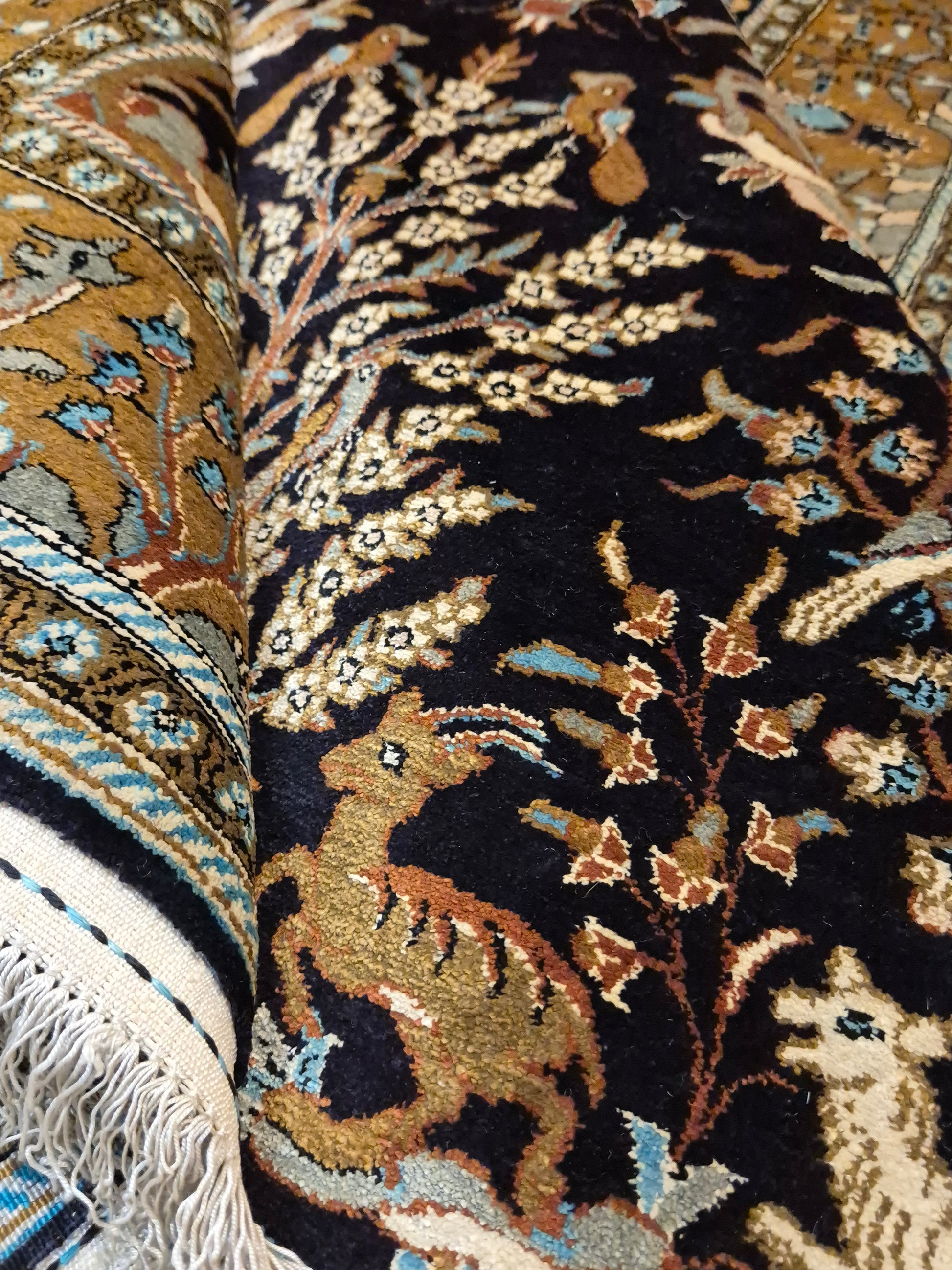 Ghom Seide Teppich Seide auf Seide Jagdmotiv feine Knüpfung