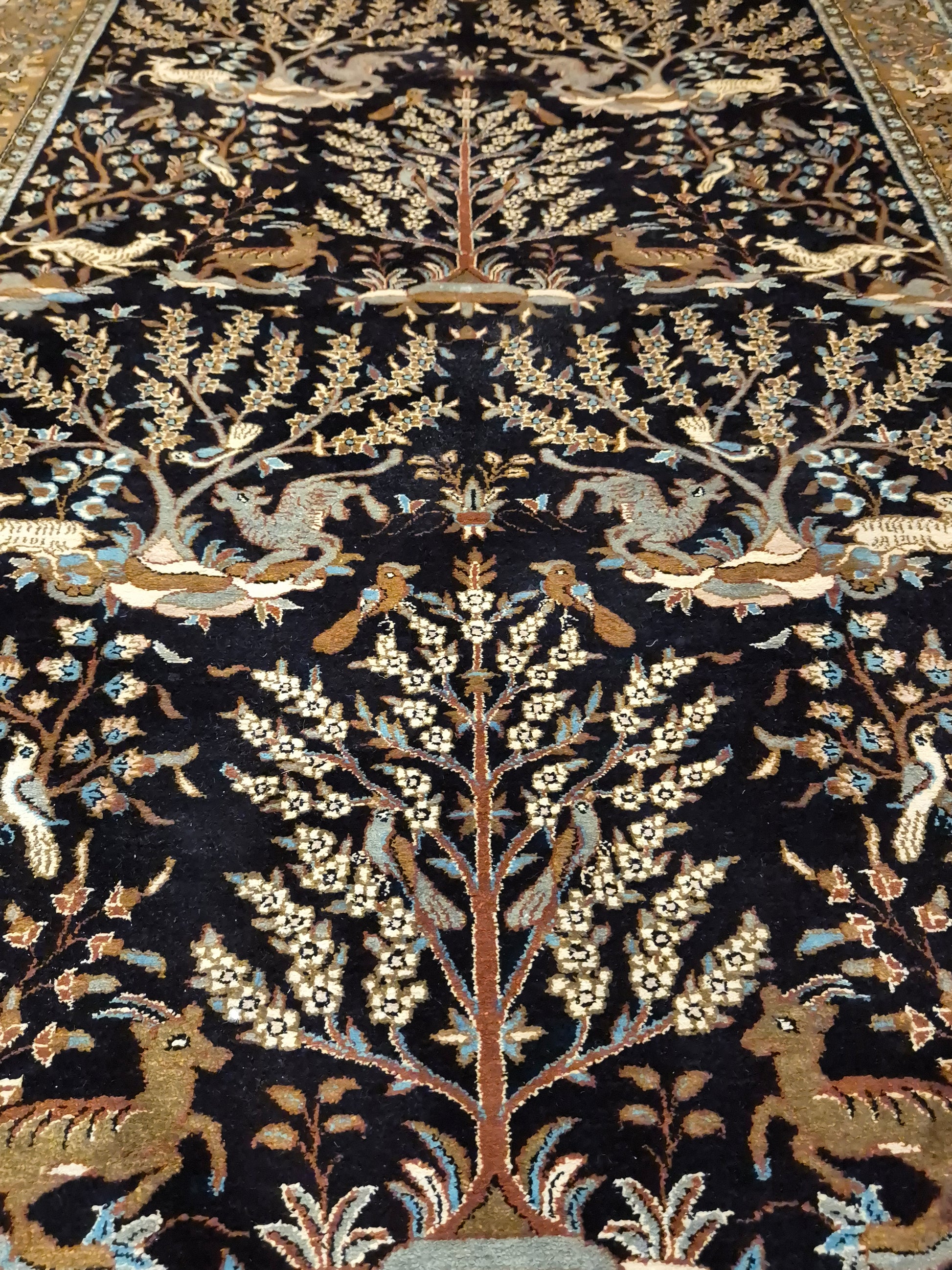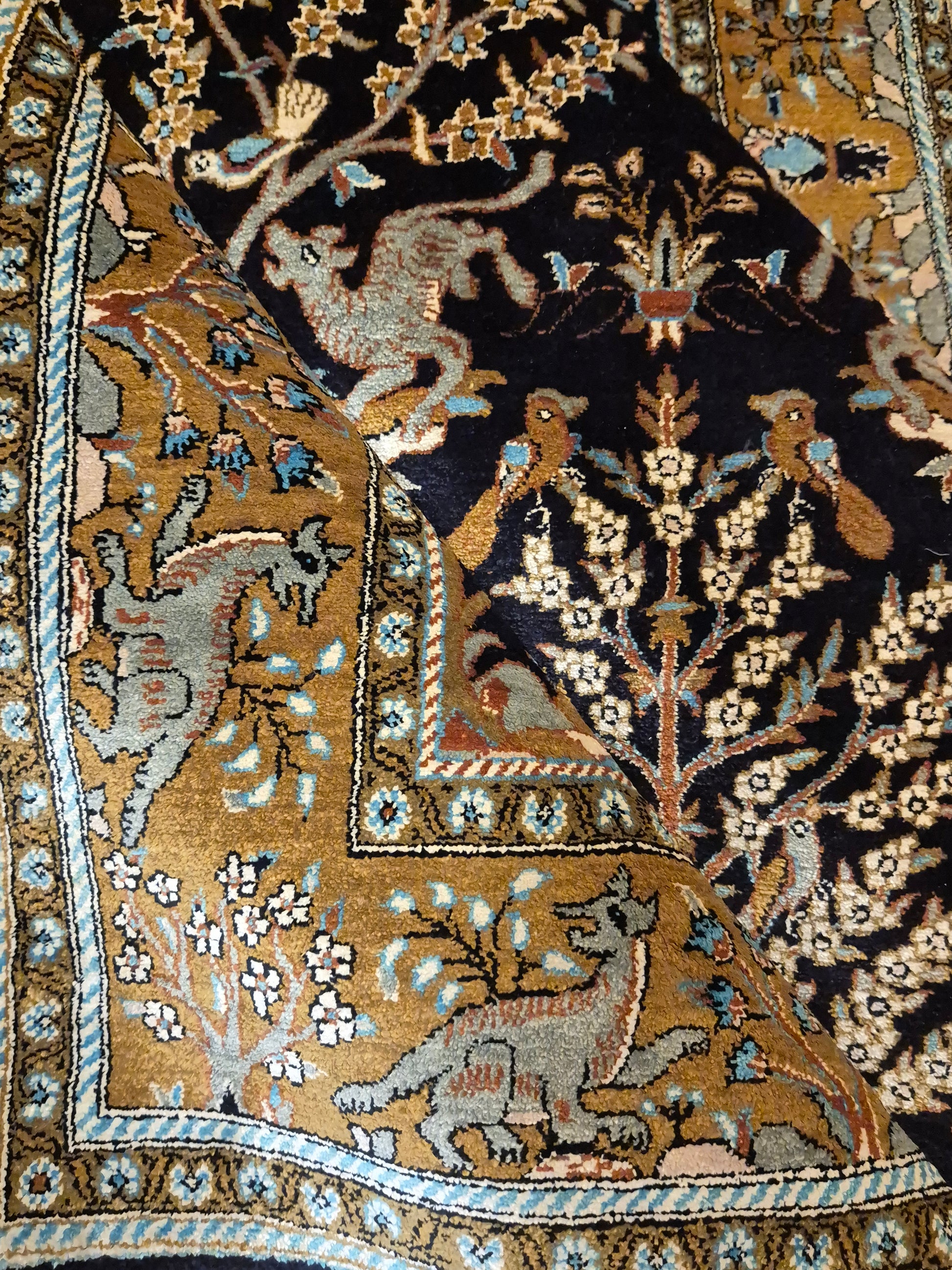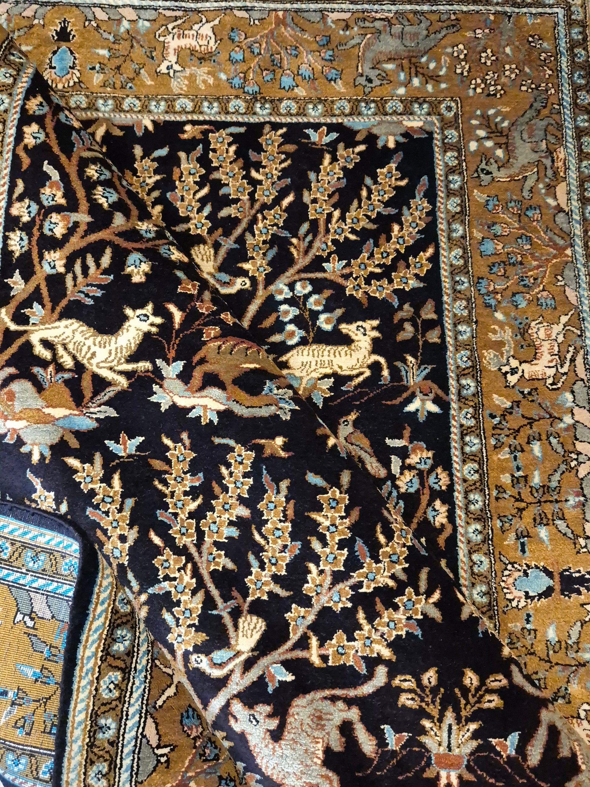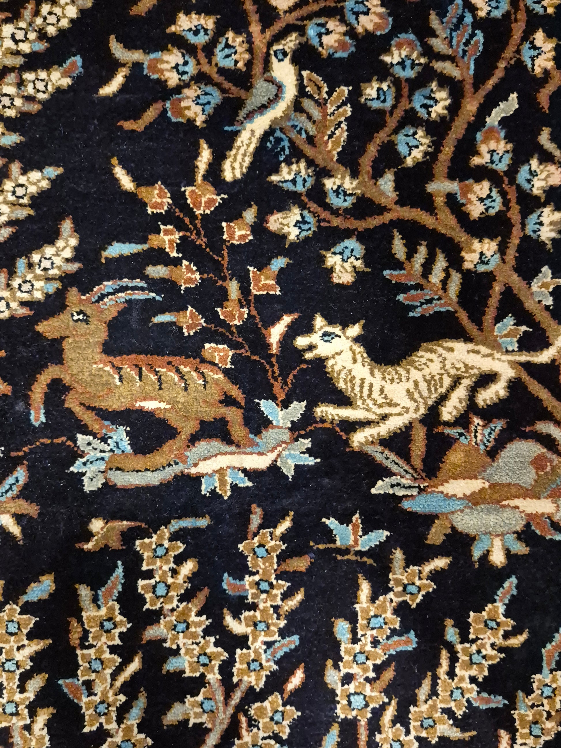 Ghom Seide Teppich Seide auf Seide Jagdmotiv feine Knüpfung