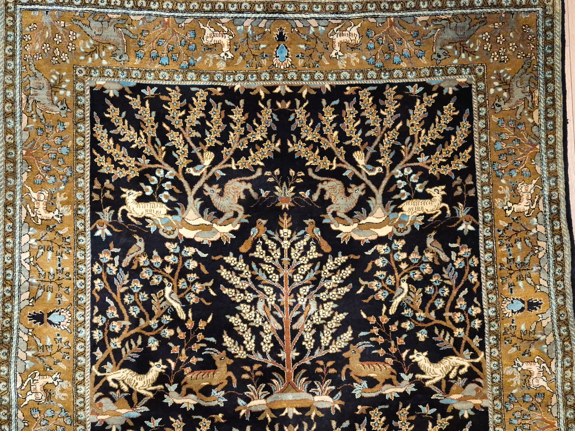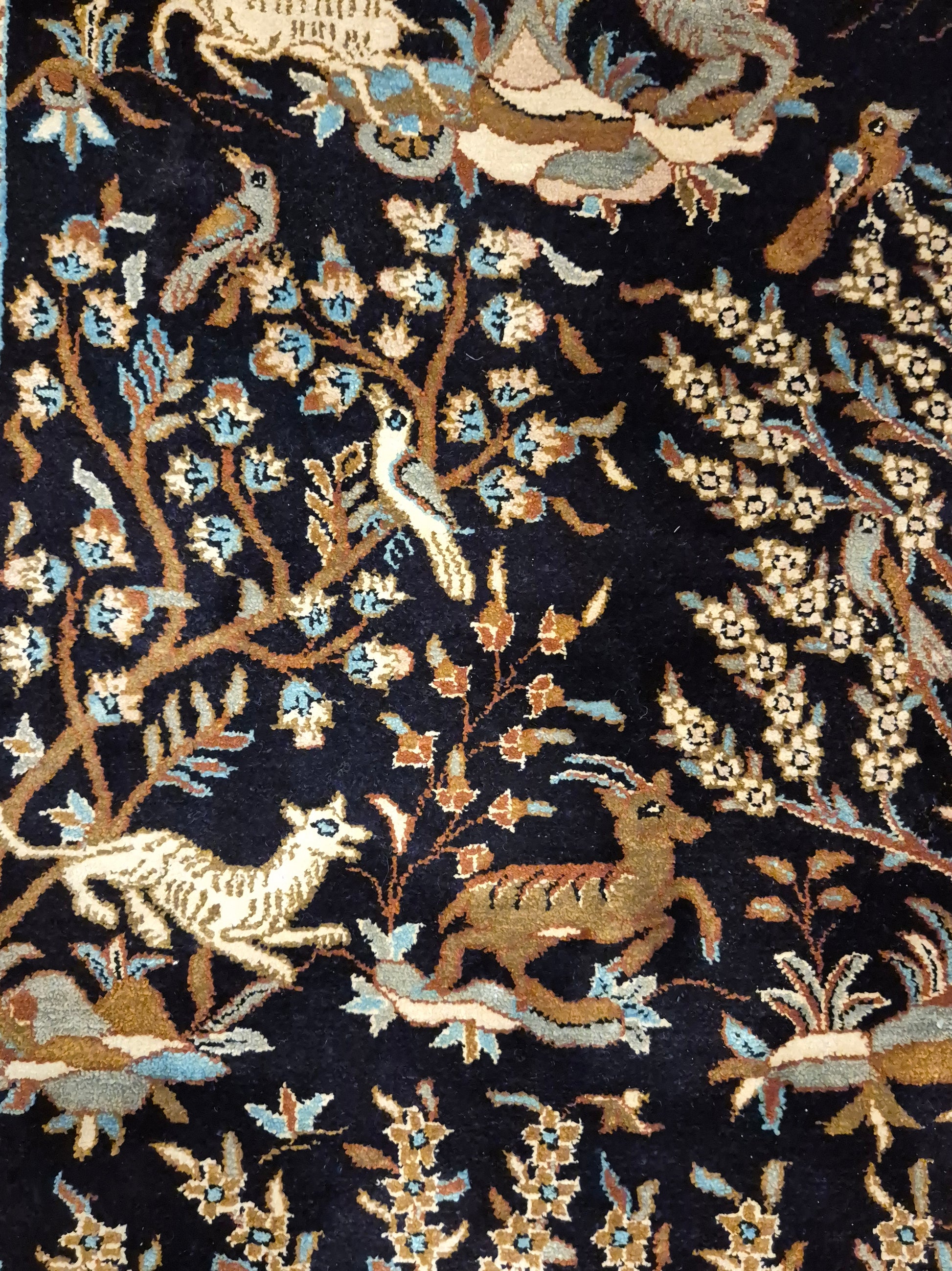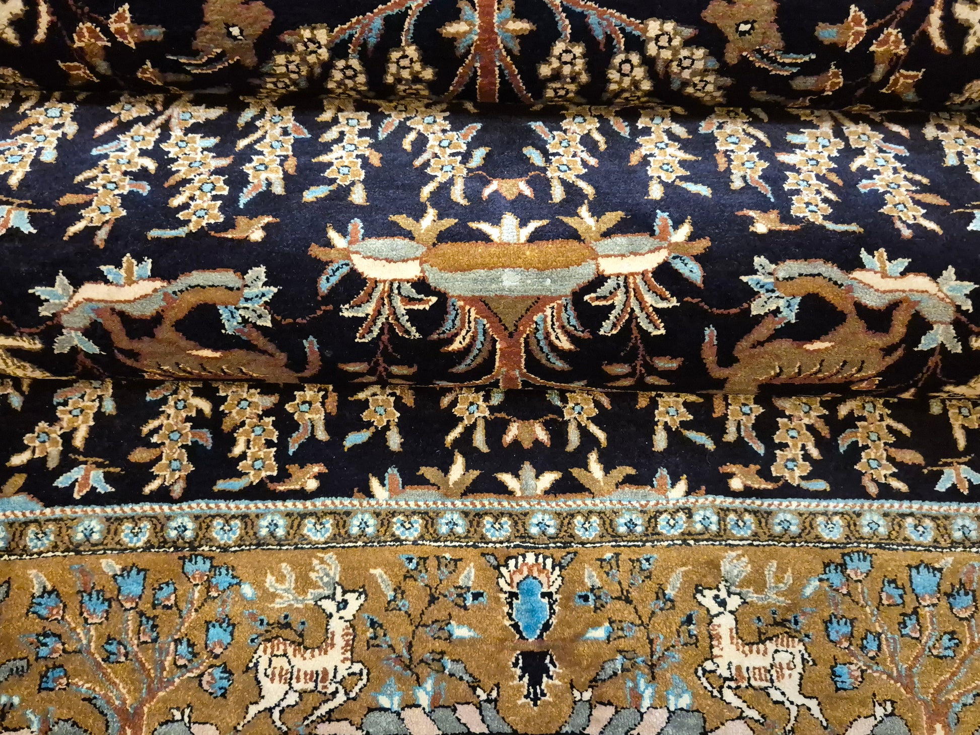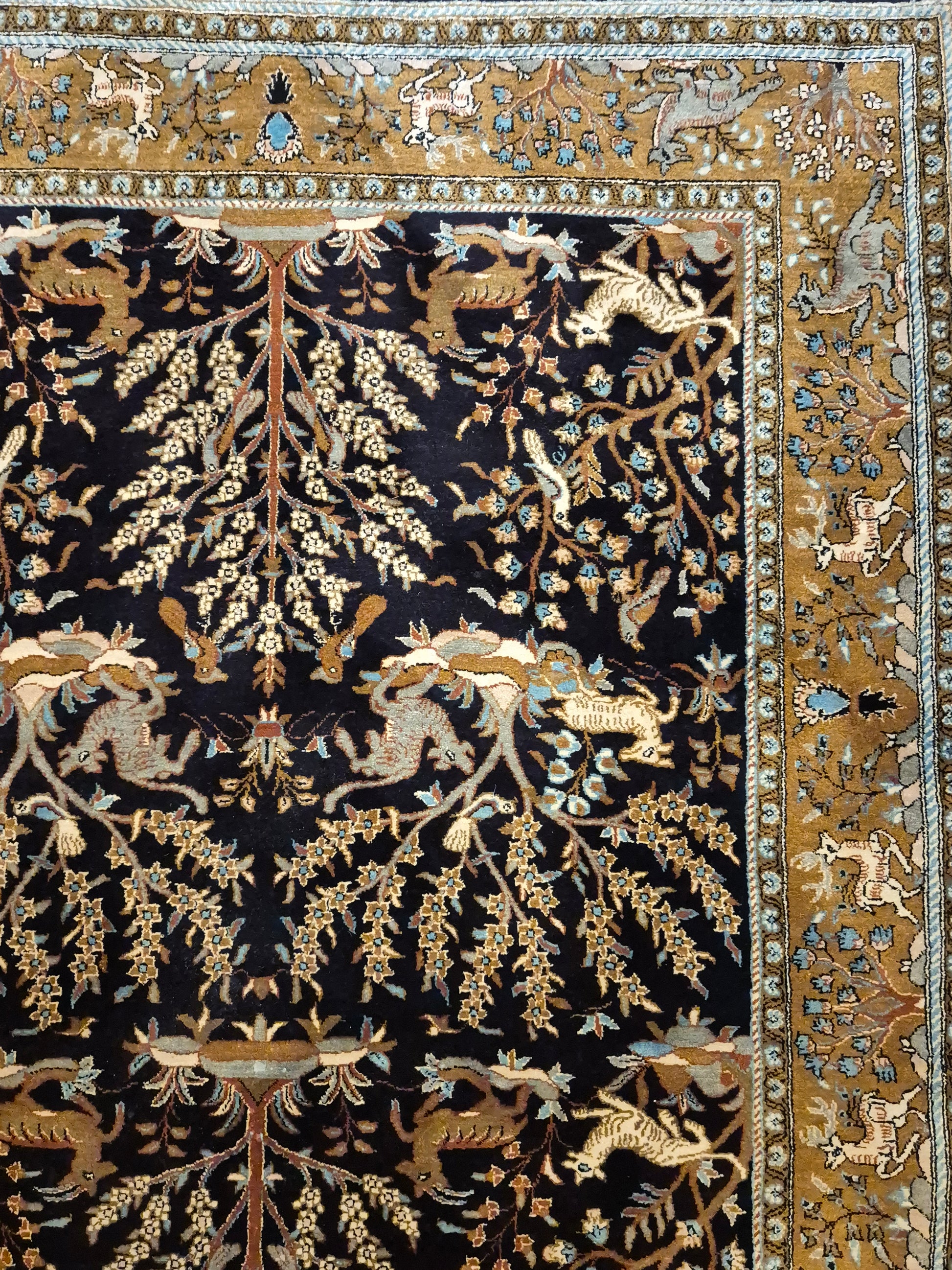 Ghom Seide Teppich Seide auf Seide Jagdmotiv feine Knüpfung