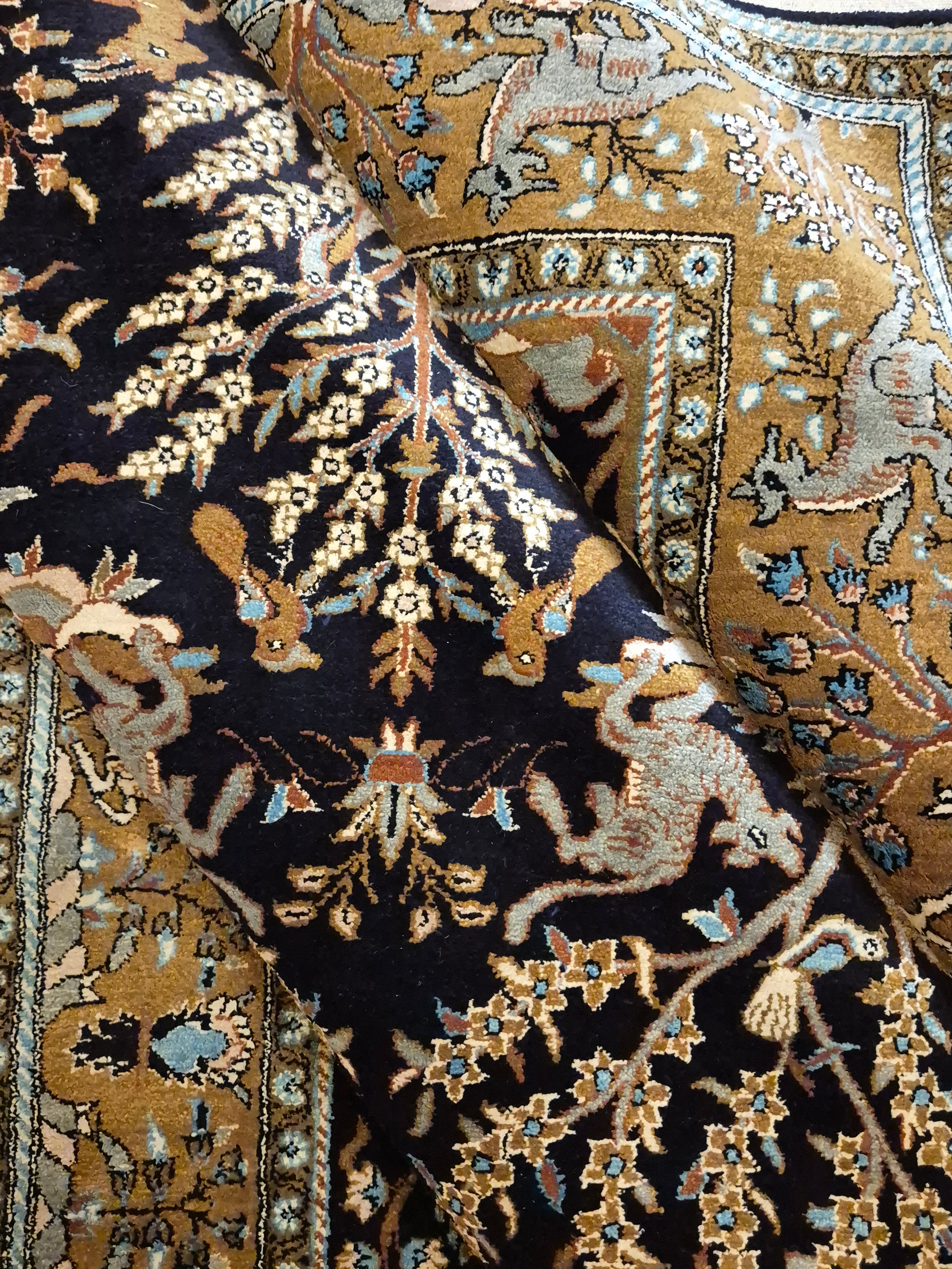 • Verwendung: repräsentativer Bildteppich, luxuriöses Wohnaccessoire oder wertvolles Sammlerstück