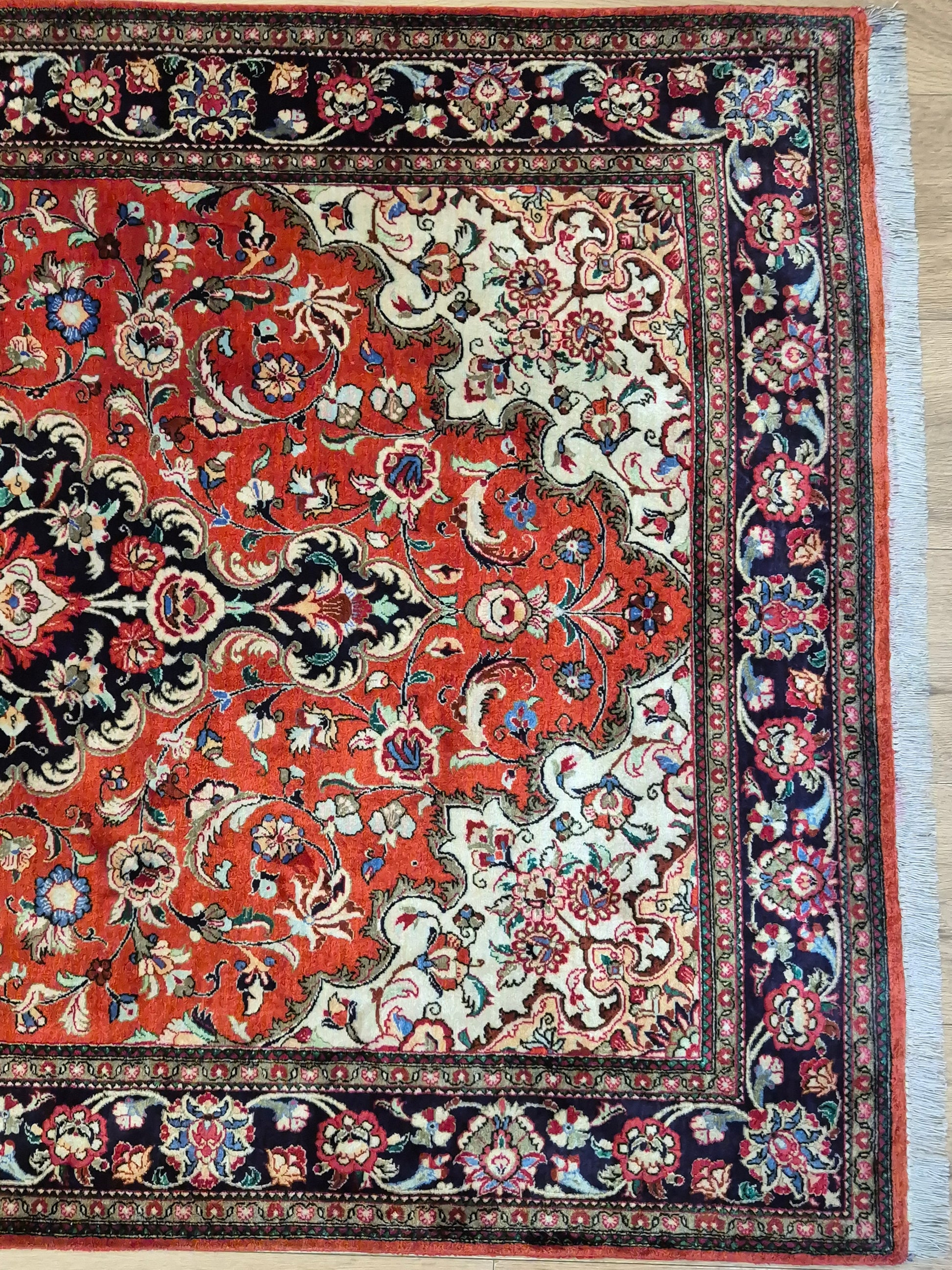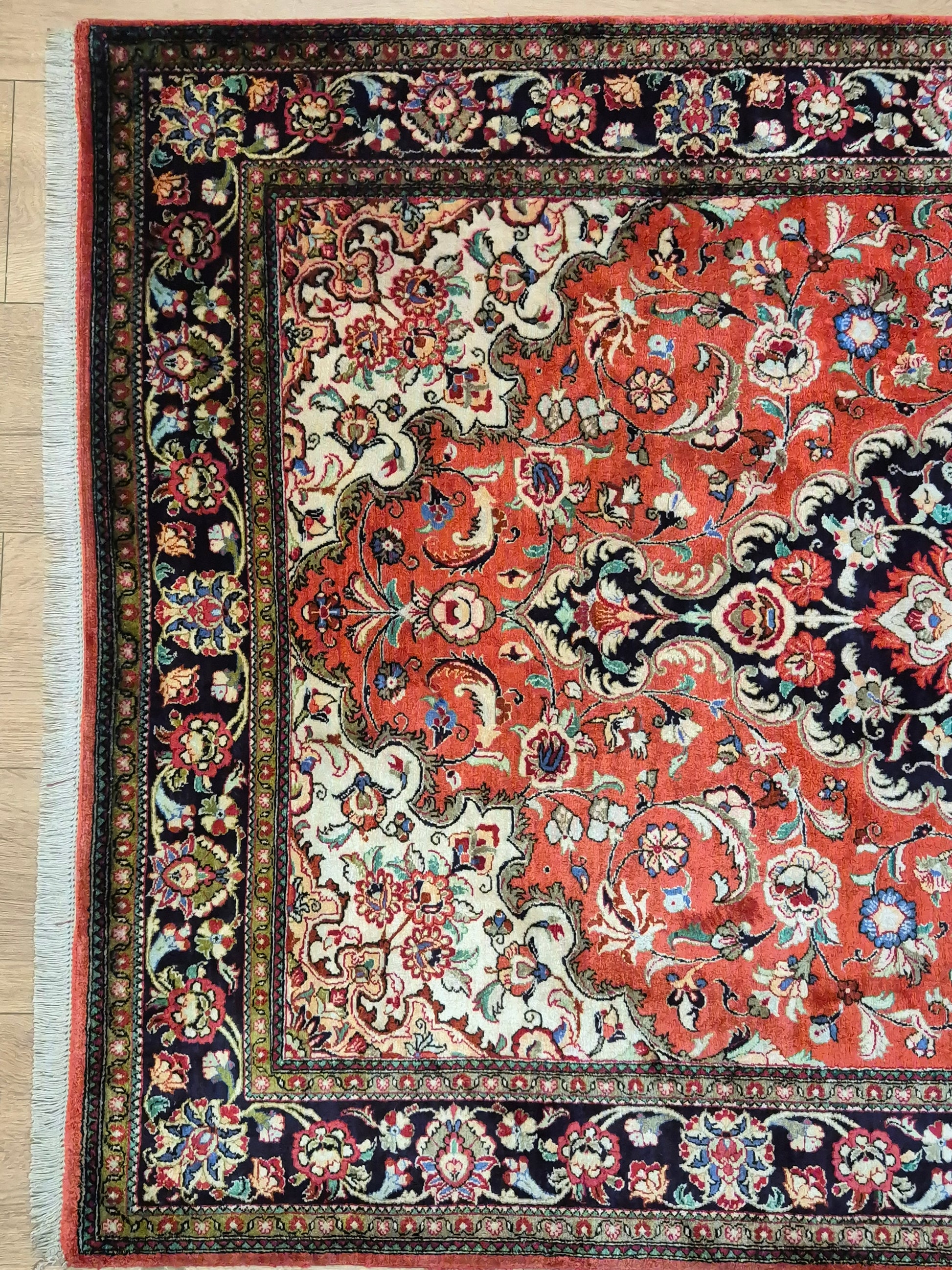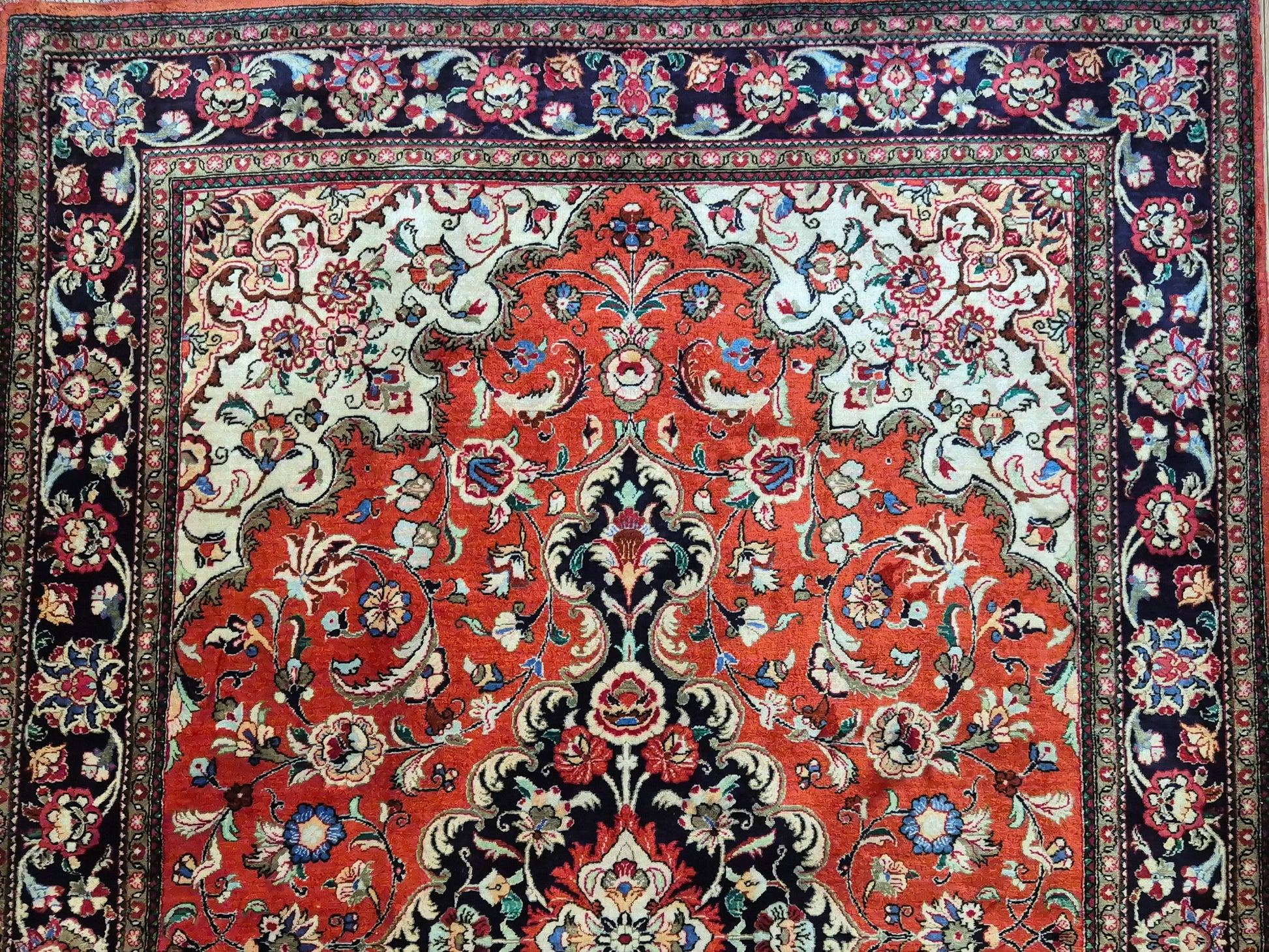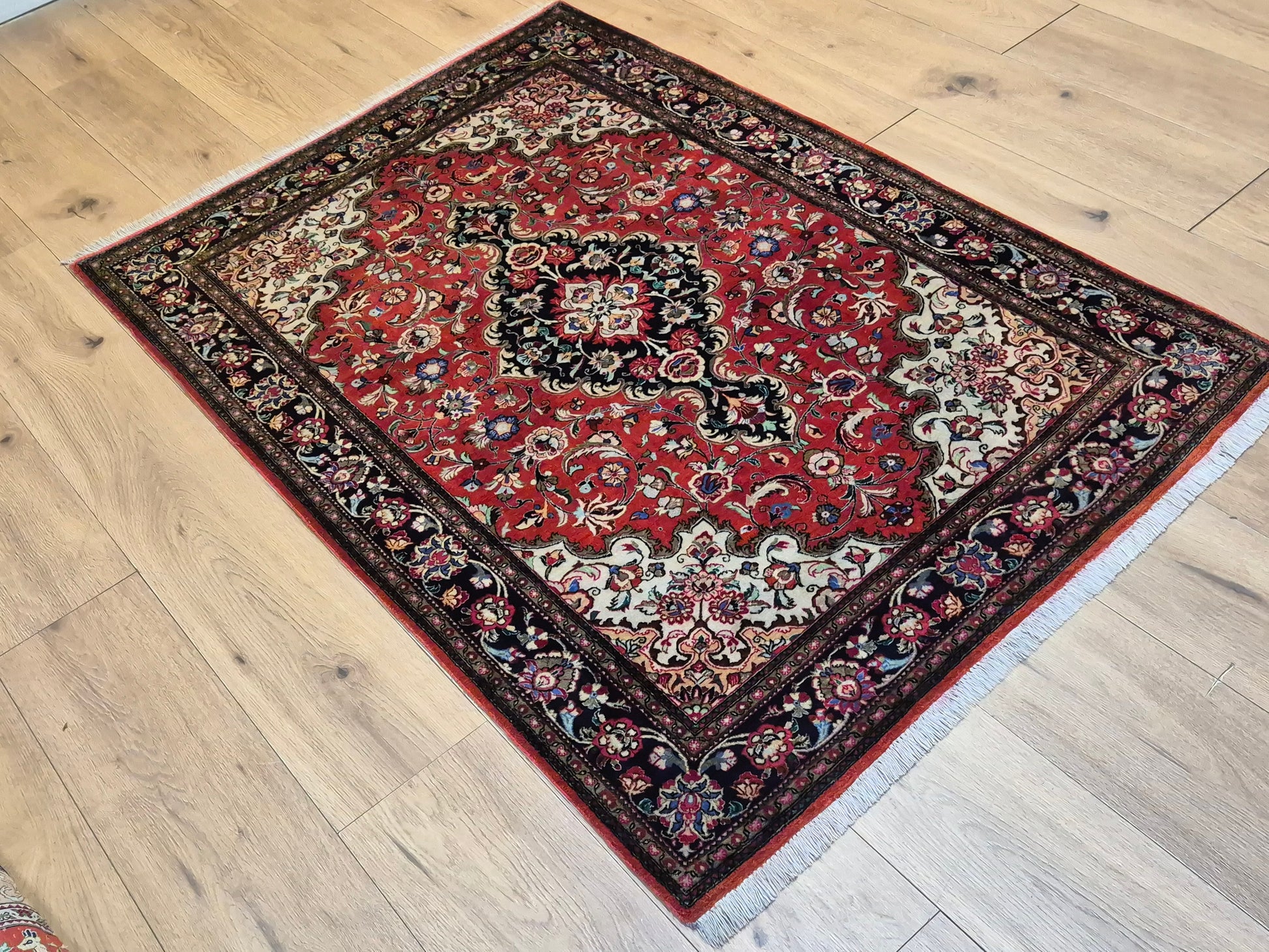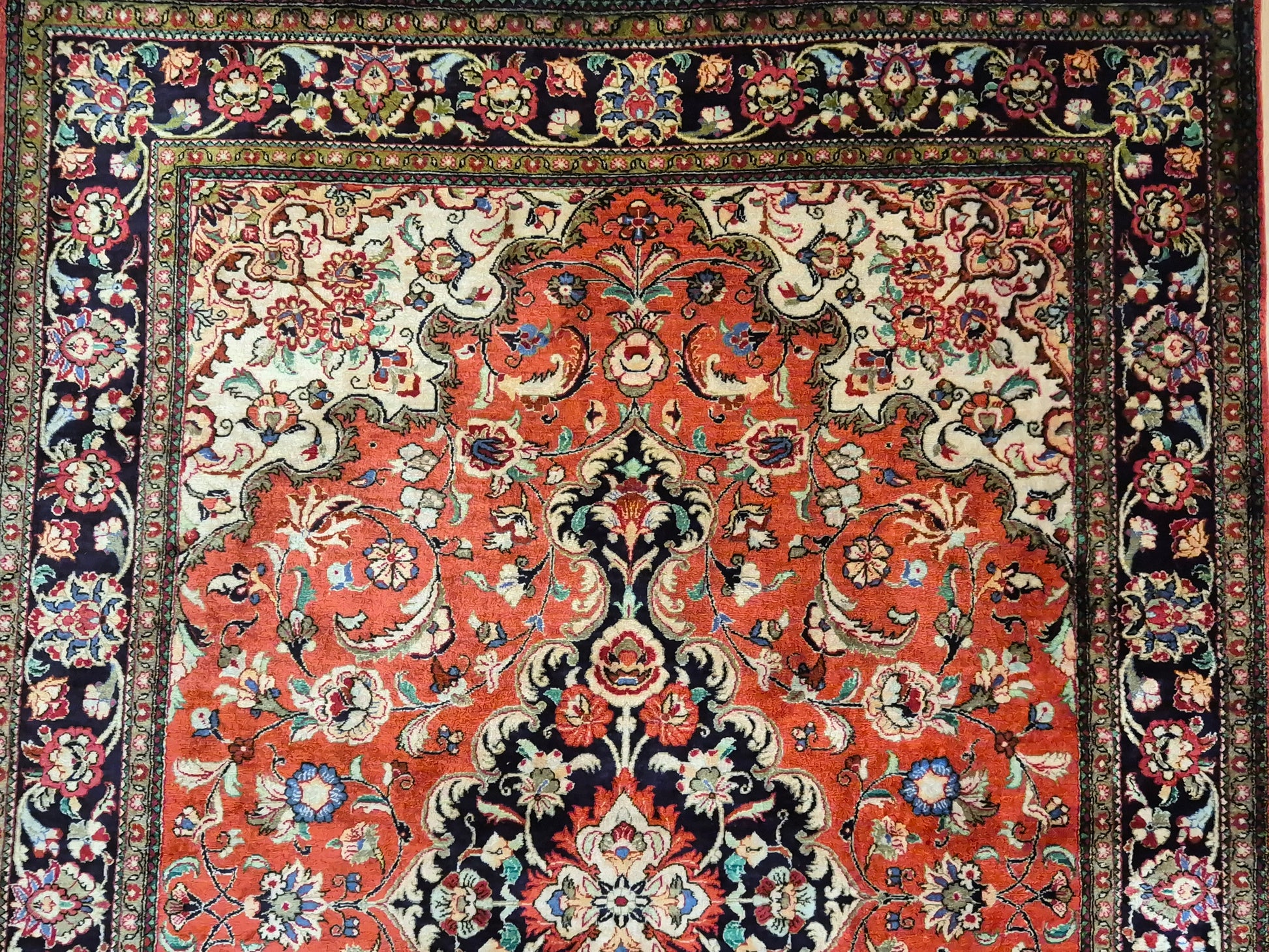 angeboten wird ein edler Ghom Teppich aus reiner Seide auf Seide, handgeknüpft in meisterhafter Ausführung. Das Teppichbild zeigt ein kunstvolles Medaillon im Zentrum, umgeben von einer harmonischen floralen Gestaltung auf leuchtendem Fond. Die filigranen Blütenranken, geschwungenen Arabesken und die kontrastreiche Bordüre unterstreichen die außergewöhnliche Feinheit dieses Stückes.