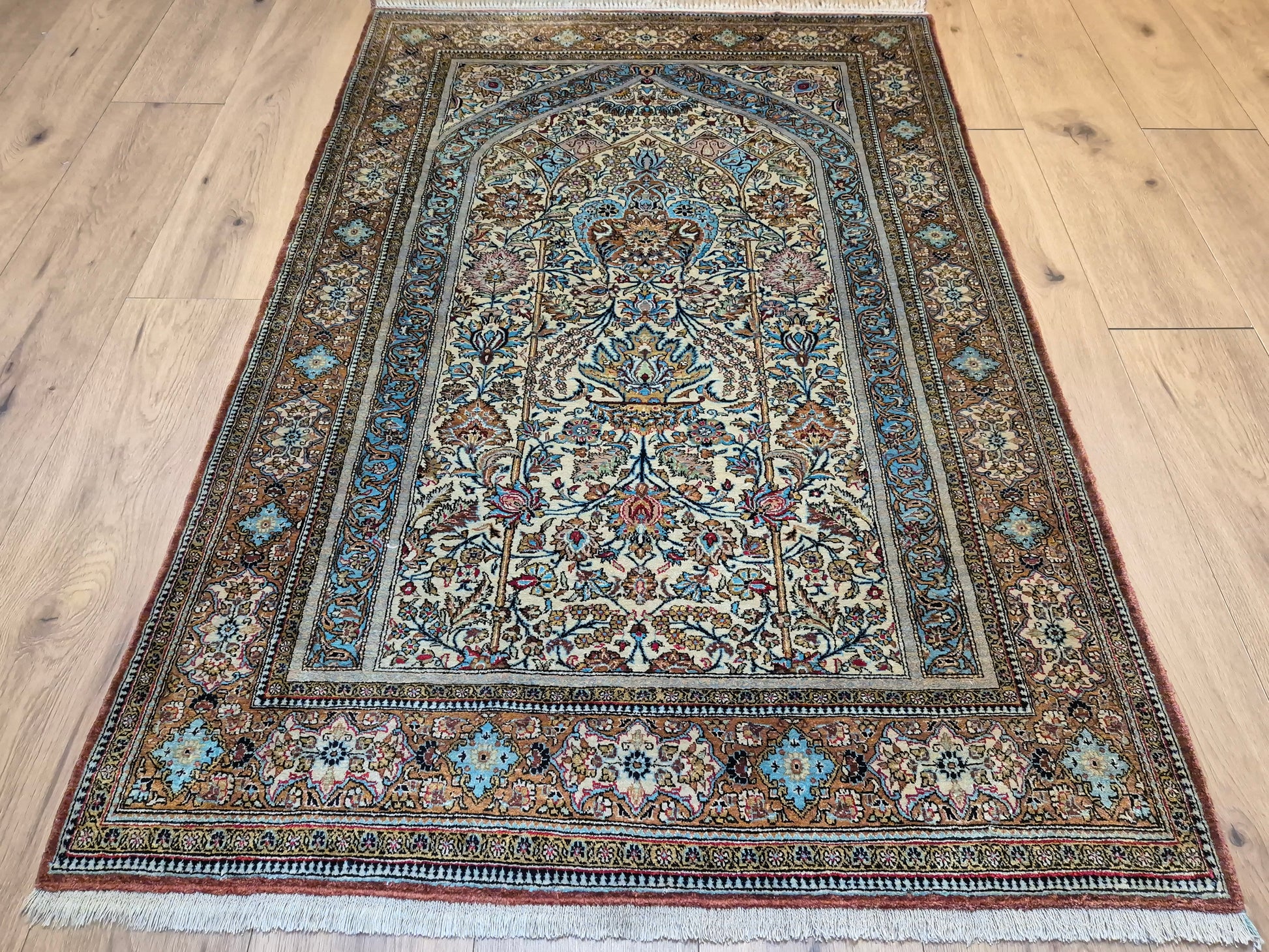 • Verwendung: repräsentativer Gebetsteppich, Sammlerstück oder dekoratives Kunstobjekt für Wand oder Boden