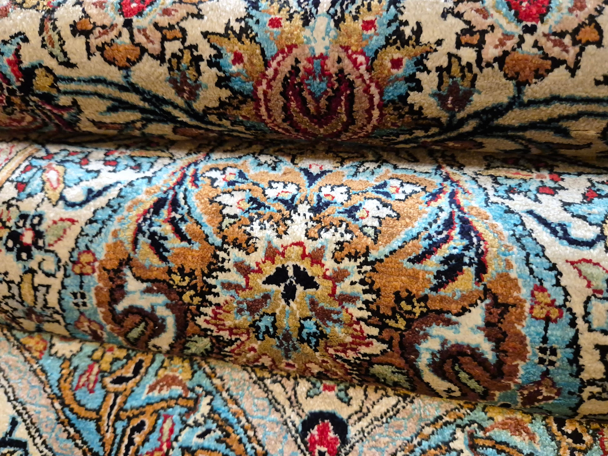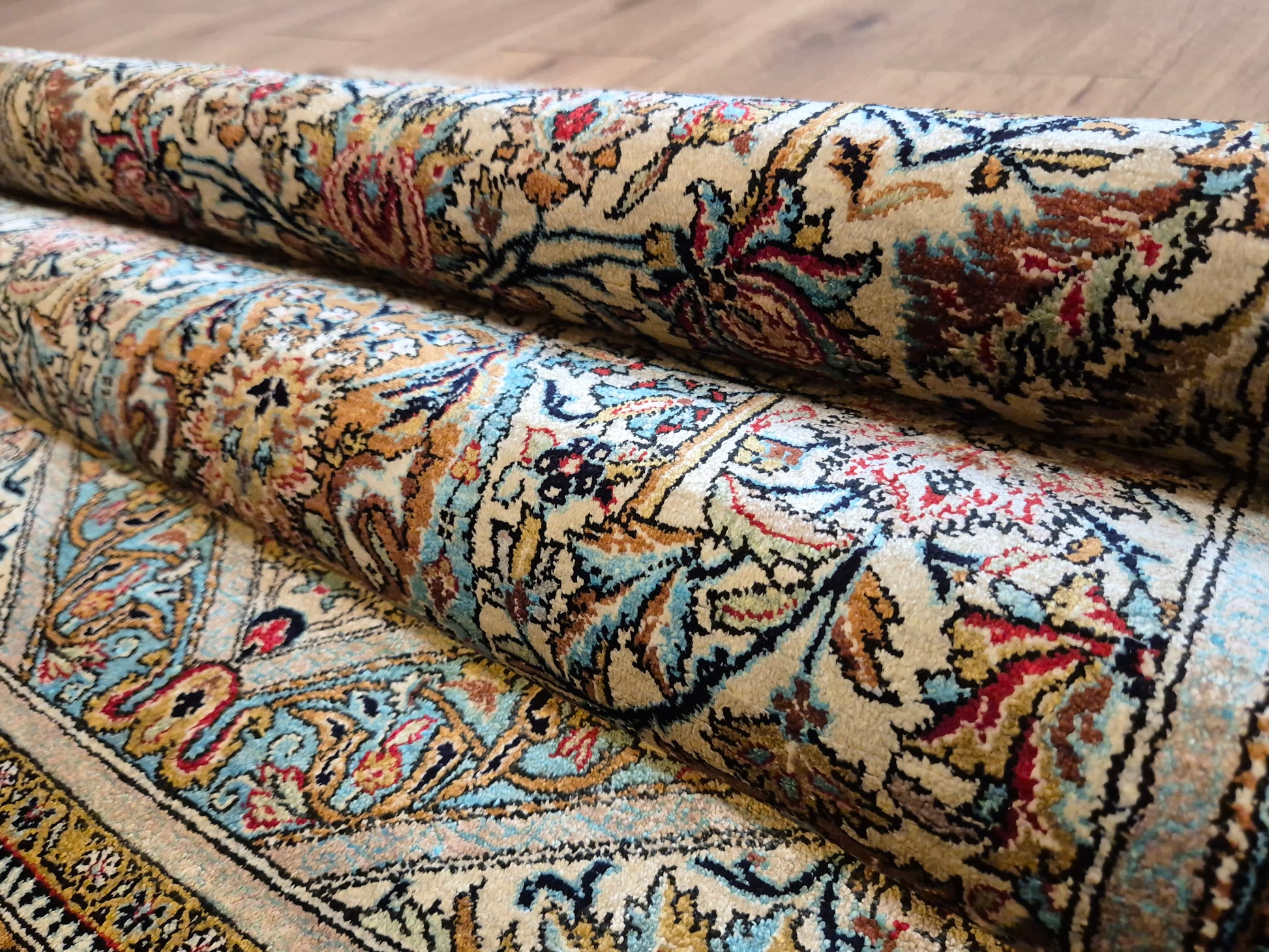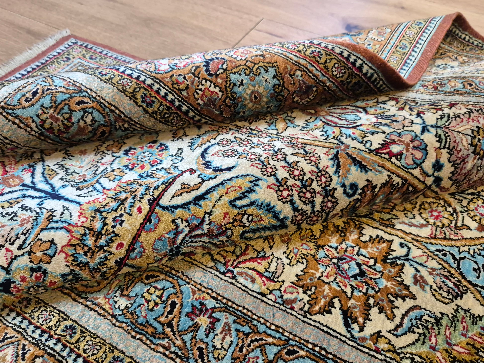 • Verarbeitung: meisterhafte Seidenknüpfung mit seidigem Glanz und faszinierendem Farbspiel je nach Lichteinfall