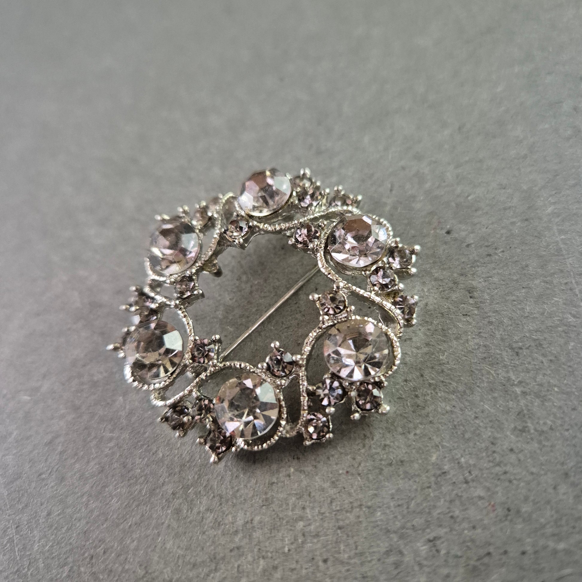Glamouröse Vintage-Brosche mit klaren Strasssteinen – Rundes Design
