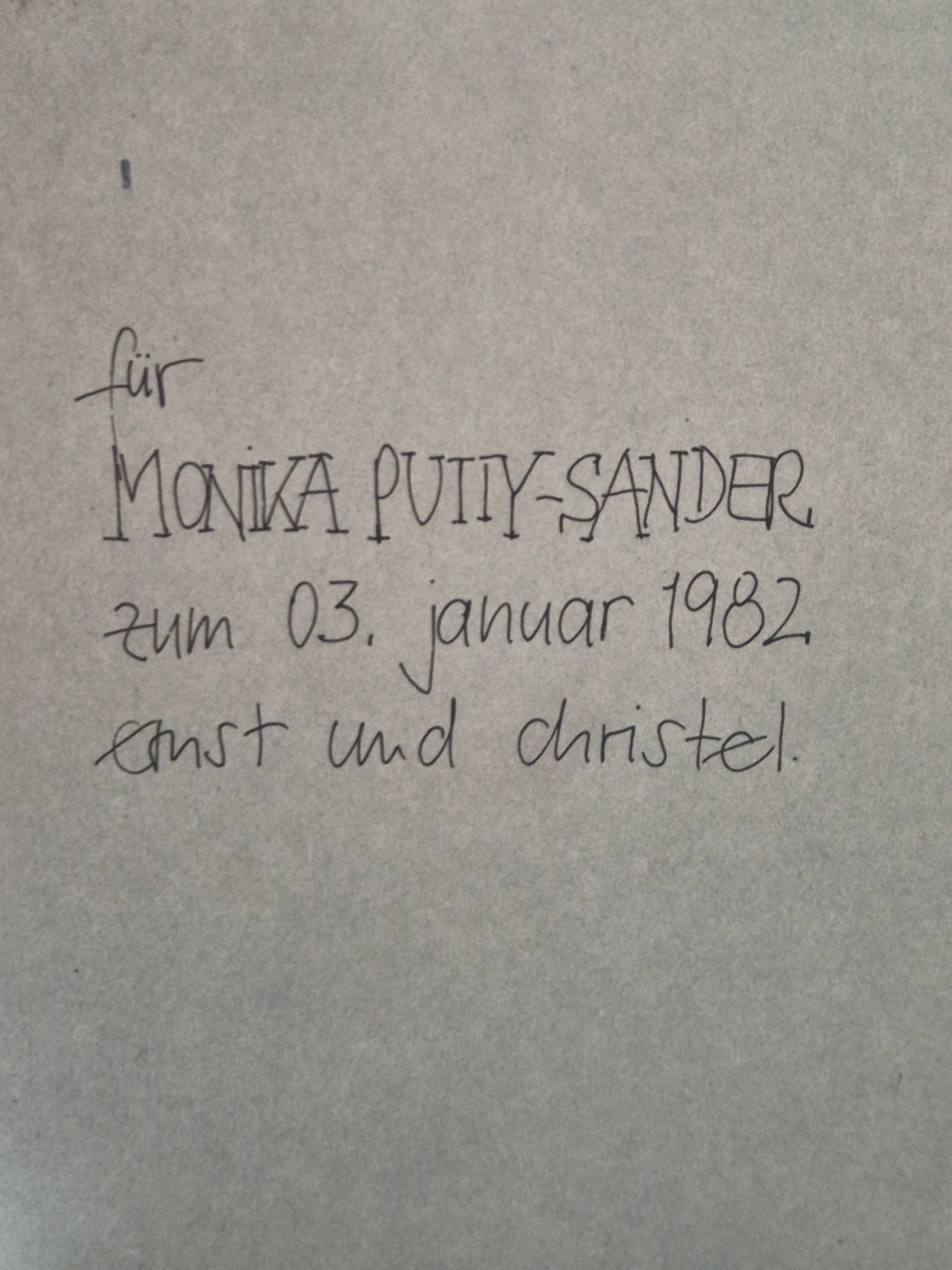 • Signatur: Rückseitig signiert und datiert „für Monika Putiy-Sander zum 03. Januar 1982“