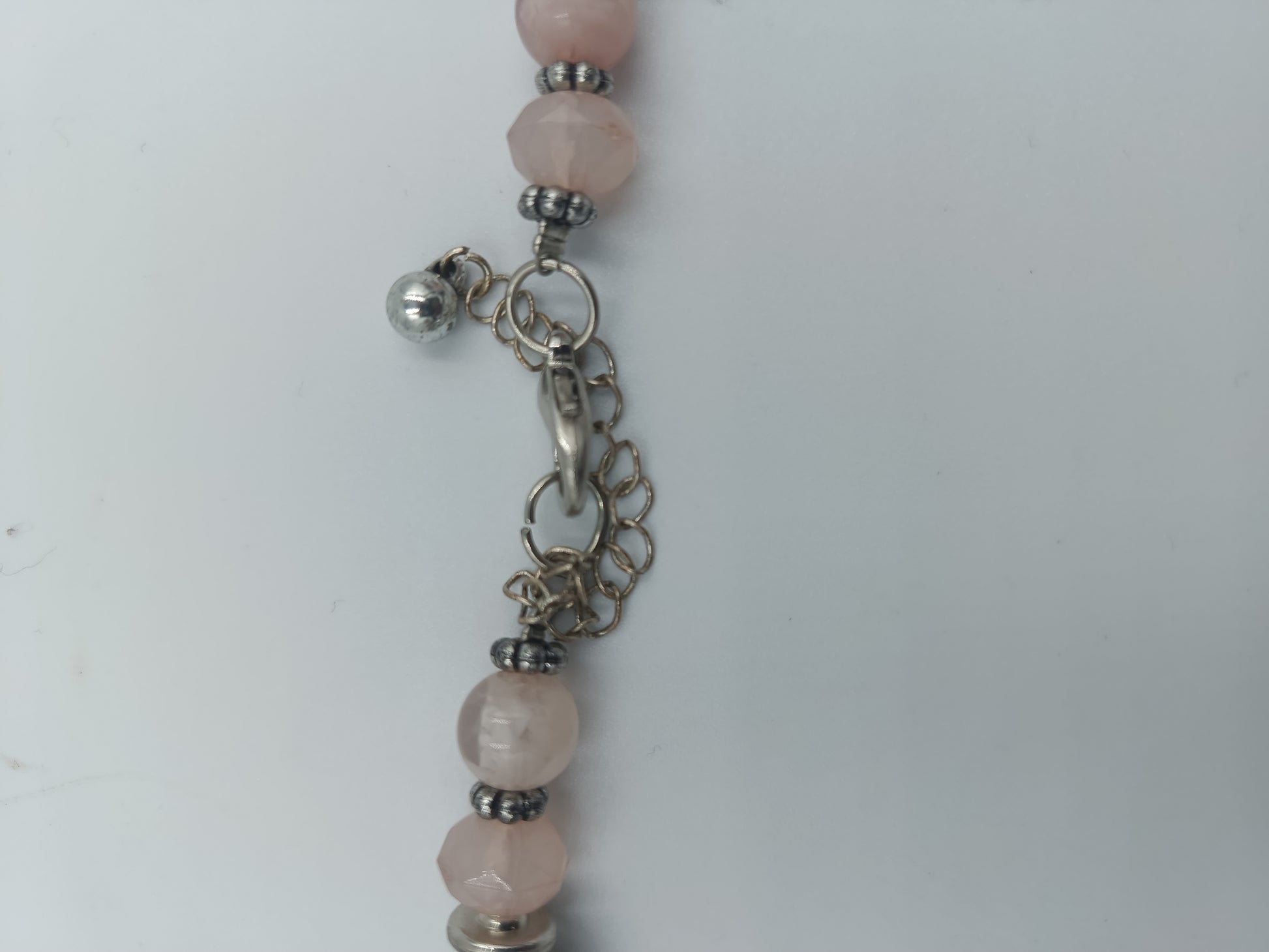 • Material: Rosenquarz, Glasperlen, Metall-Elemente