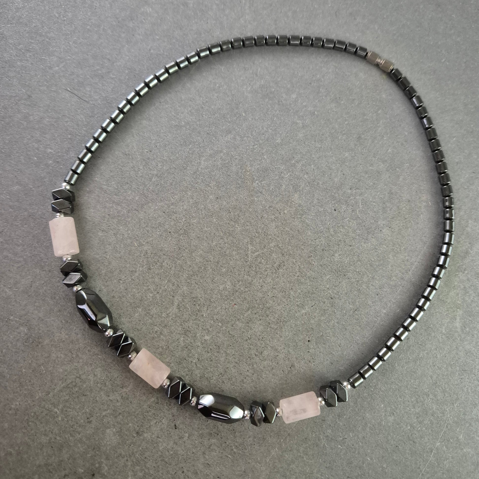 Hämatit Kette mit Rosenquarz – Edelsteinmix in harmonischem Design