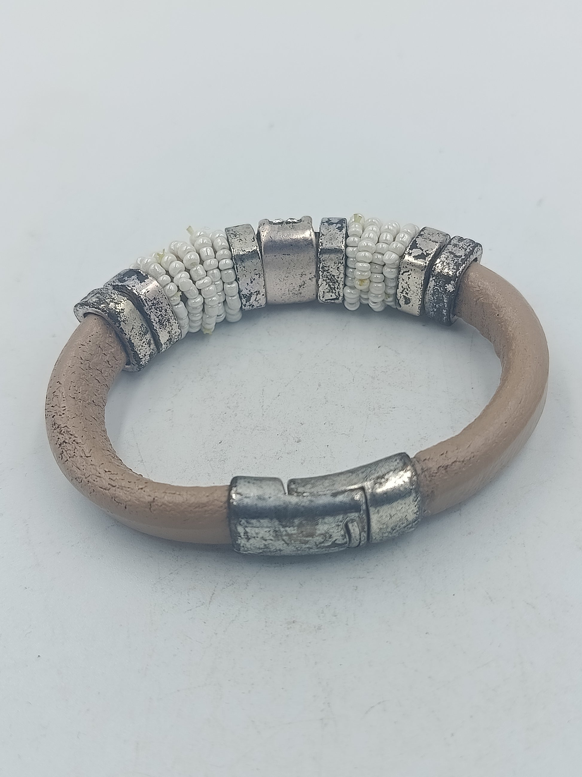 Handgefertigtes Armband aus Leder mit Metall und Glasperlen